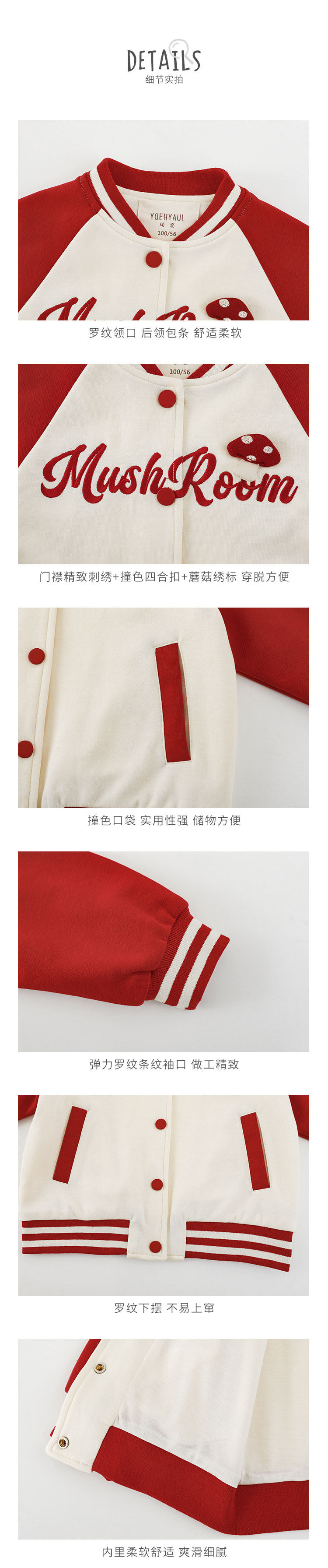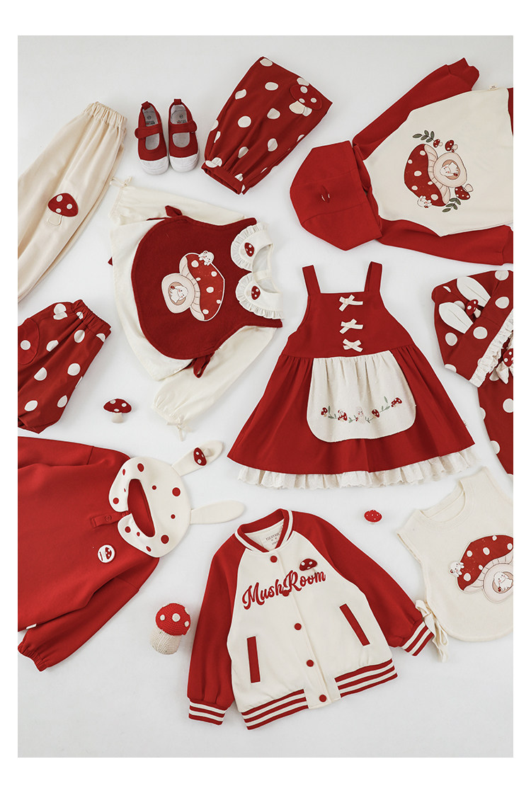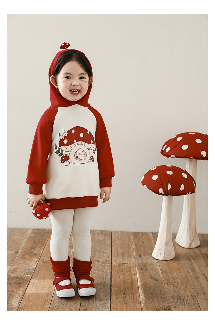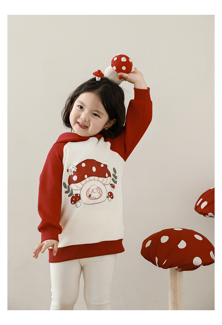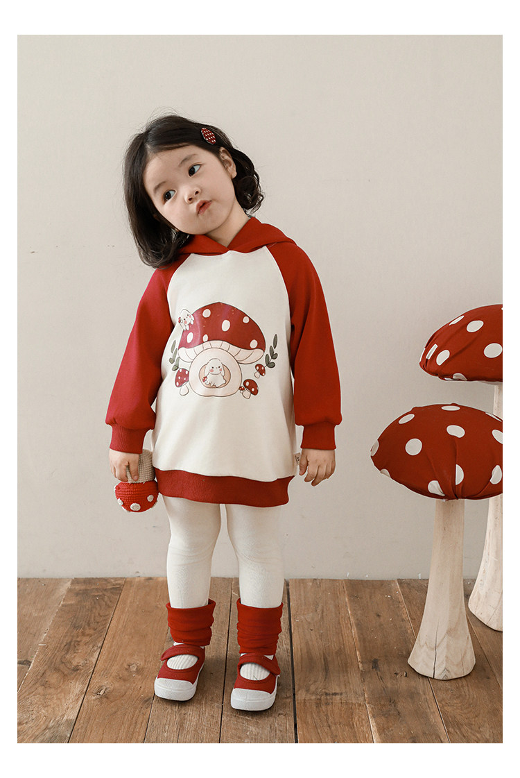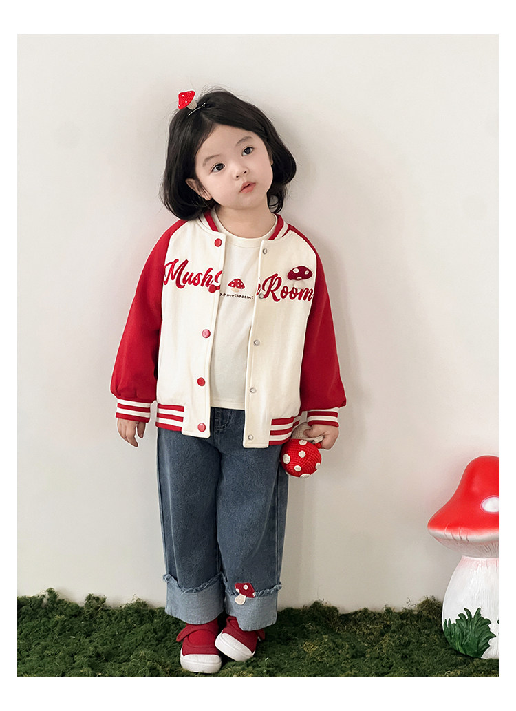 Wurib 소녀의 가을 버섯 시리즈 세트 다이나믹 캠퍼스 클립 리브 재킷 캐주얼 후드 스웨트 셔츠스토어 가기