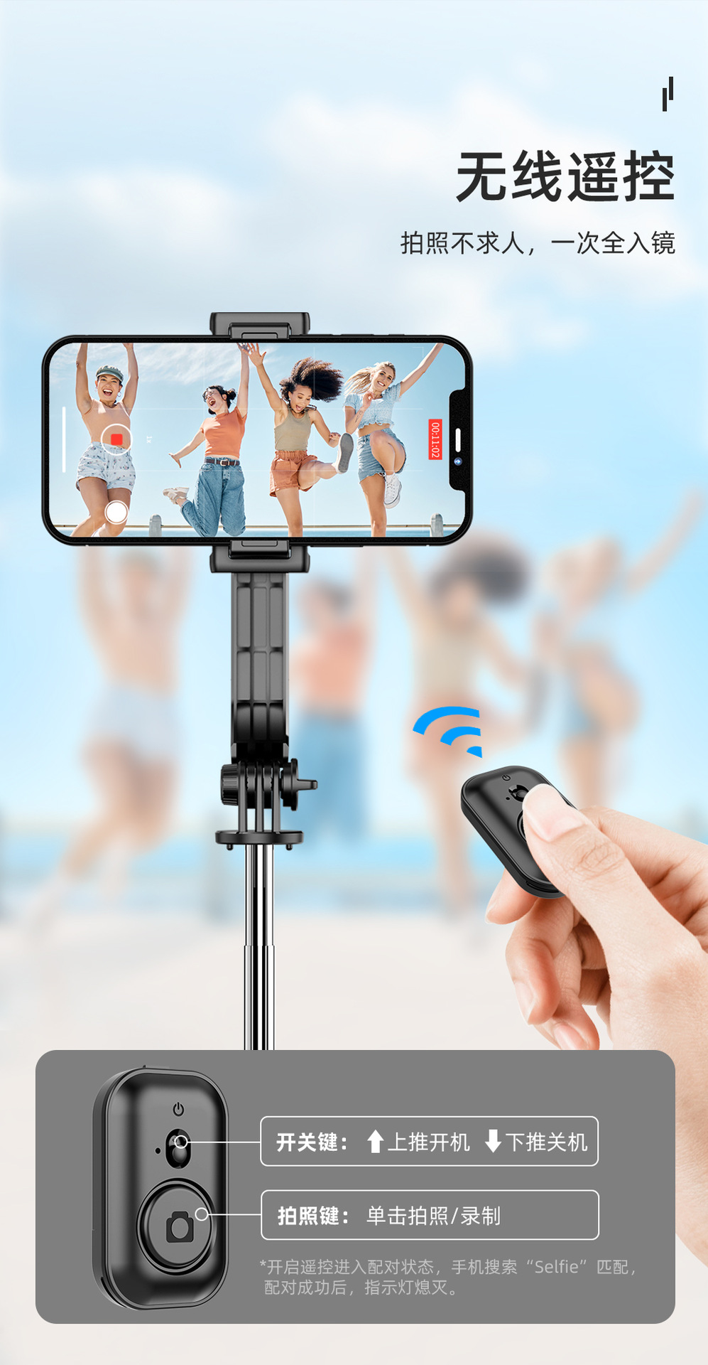 라이브 비디오 카메라 데스크톱 휴대 전화 스탠드 삼각대 분리 가능한 휴대 전화 클립 휴대용 텔레스코픽 블루투스 셀카 스틱