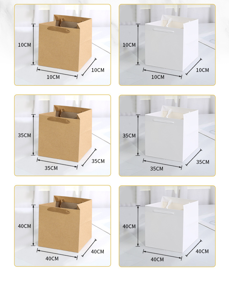 스퀘어 종이 가방 재고 꽃 선물 가방 화분 케이크 가방 웨딩 캔디 토트 베이킹 꽃다발 포장 가방