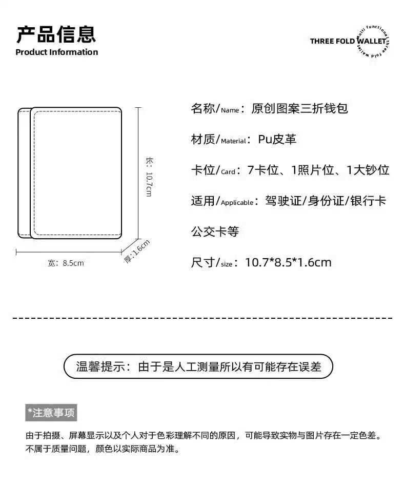 귀여운 석탄기 학생 카드 가방 올인원 가방 지갑 멀티 카드 비트 3 배 짧은 접는 동전 지갑 어린이스토어 가기
