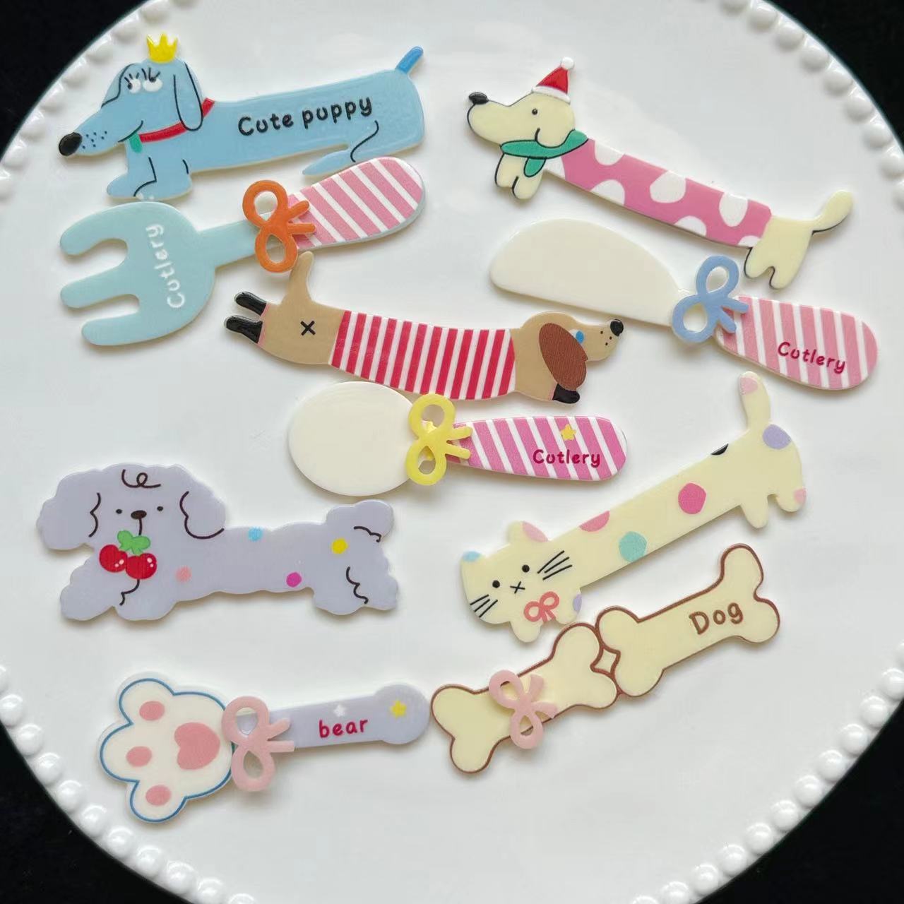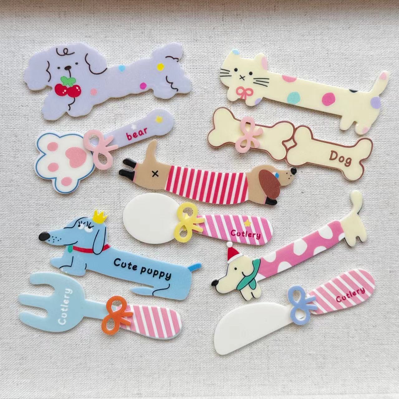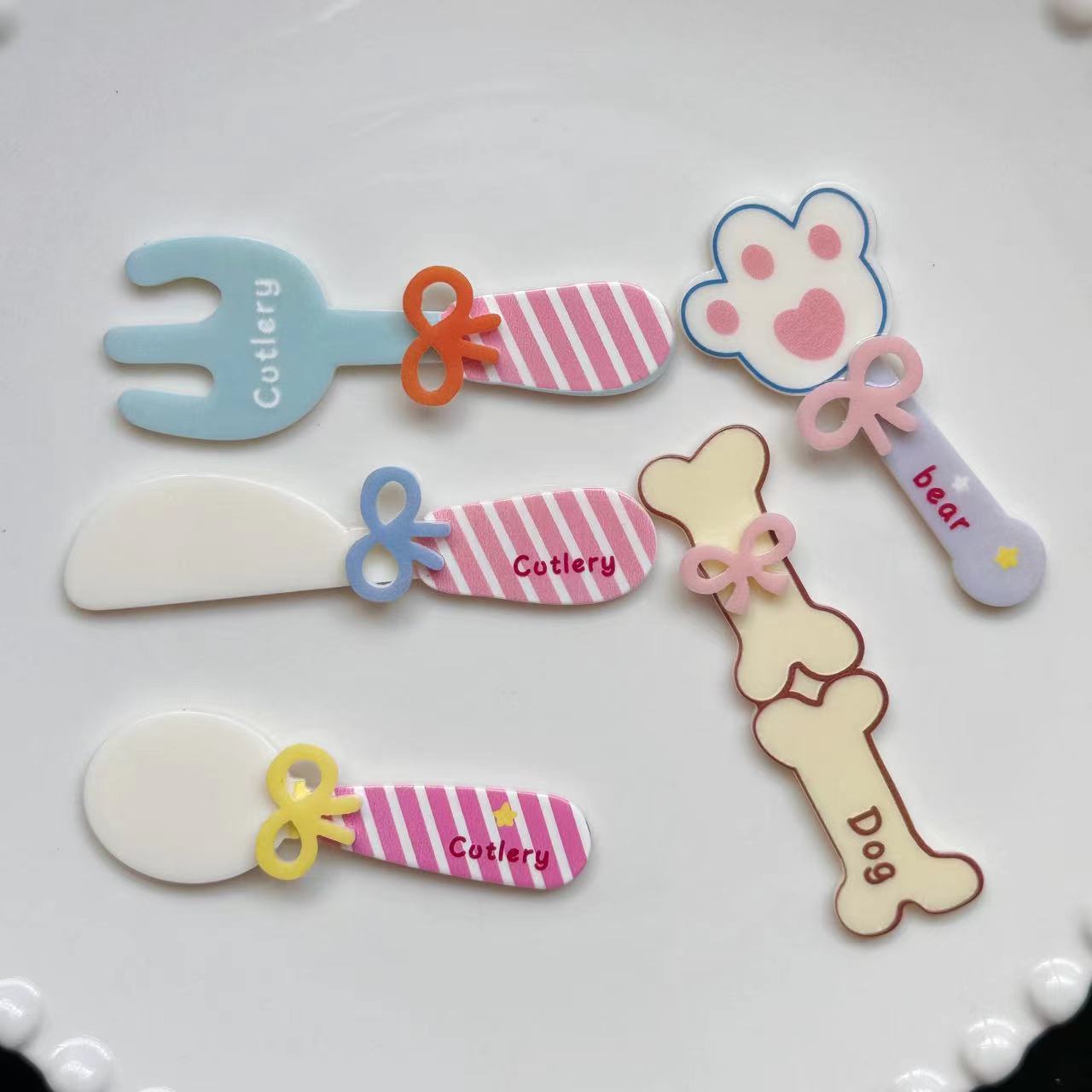 귀여운 긴 동물 식기 조합 아크릴 액세서리 활 나이프와 포크 DIY 헤드웨어 수제 휴대 전화 쉘 스티커스토어 가기