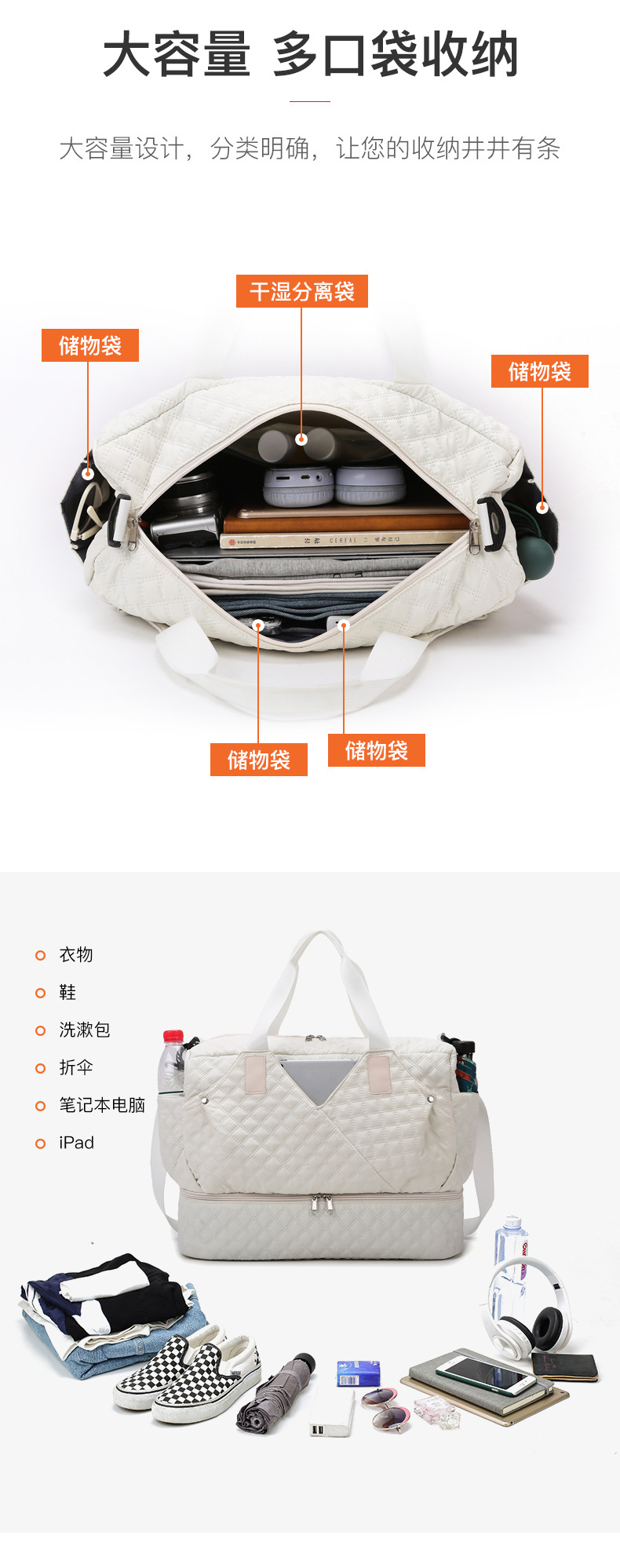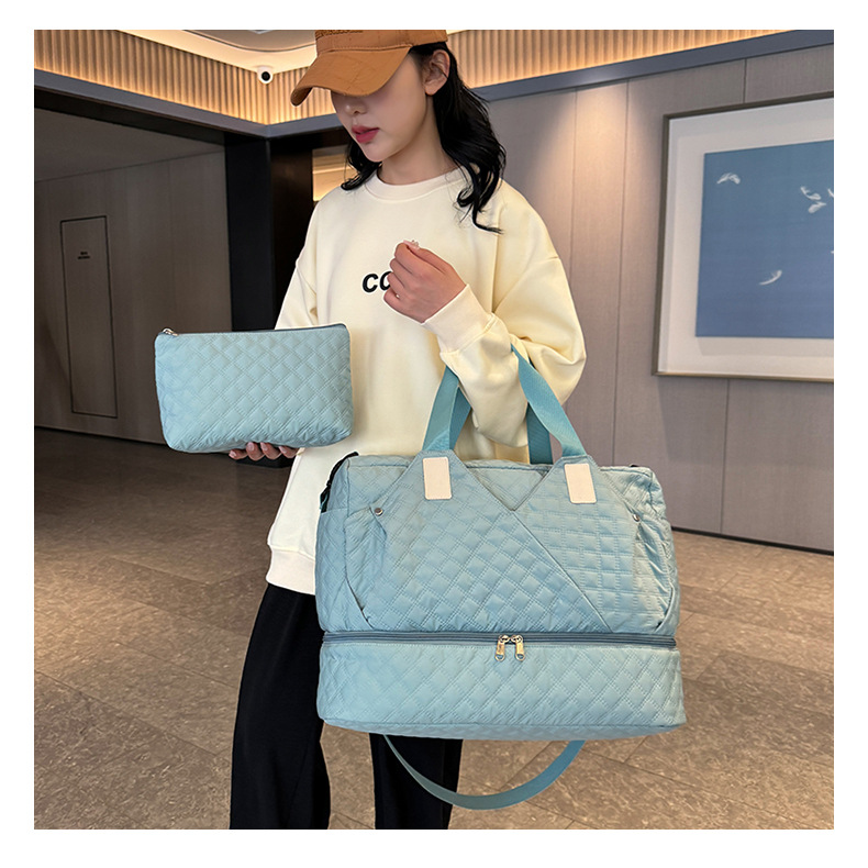 건식 및 습식 분리 스포츠 피트니스 가방 대용량 도매 여행 휴대용 여행 가방 외출을위한 신발 창고가있는 투피스 세트