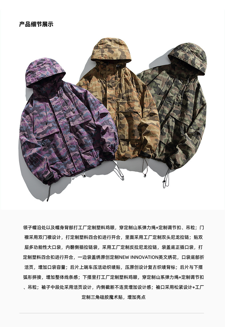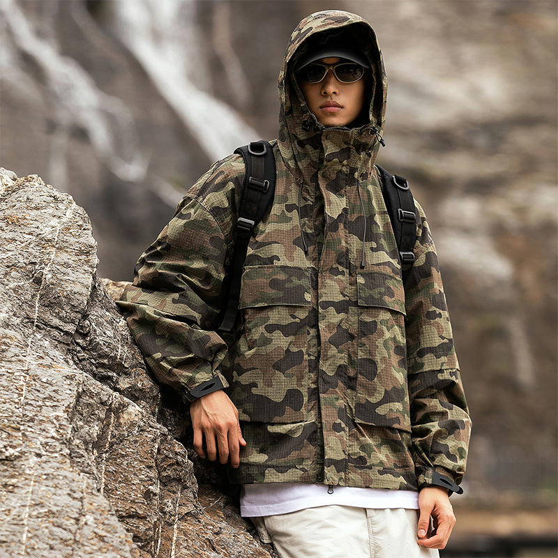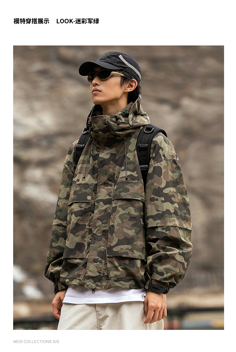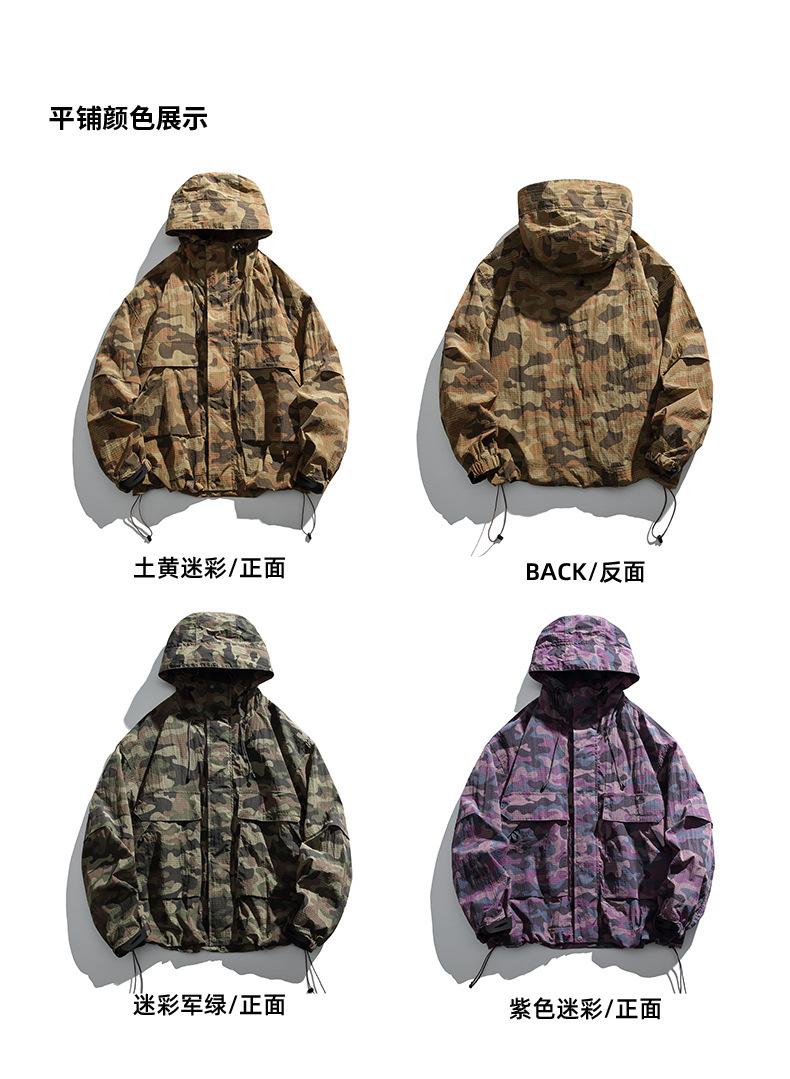 야외 짧은 기능성 경량 빠른 건조 코트 방풍 위장 남성 재킷 슈퍼 느슨한 후드 코트 도매스토어 가기