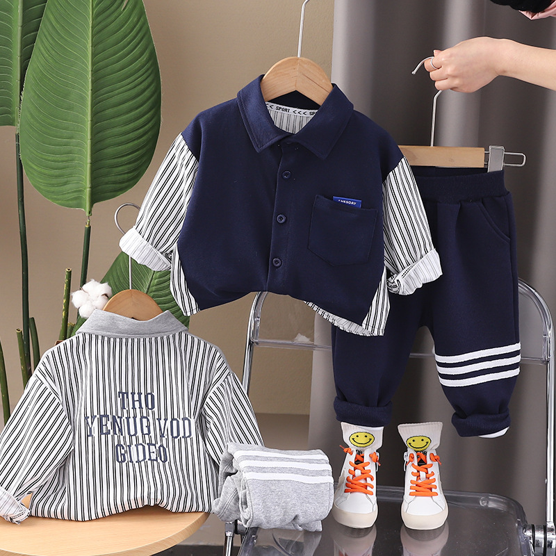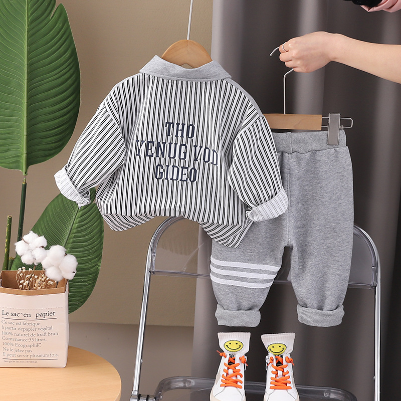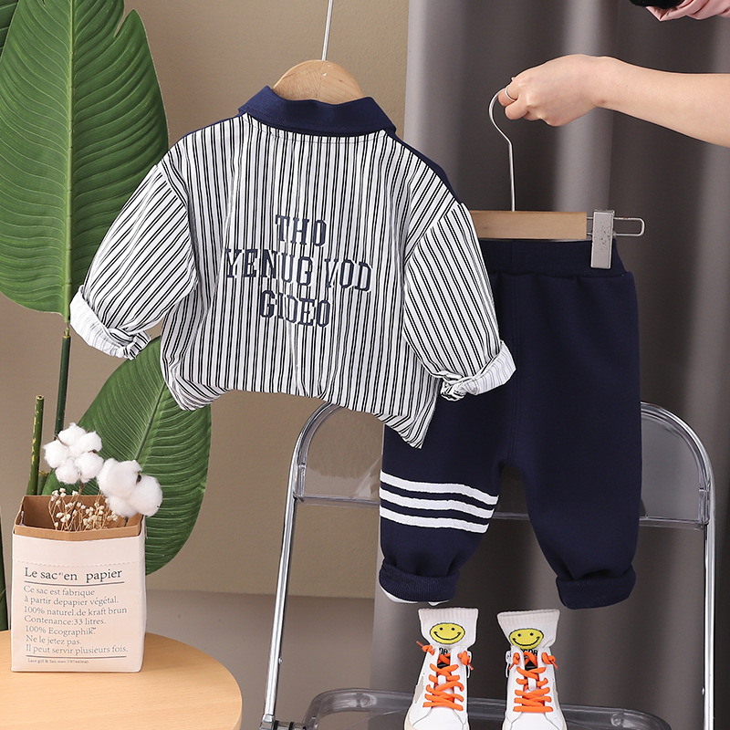 5 개의 작은 7 개의 아동복 2024 봄과 가을 새로운 0-4 세 소년 한국 수직 바느질 셔츠 바지 투피스 세트