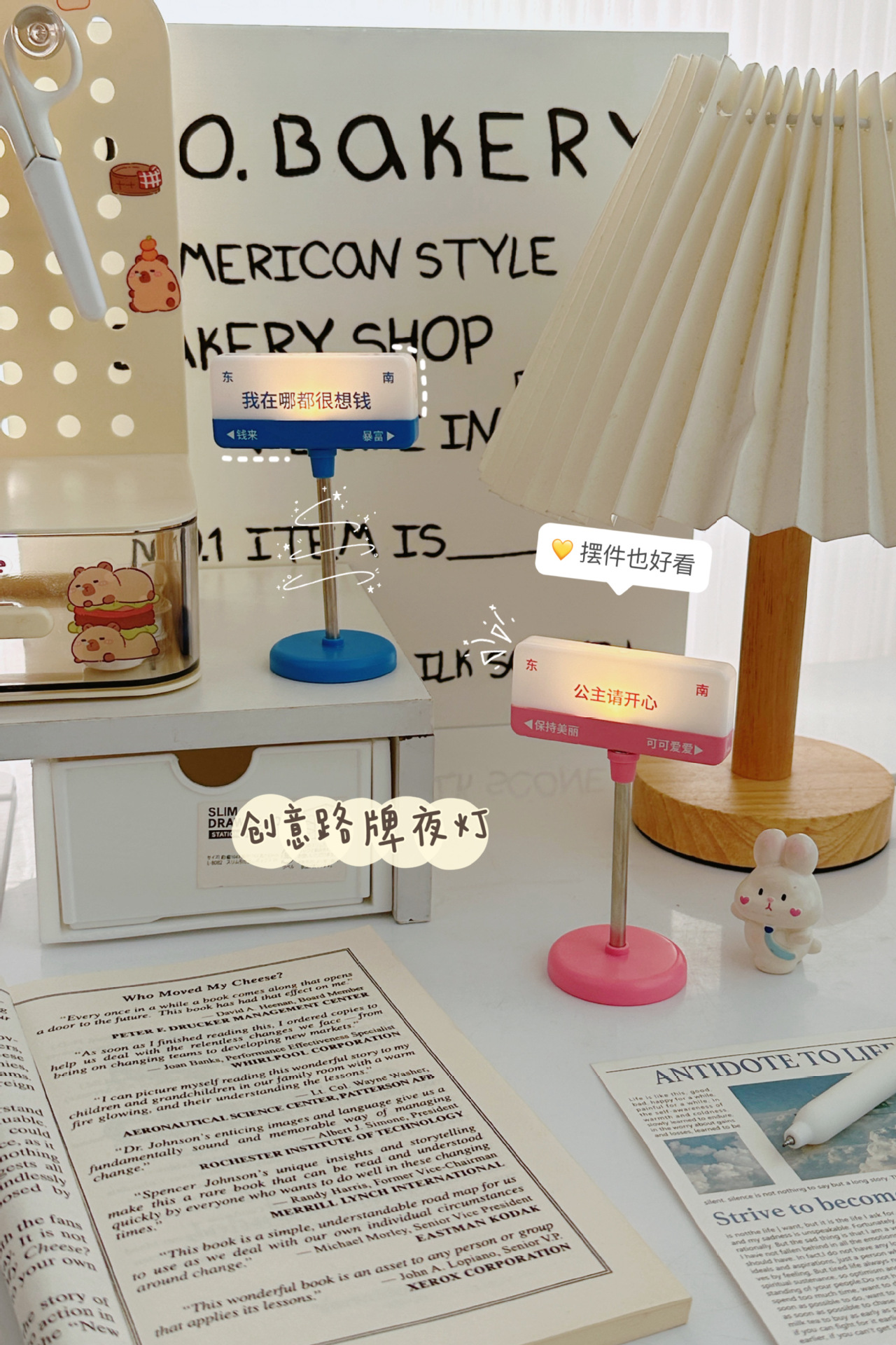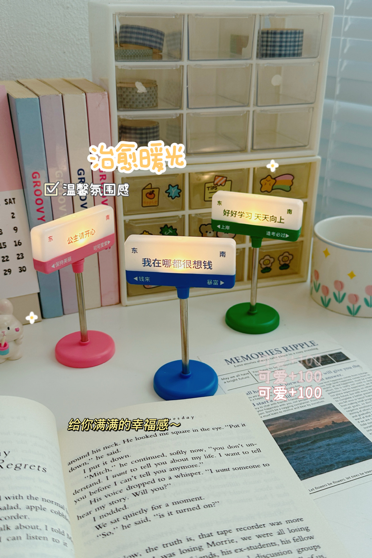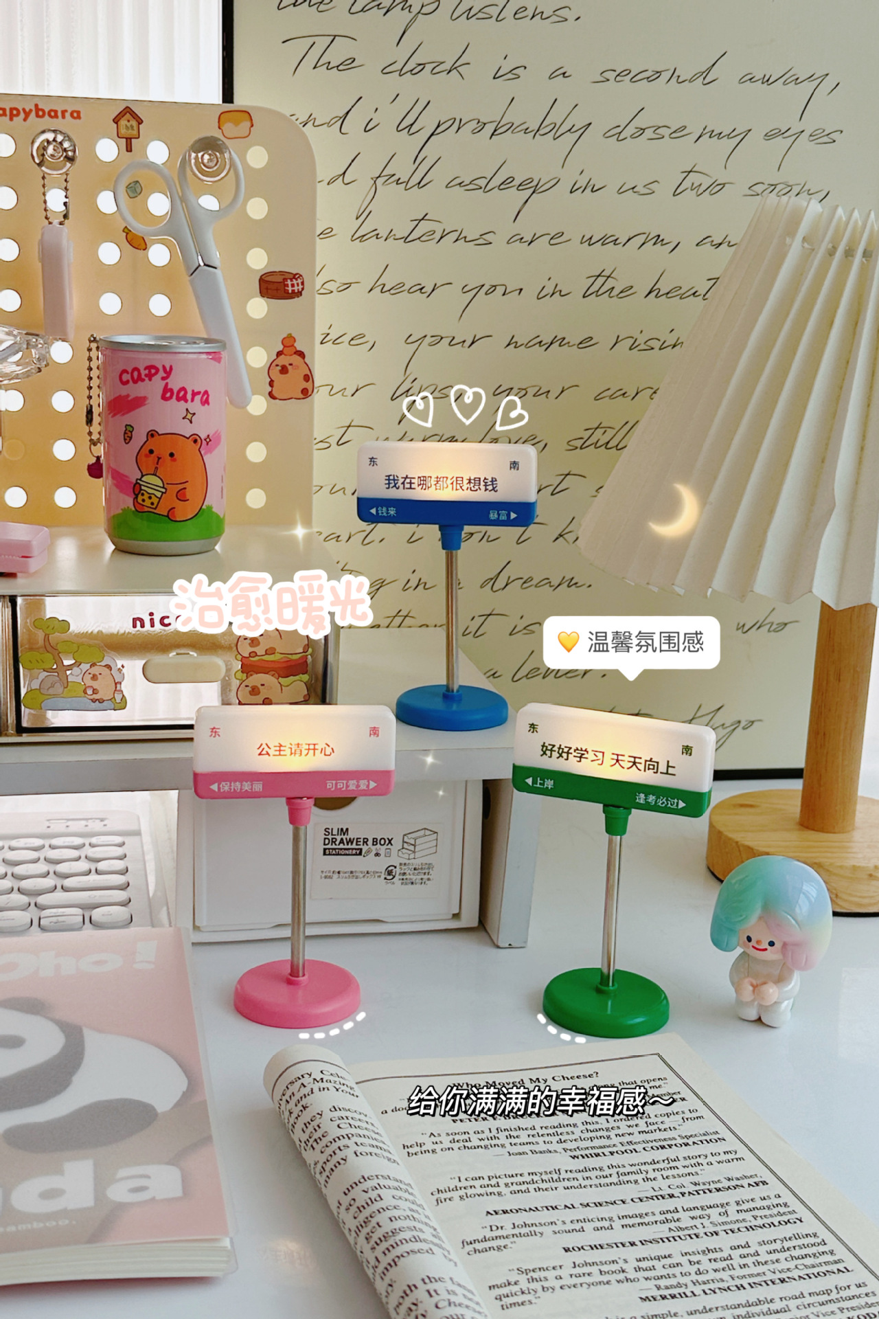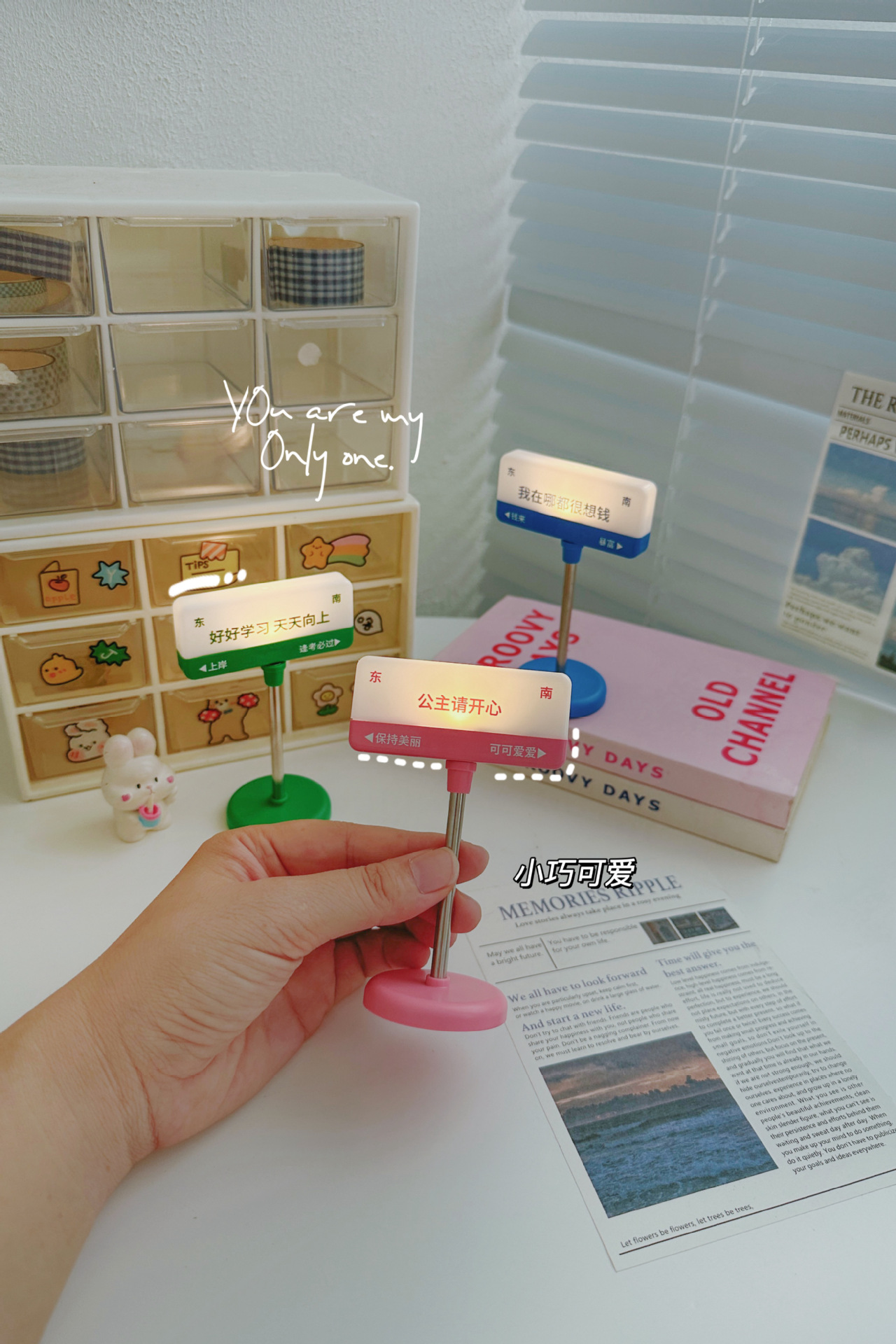 창조적 인 텍스트 거리 표지판 밤 빛 미니 장식품 LED 작은 테이블 램프 책상 장식 밤 빛 창조적 인 작은 선물
