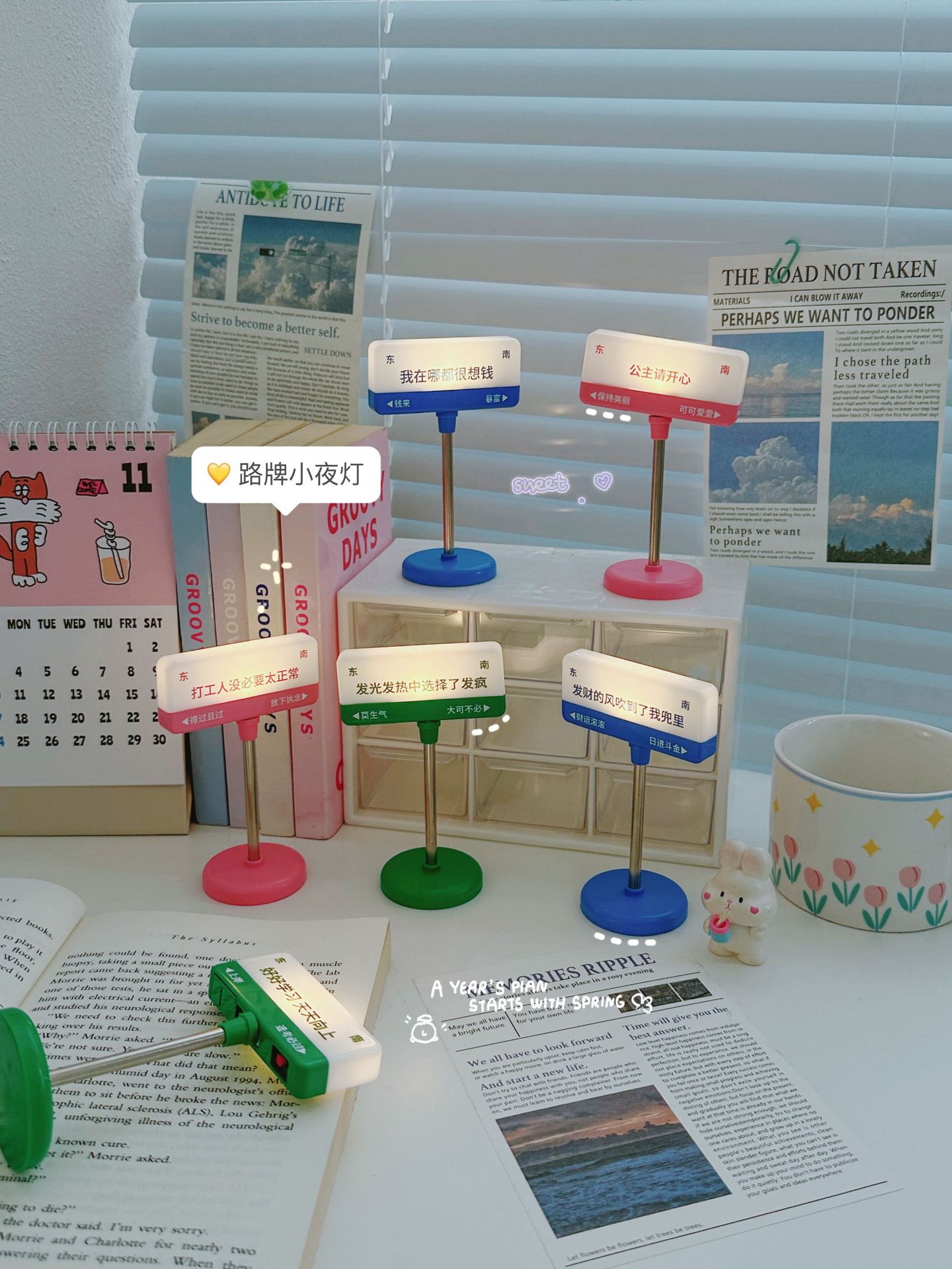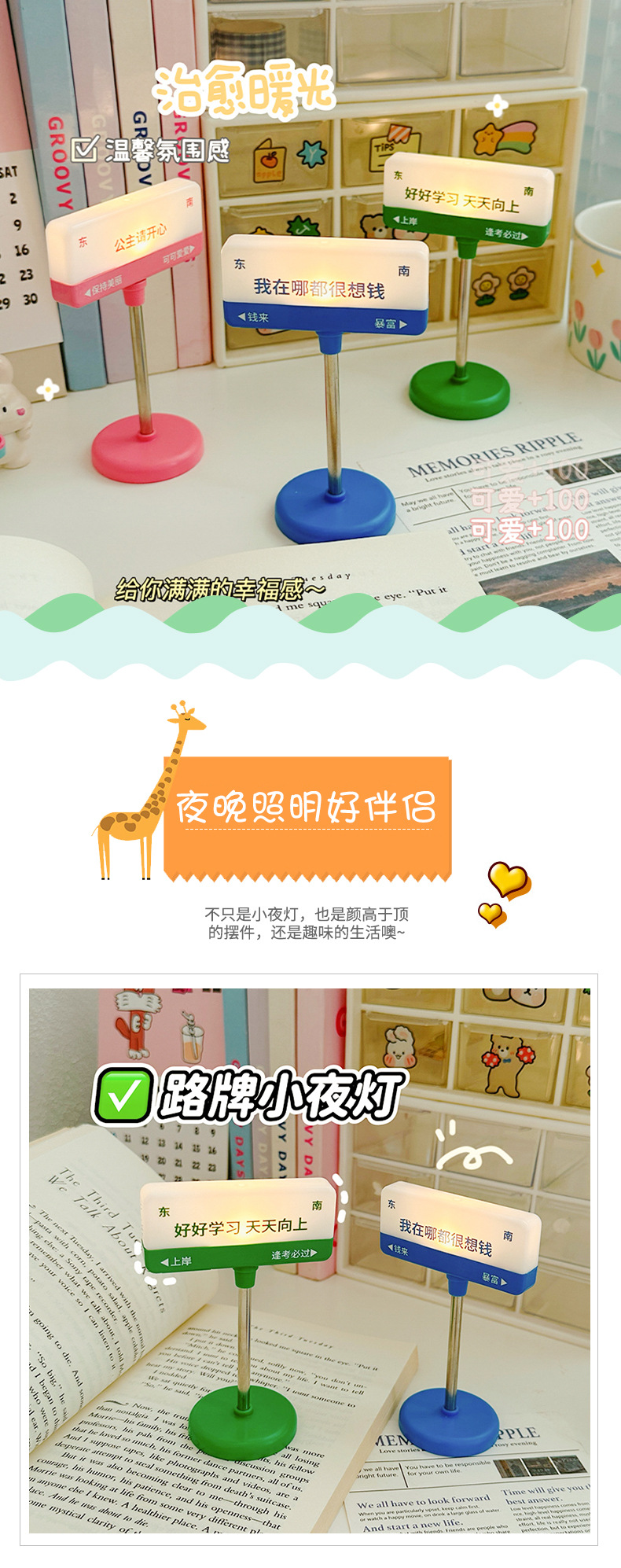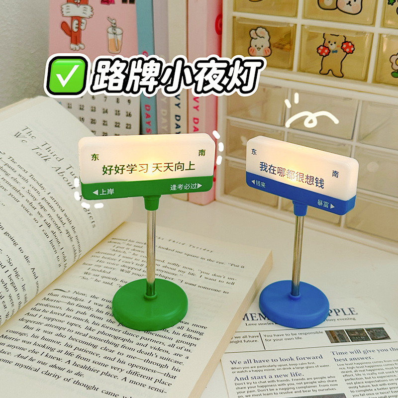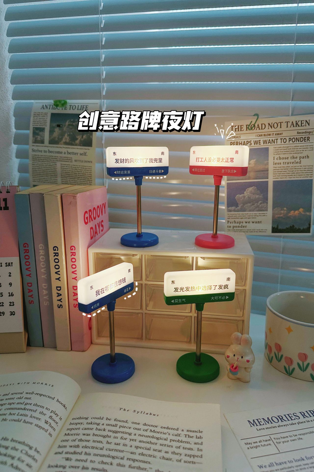 창조적 인 텍스트 거리 표지판 밤 빛 미니 장식품 LED 작은 테이블 램프 책상 장식 밤 빛 창조적 인 작은 선물