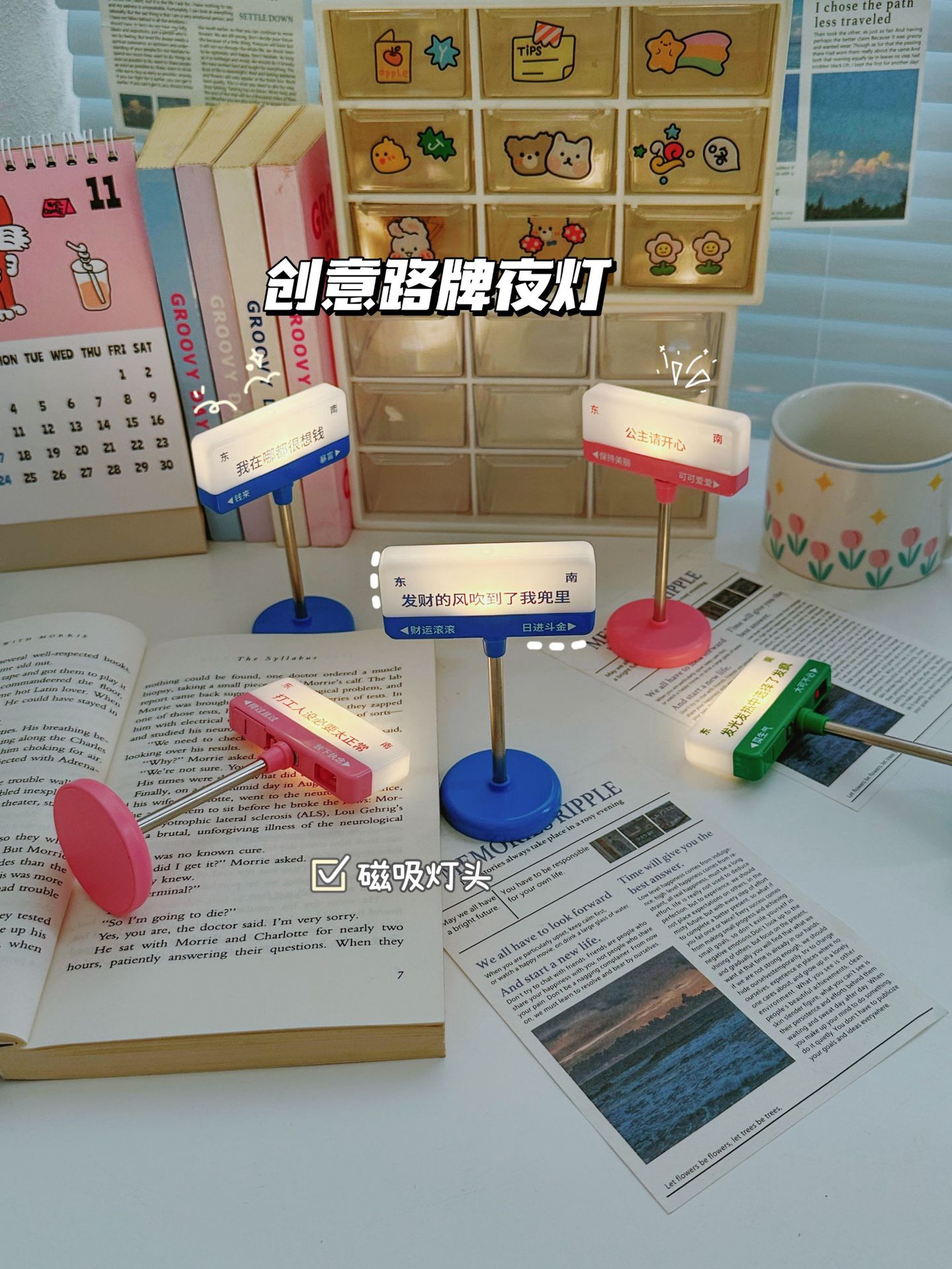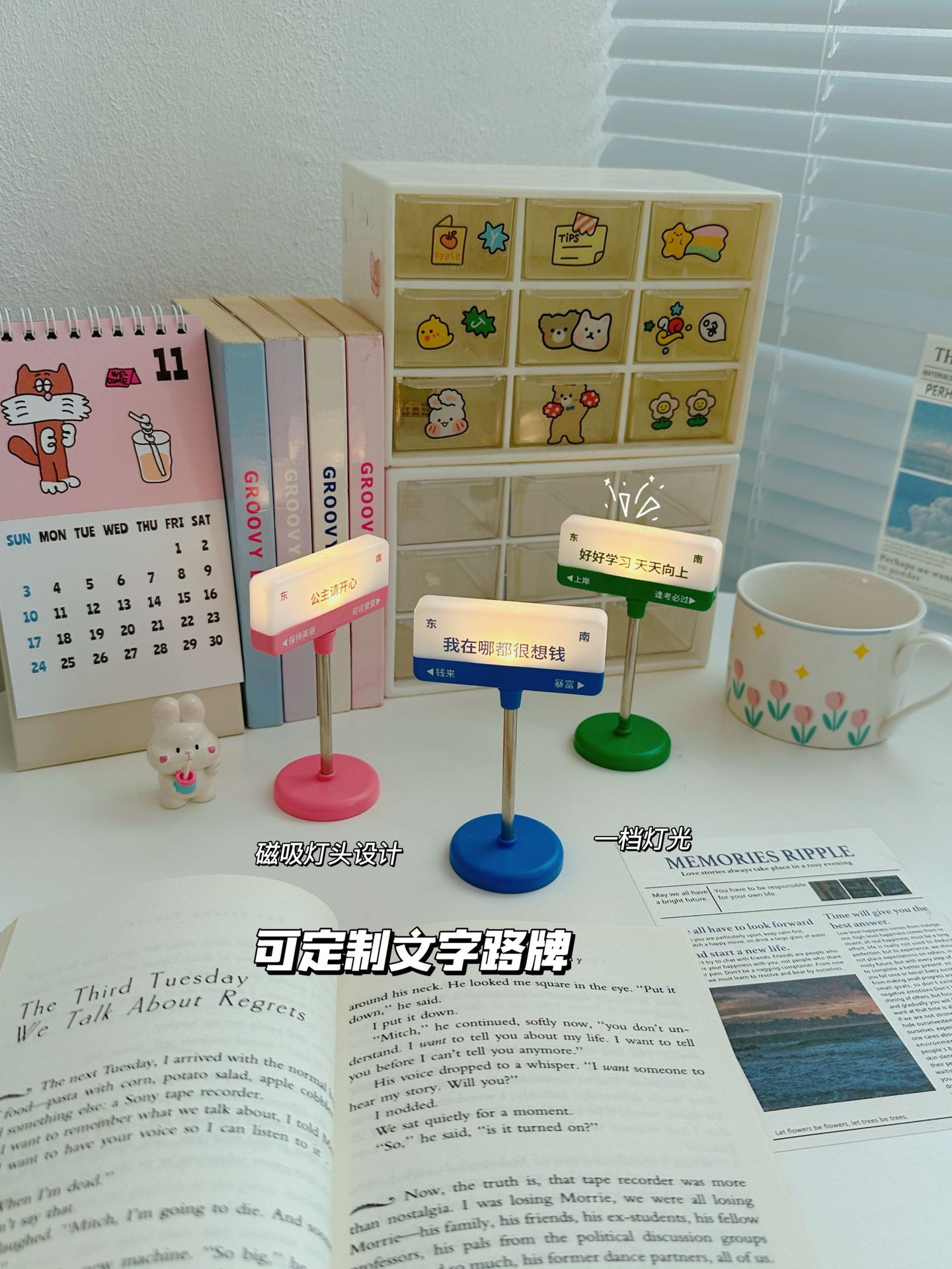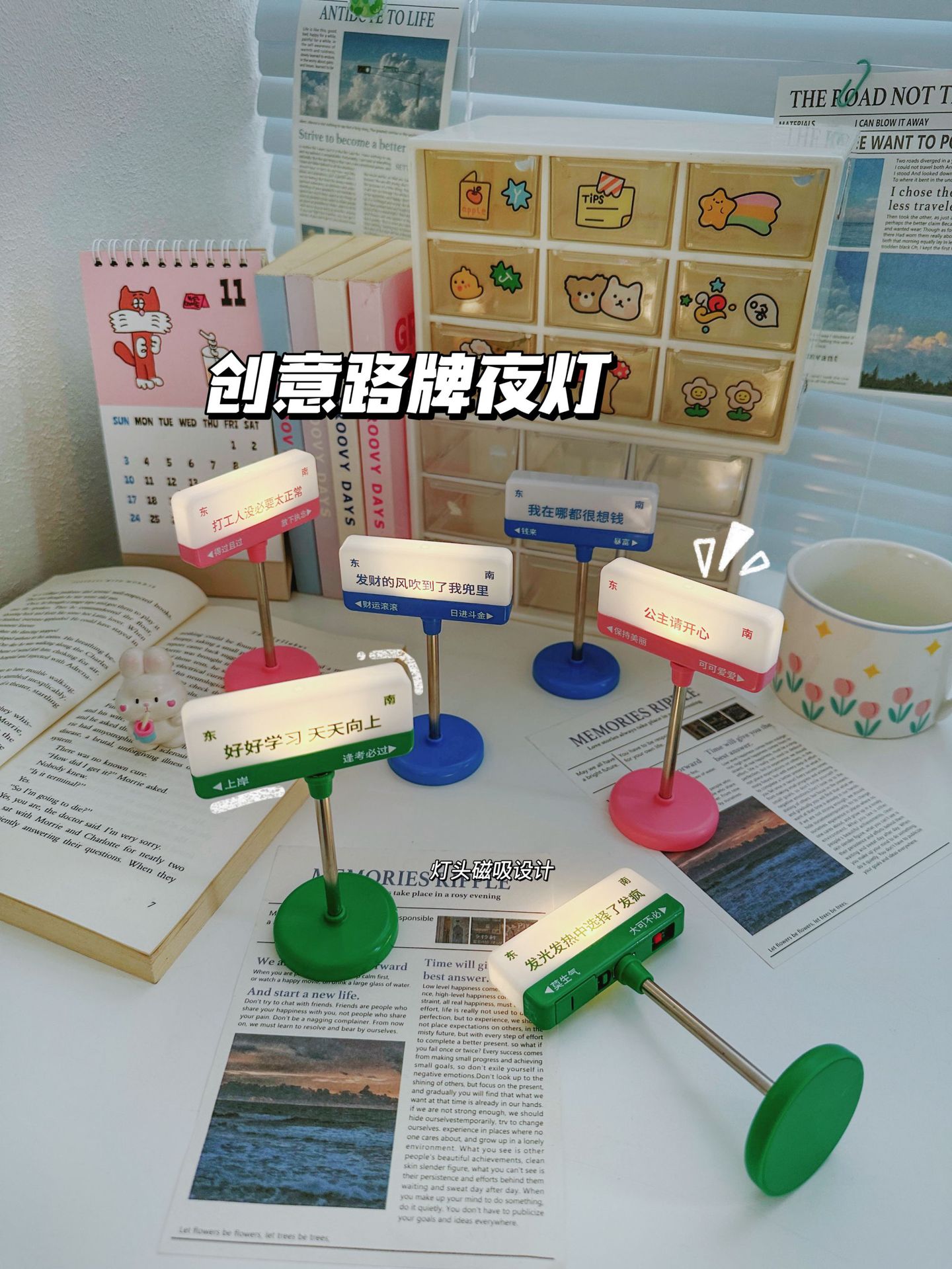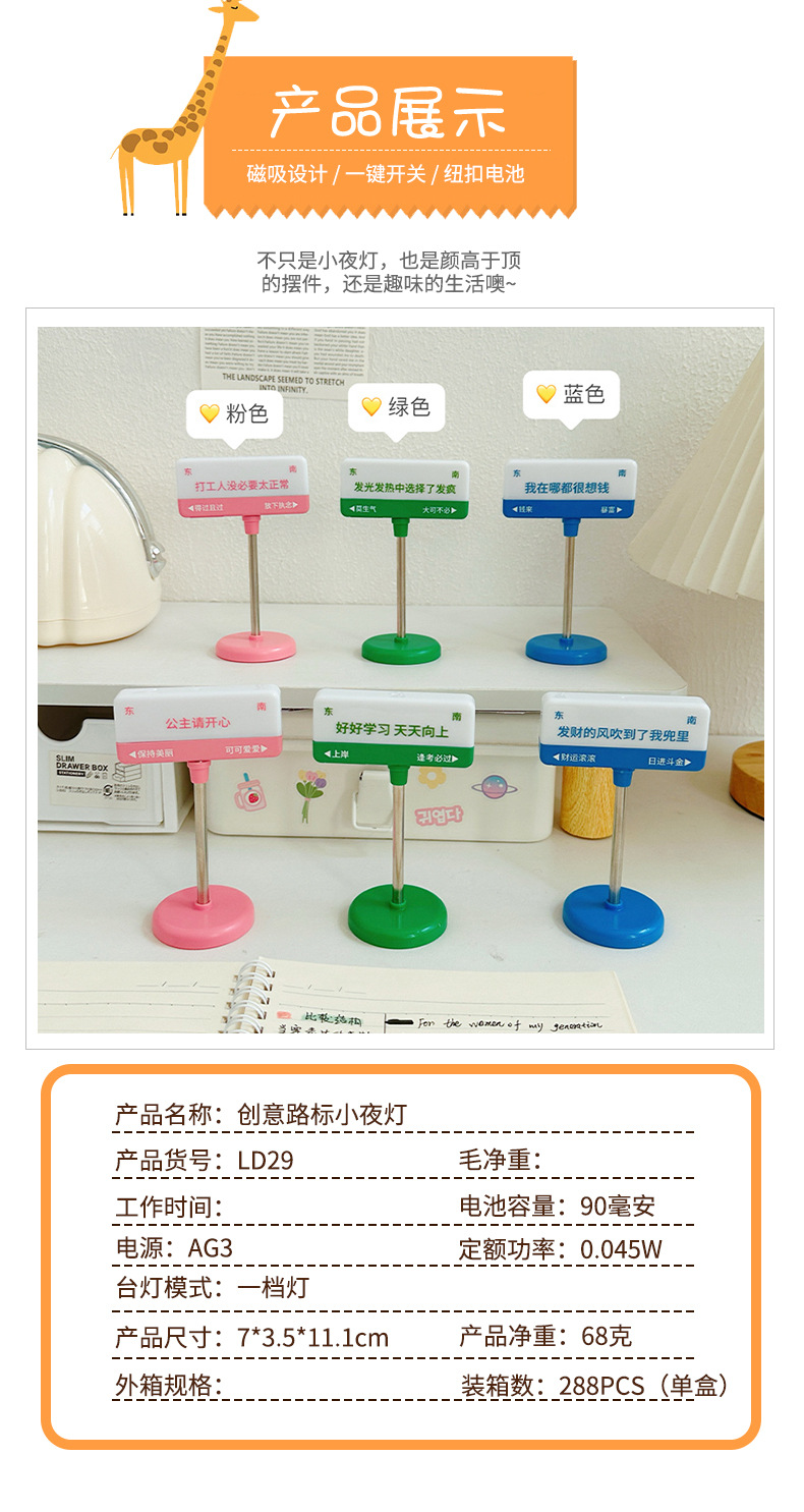 창조적 인 텍스트 거리 표지판 밤 빛 미니 장식품 LED 작은 테이블 램프 책상 장식 밤 빛 창조적 인 작은 선물