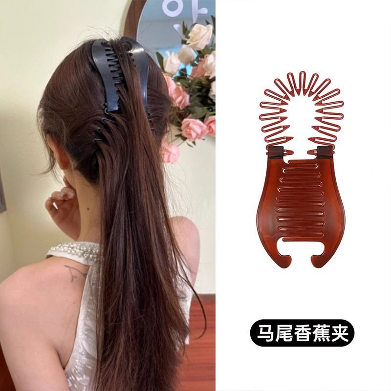 게으른 바나나 클립 수직 클립 폰 테일 헤어핀 여성의 2024 새로운 대형 헤어 멀티 클립 헤드웨어 고급 센스 헤어핀스토어 가기