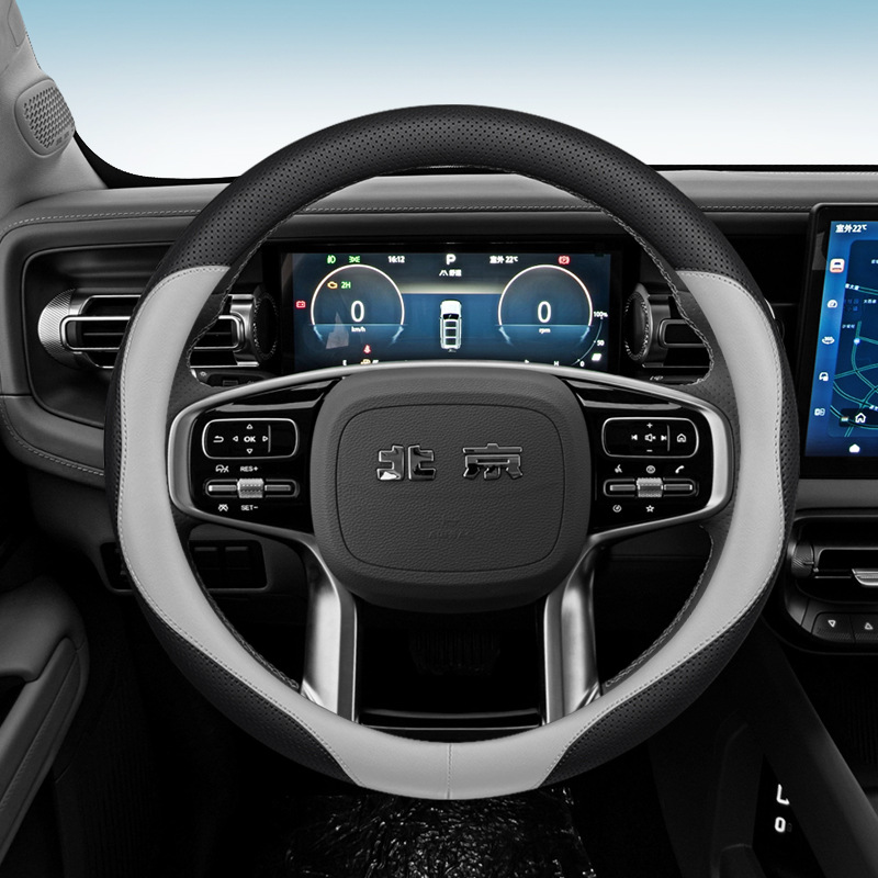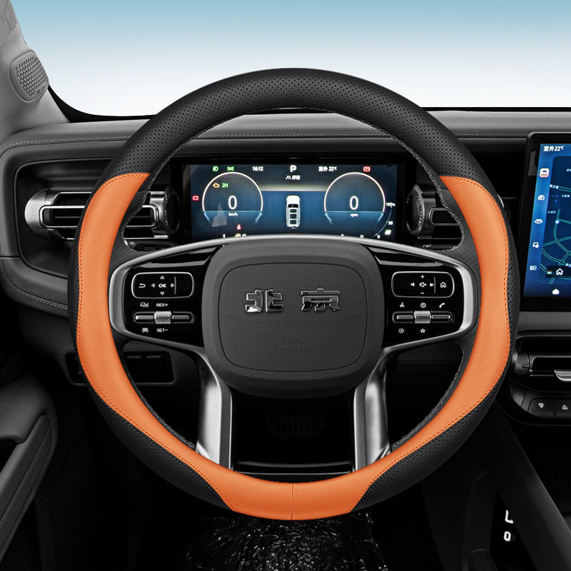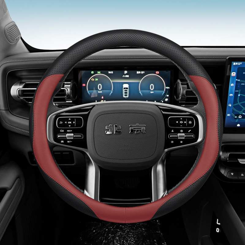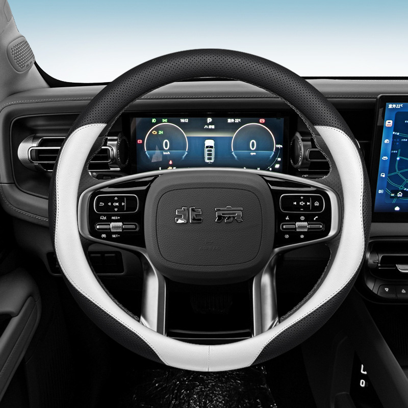24 베이징 BJ40 스티어링 휠 커버 나파 가죽 미끄럼 방지 핸들 커버 손으로 수 놓은 4 시즌 자동차 수정에 적합