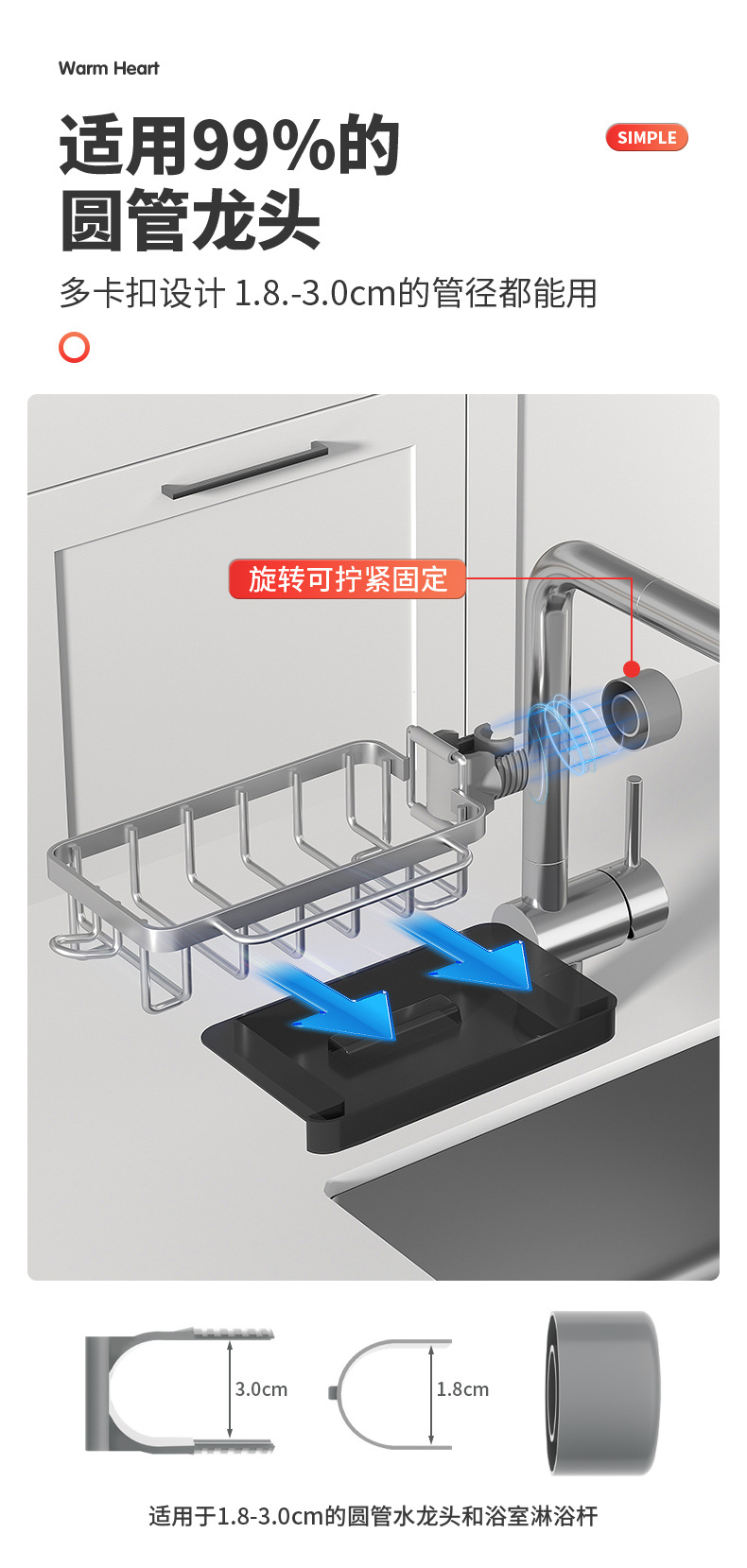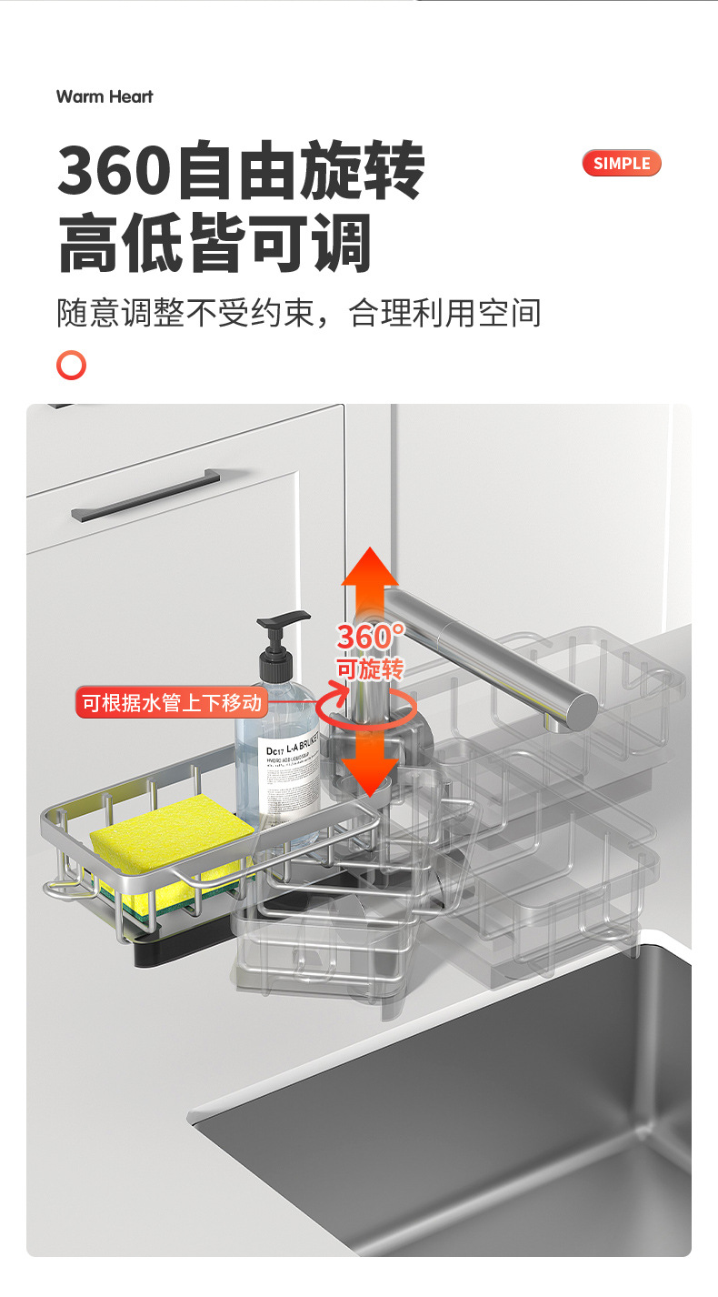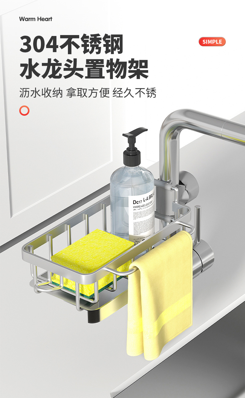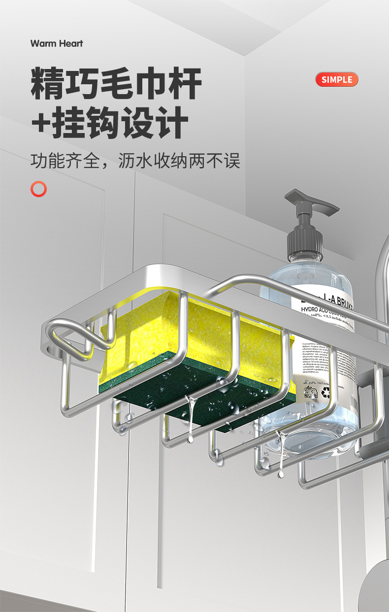 수도꼭지 랙 배수 랙 교수형 주방 싱크 스폰지 저장 랙 배수 바구니 욕실 비누 상자