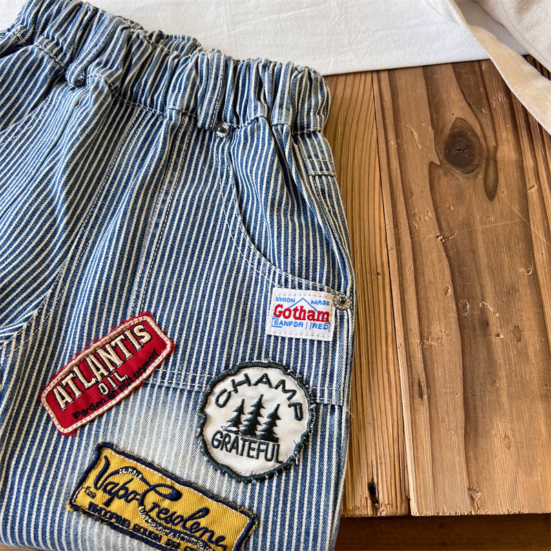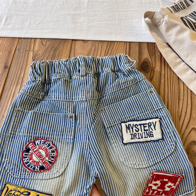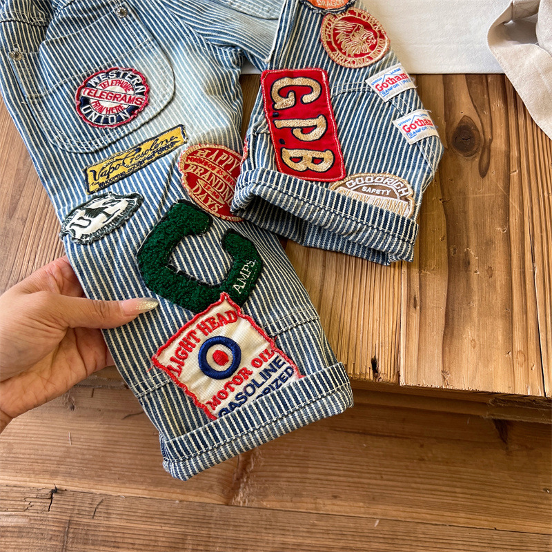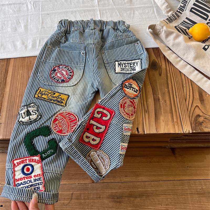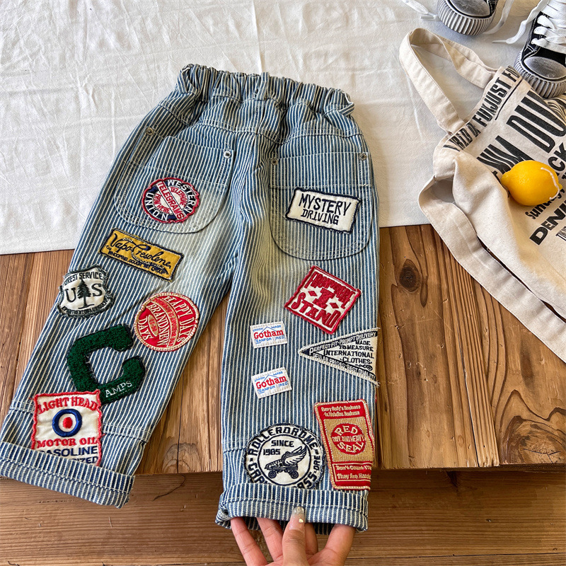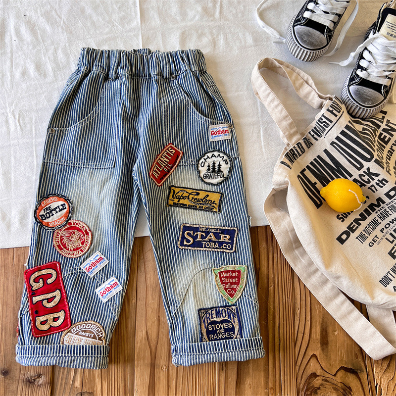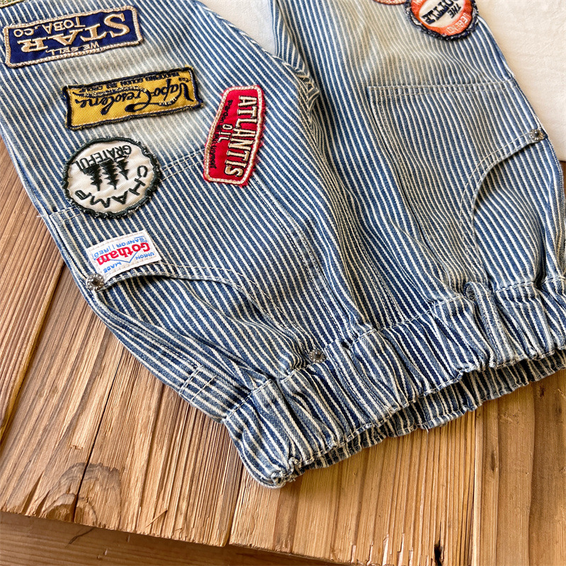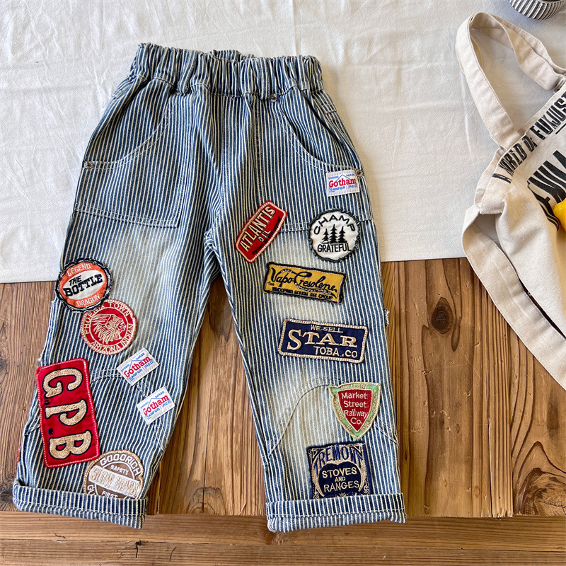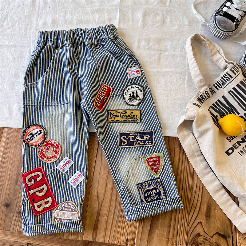 [재고] 일본 중세 어린이 배지 청바지 중공업 옷차림 바지