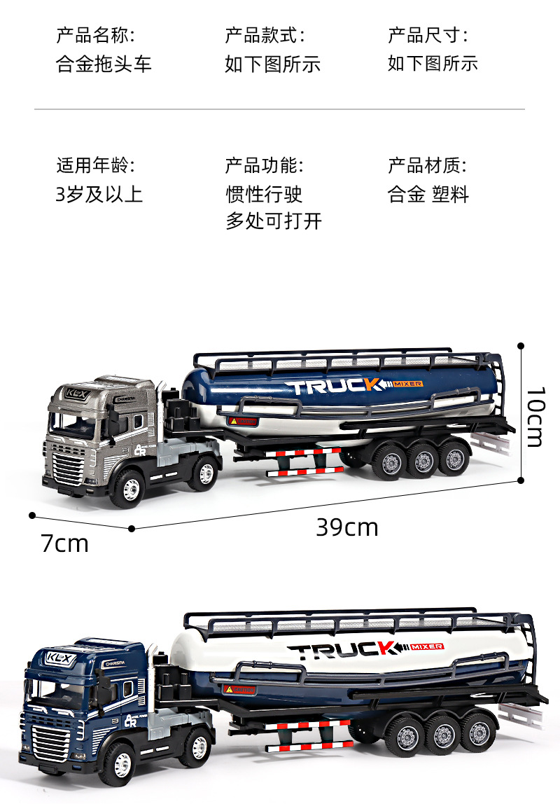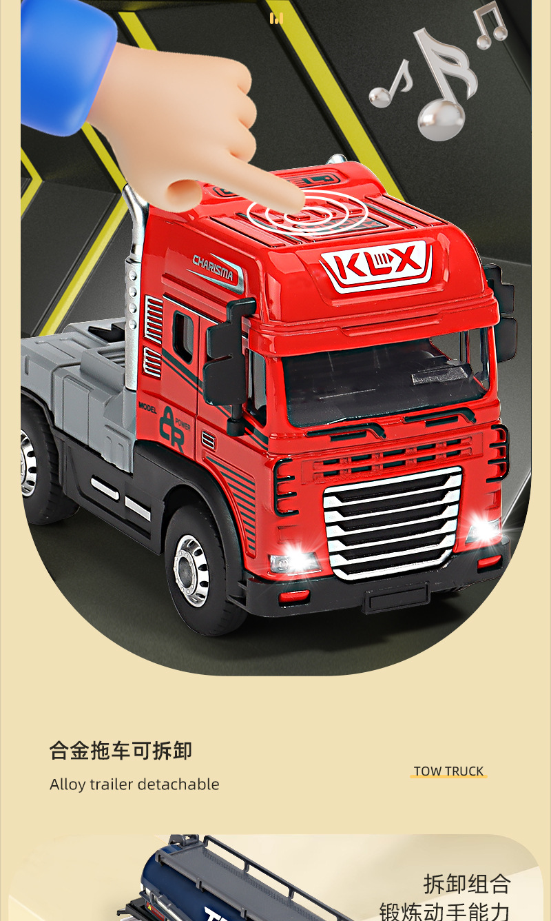 어린이 합금 음향 광학 세미 트레일러 엔지니어링 트럭 대형 트럭 덤프 트럭 운송 컨테이너 장난감 도매스토어 가기