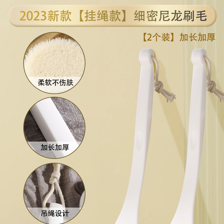 • 업그레이드된 부드러운 강모 목욕 브러시 2개 - [보푸라기 방지 - 미끄럼 방지 곡선 손잡이 + 끈]