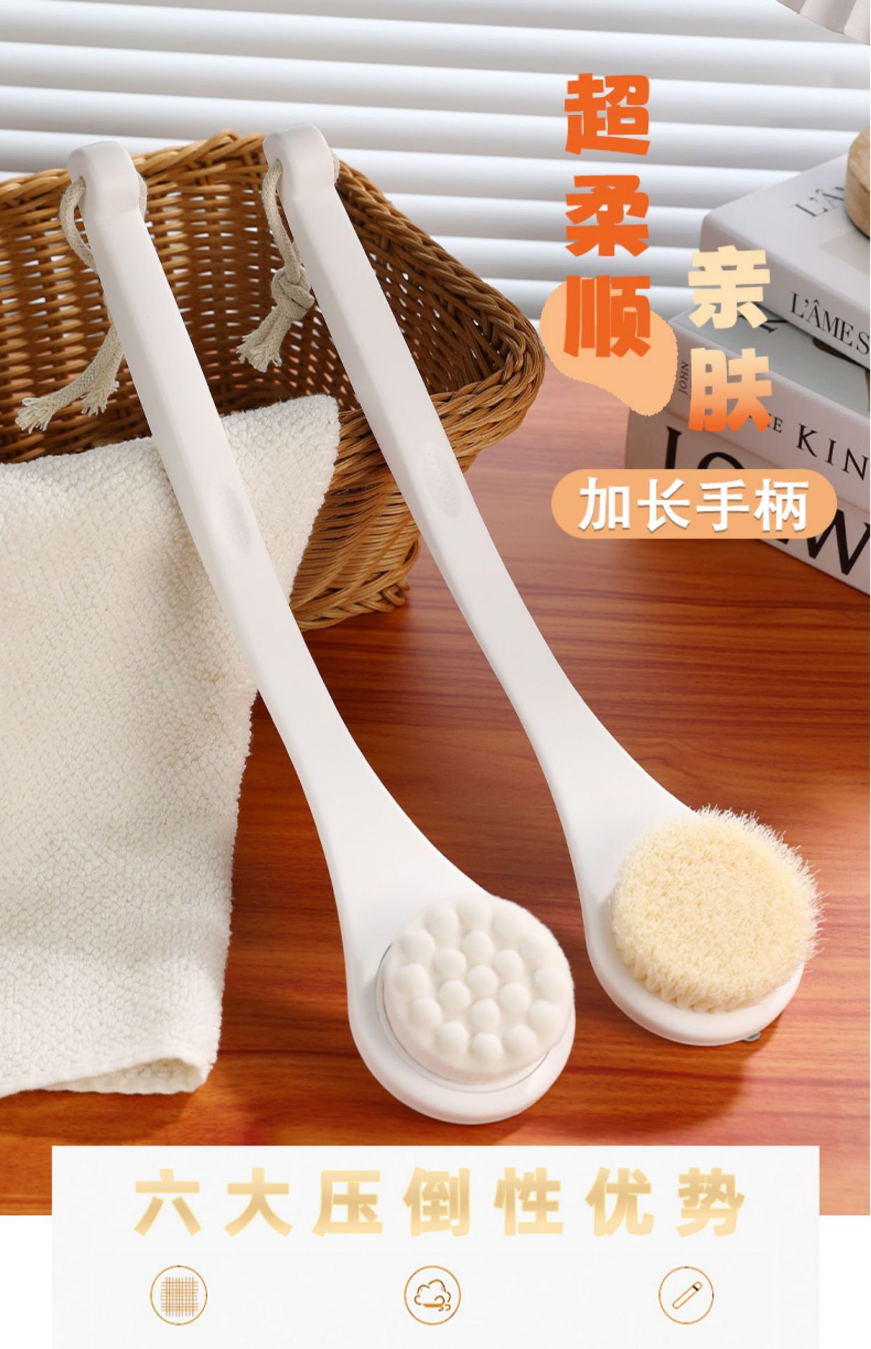• 업그레이드된 부드러운 강모 목욕 브러시 1개 - [보푸라기 방지 - 미끄럼 방지 곡선 손잡이 + 끈]