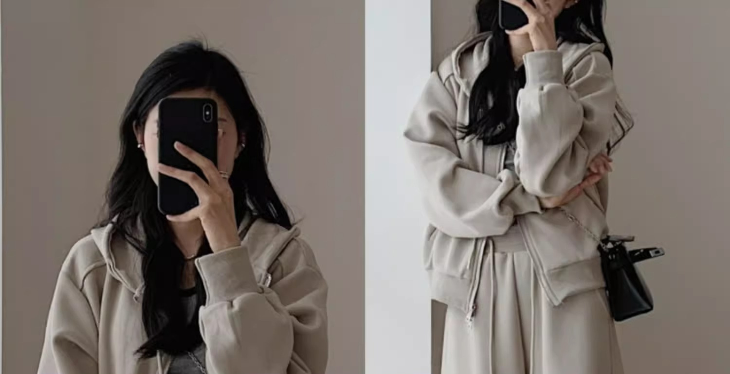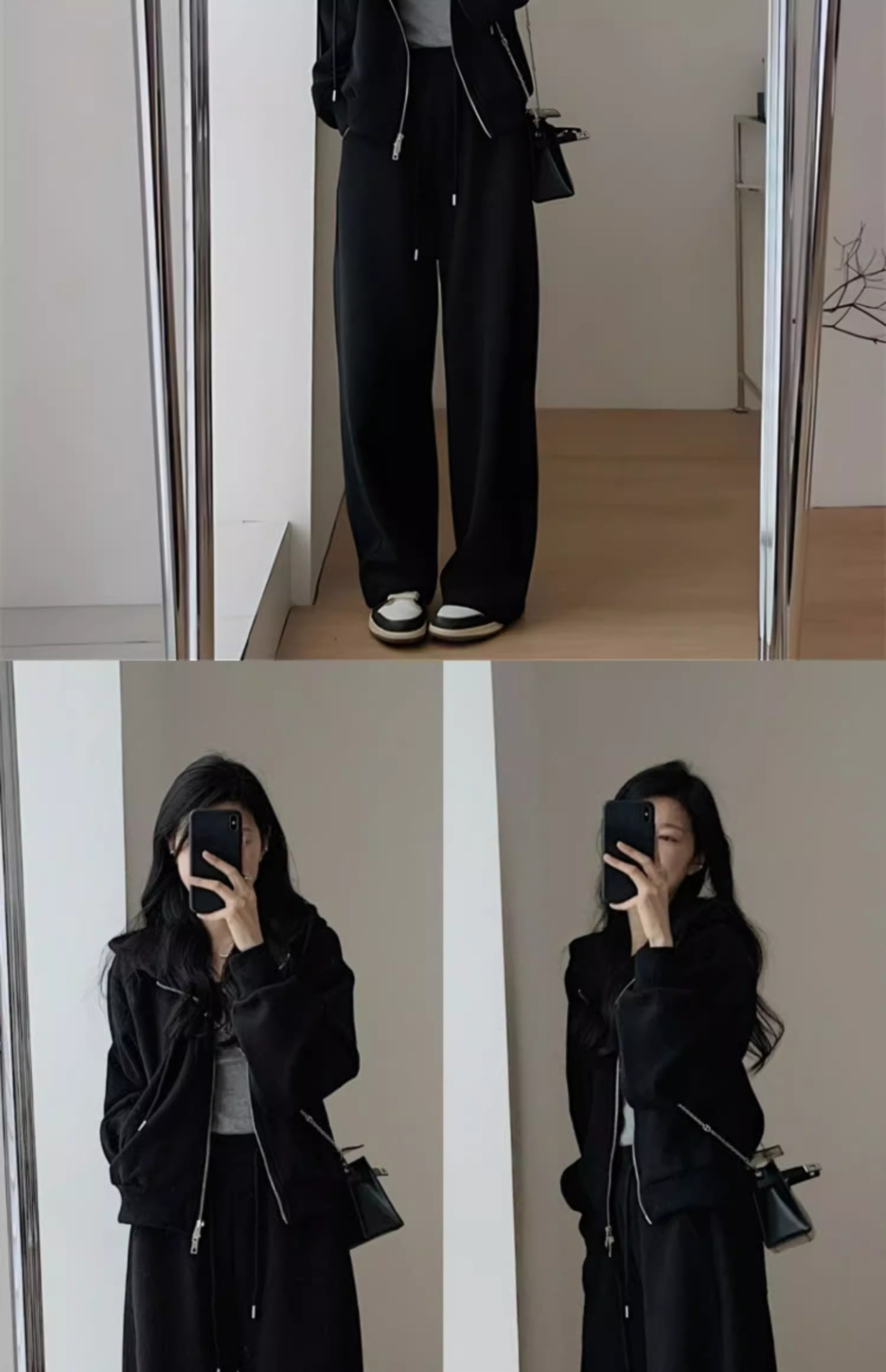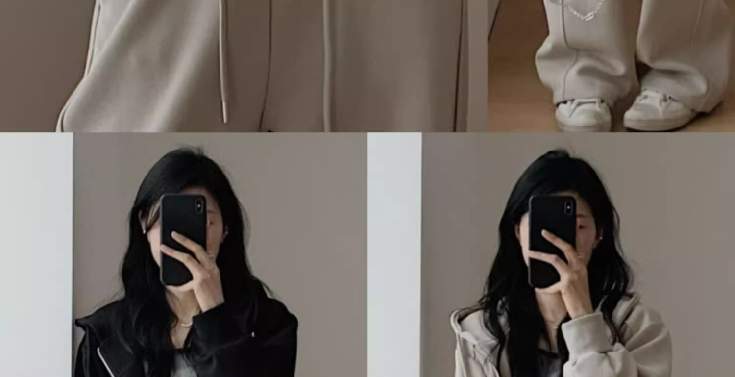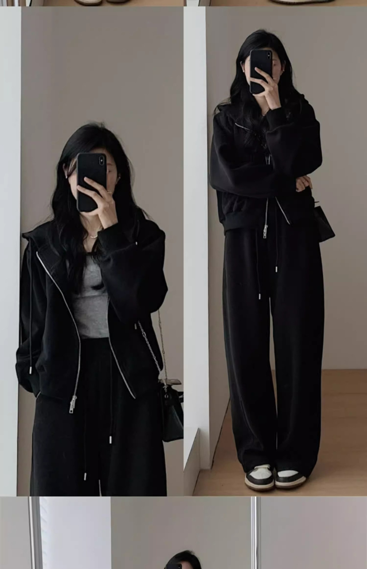 초가을 여성 캐주얼 스웨트셔츠 스포츠 슈트, 패셔너블한 슬림핏과 나이를 줄여주는 와이드 팬츠, 후드 달린 런닝 투피스 세트스토어 가기