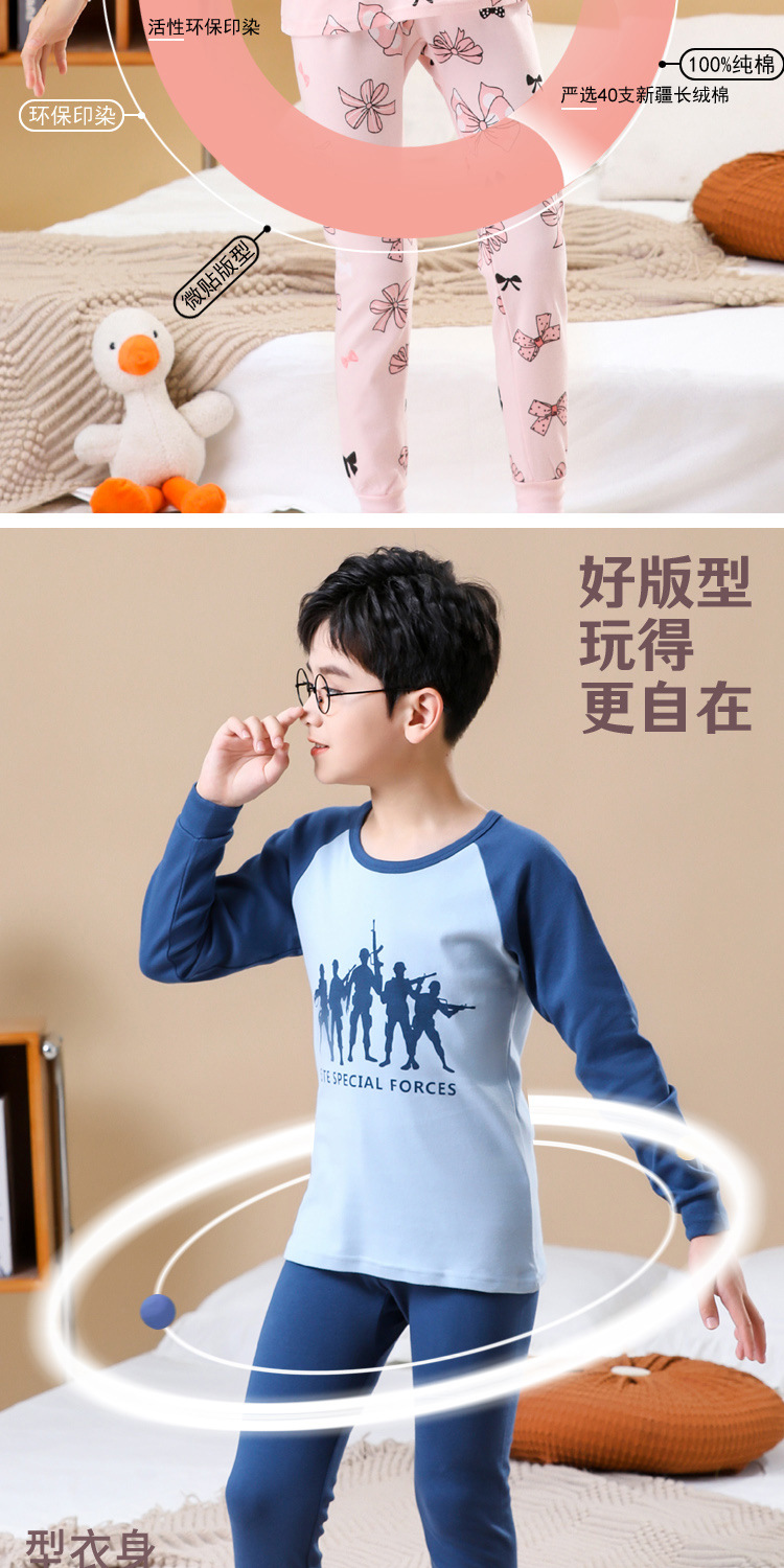 남학생과 여학생을위한 어린이 면 열 속옷 세트 가을 겨울 집 옷 파자마 학생베이스 면 스웨터 가을 옷 바지