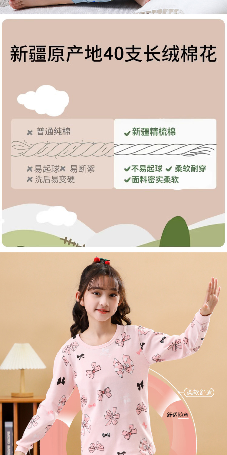 남학생과 여학생을위한 어린이 면 열 속옷 세트 가을 겨울 집 옷 파자마 학생베이스 면 스웨터 가을 옷 바지스토어 가기
