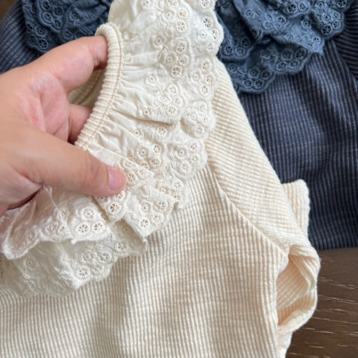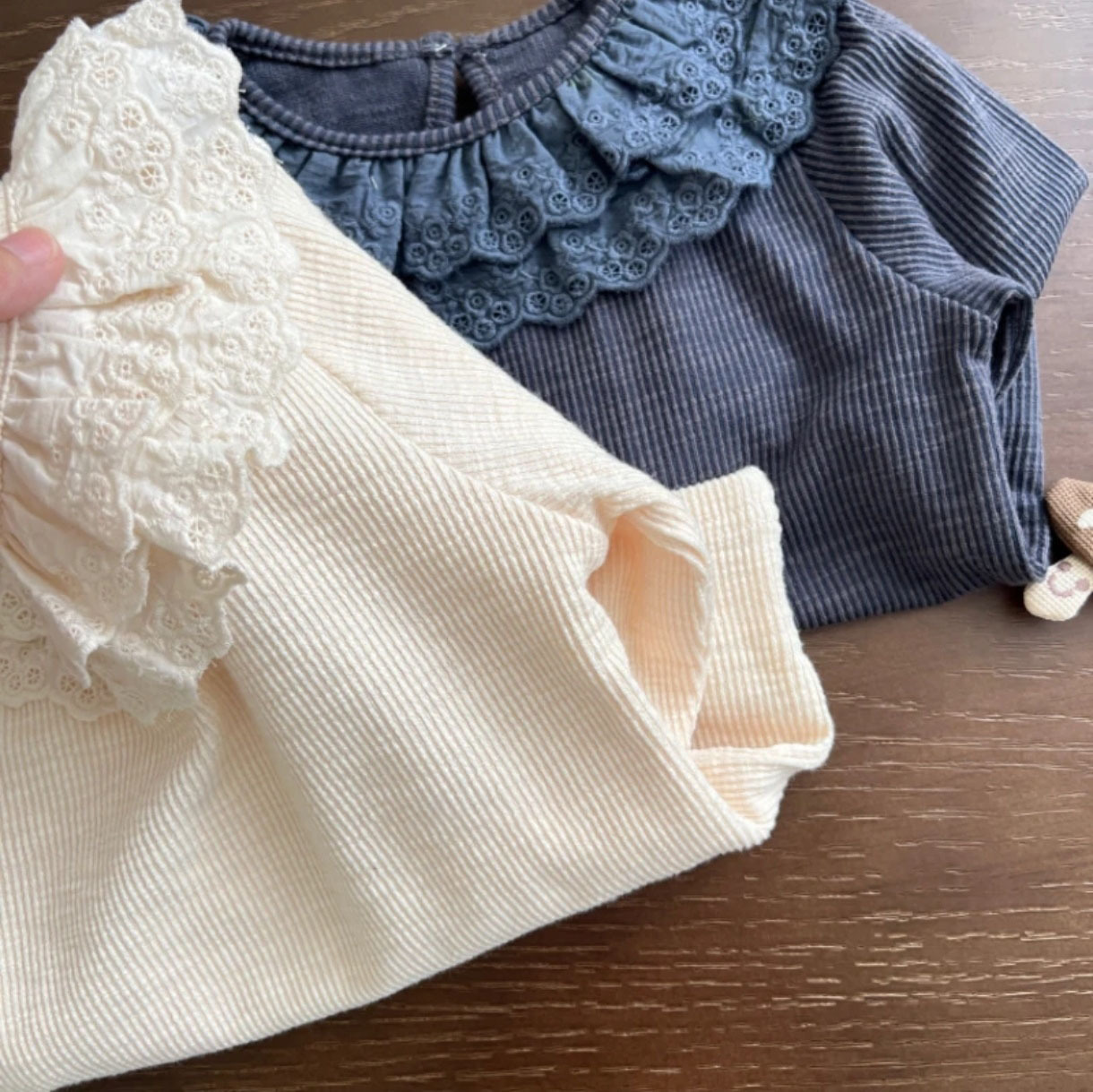 크림 소녀의 인형 칼라 서양식 티셔츠 한국 스타일 아기 소녀의 가을 긴 소매베이스 셔츠 아기의 최고 어린이 티셔츠