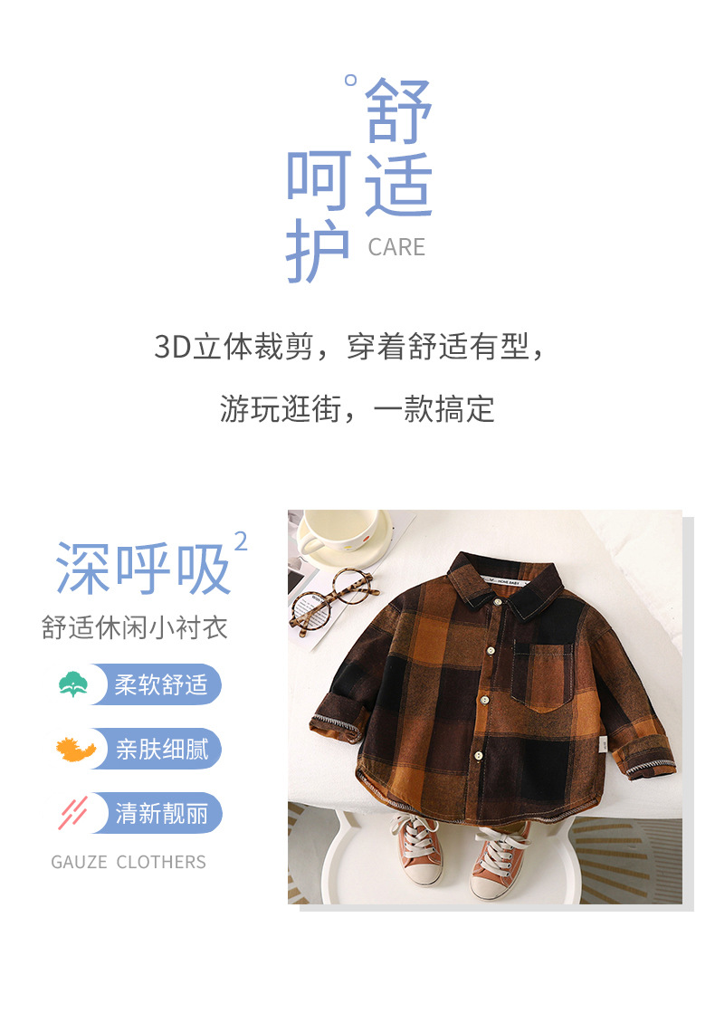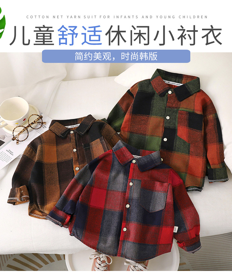가을 어린이 격자 무늬 코트 소년과 소년의 아기 코트 탑 중소형 어린이 셔츠 잘 생긴 캐주얼 긴팔 셔츠스토어 가기