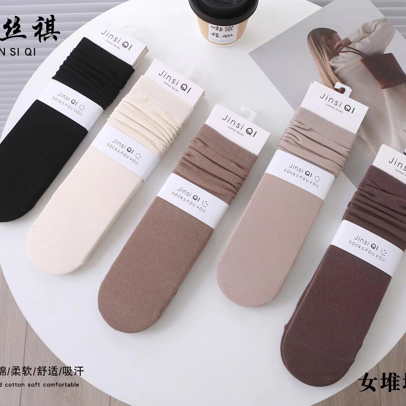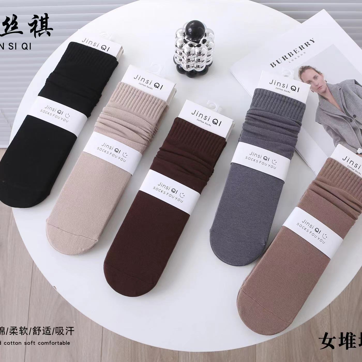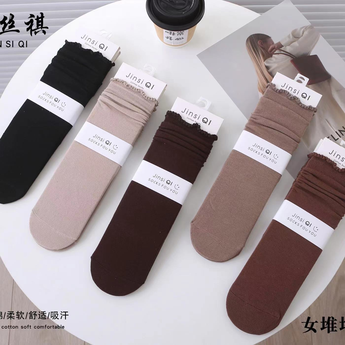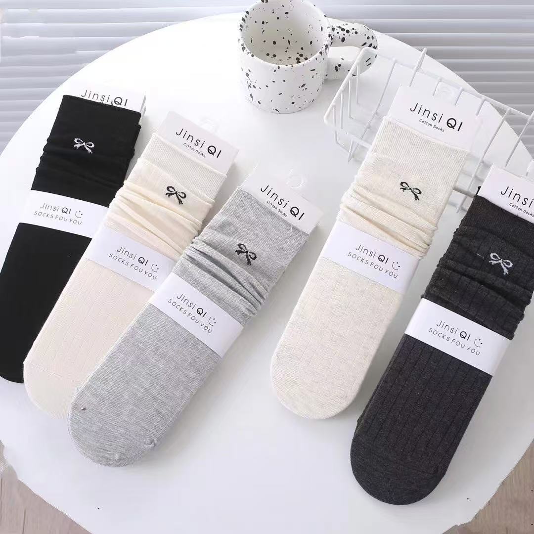 2025 여성용 가을 스타킹 기본 커피색 리본 장식 종아리 양말 롱 코튼 양말 도매스토어 가기