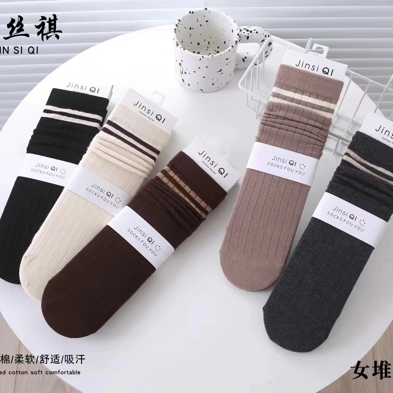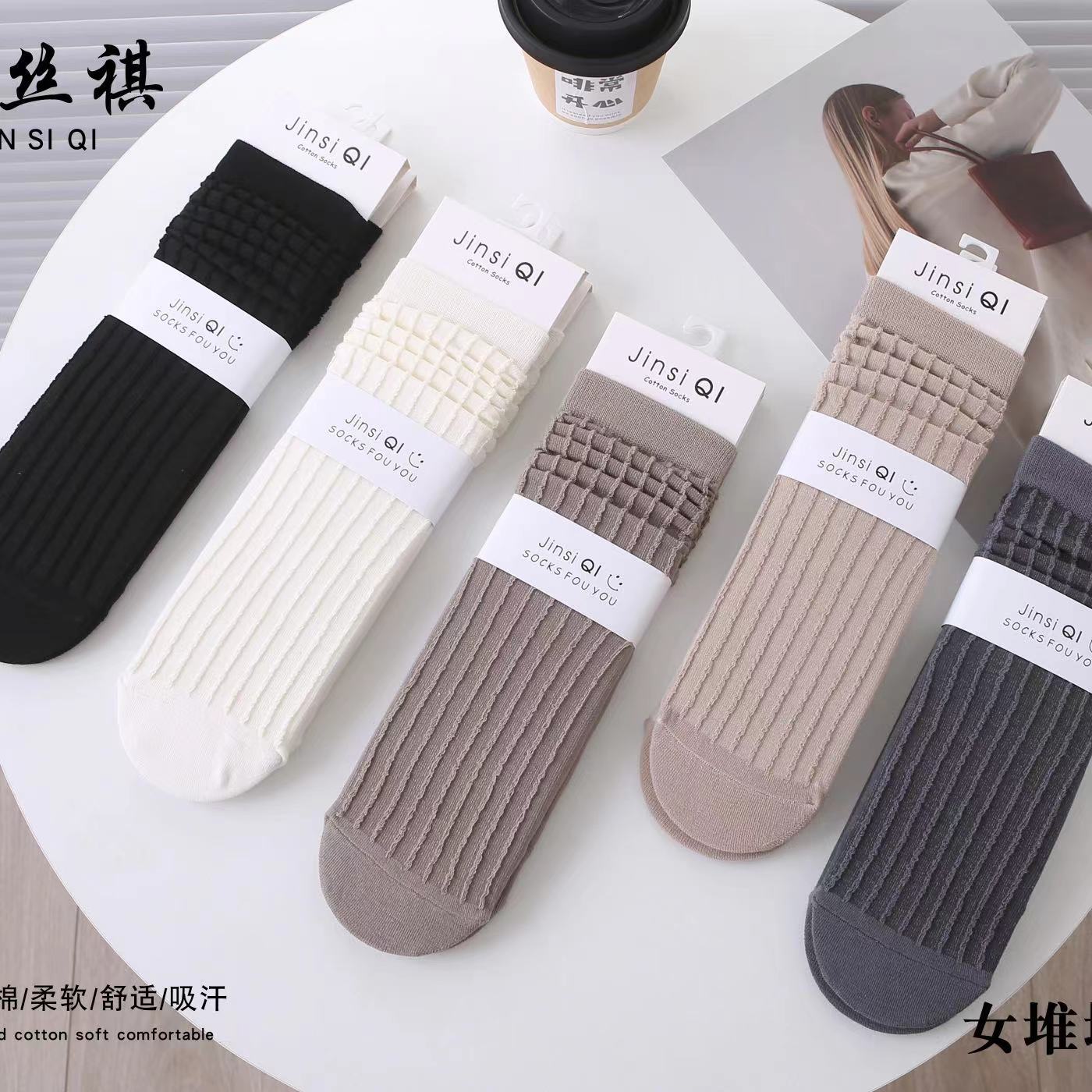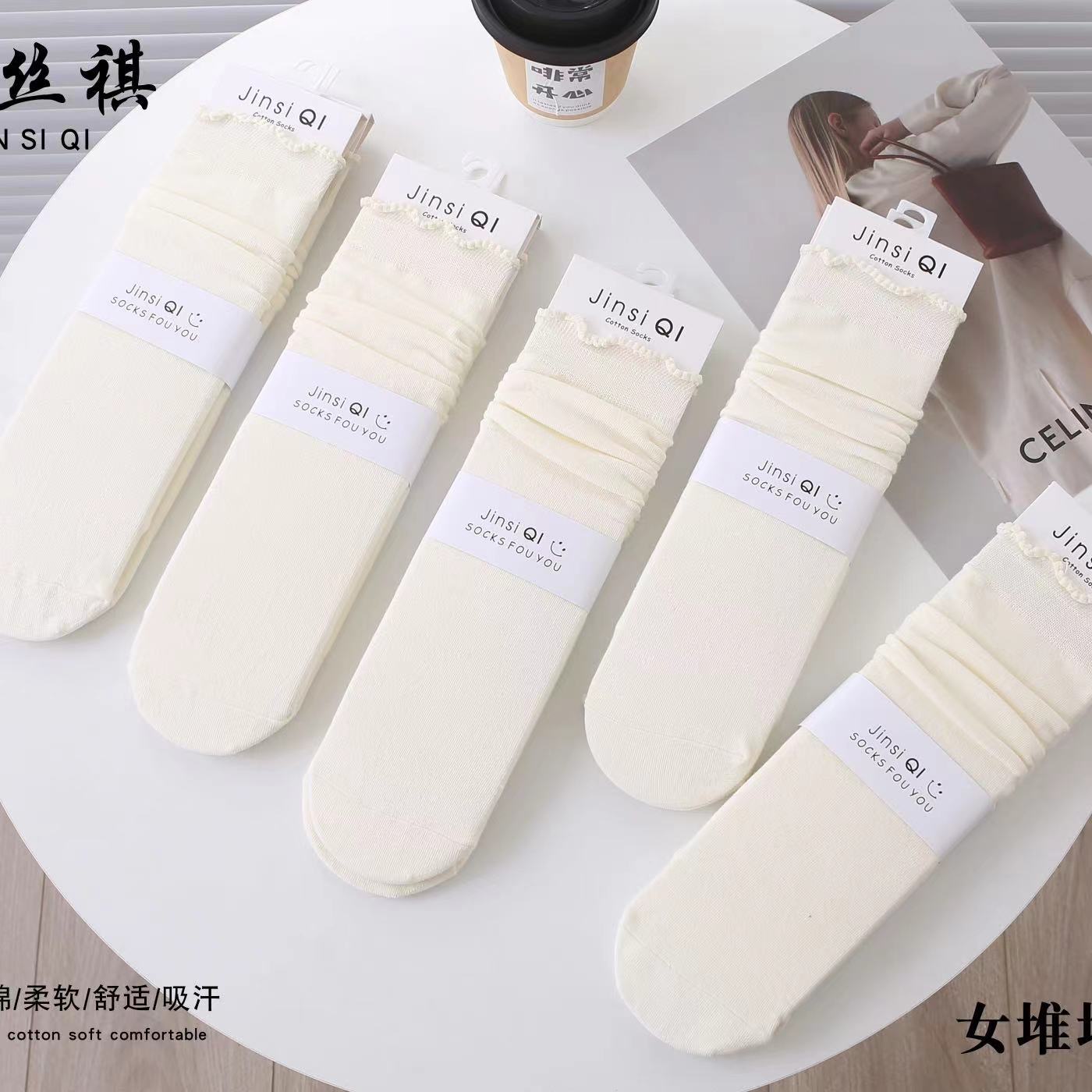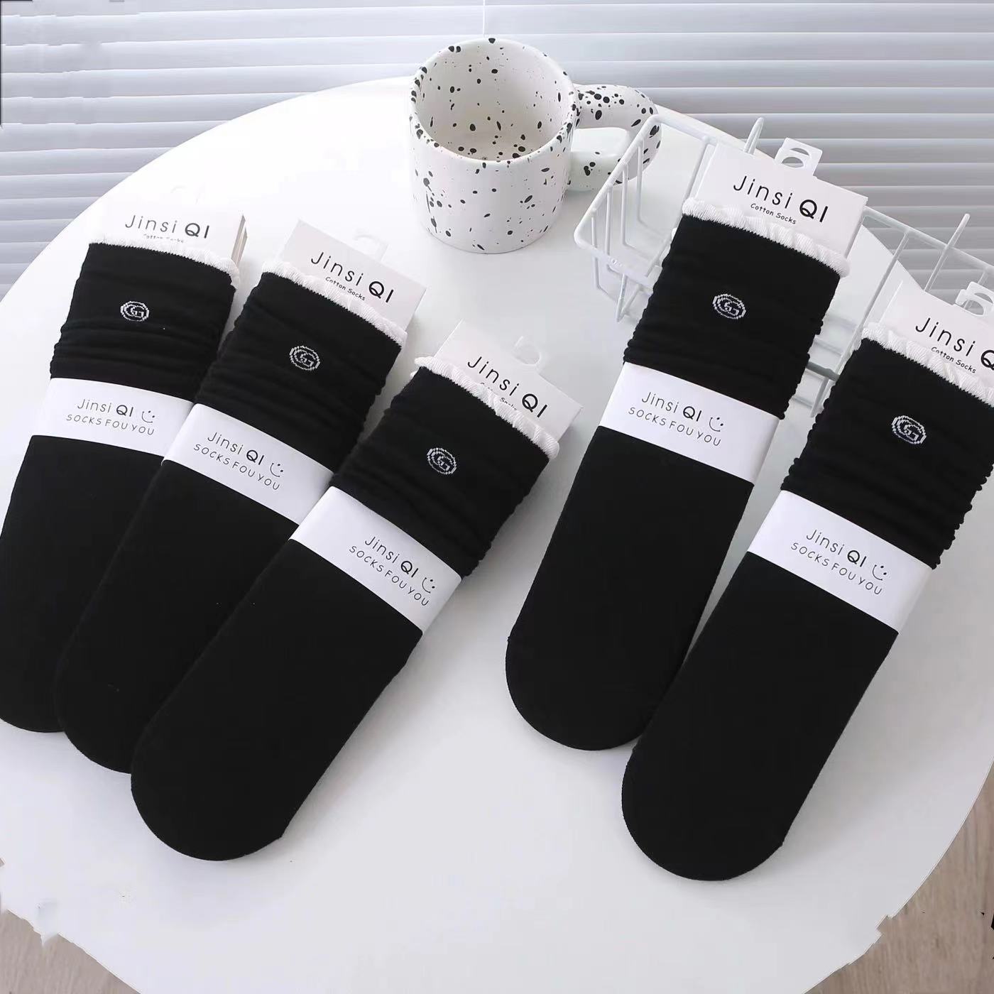 2025 여성용 가을 스타킹 기본 커피색 리본 장식 종아리 양말 롱 코튼 양말 도매스토어 가기