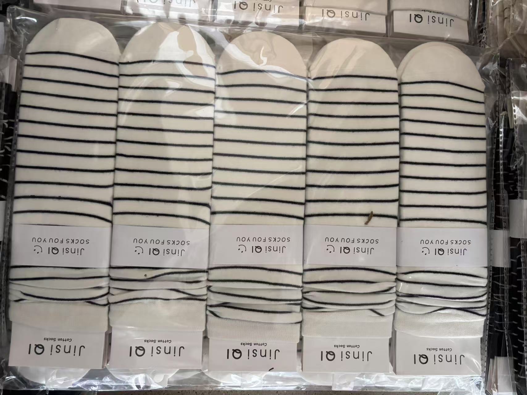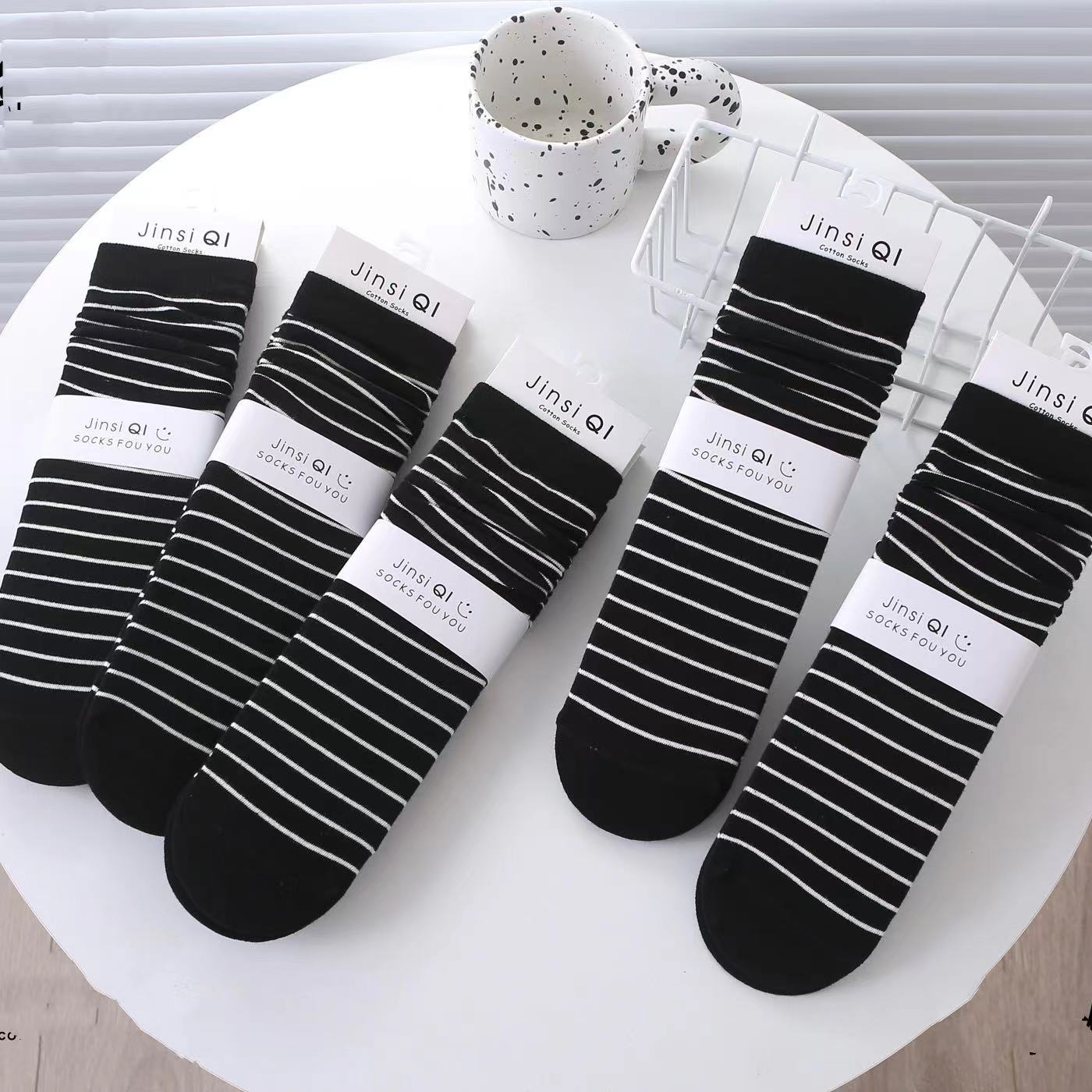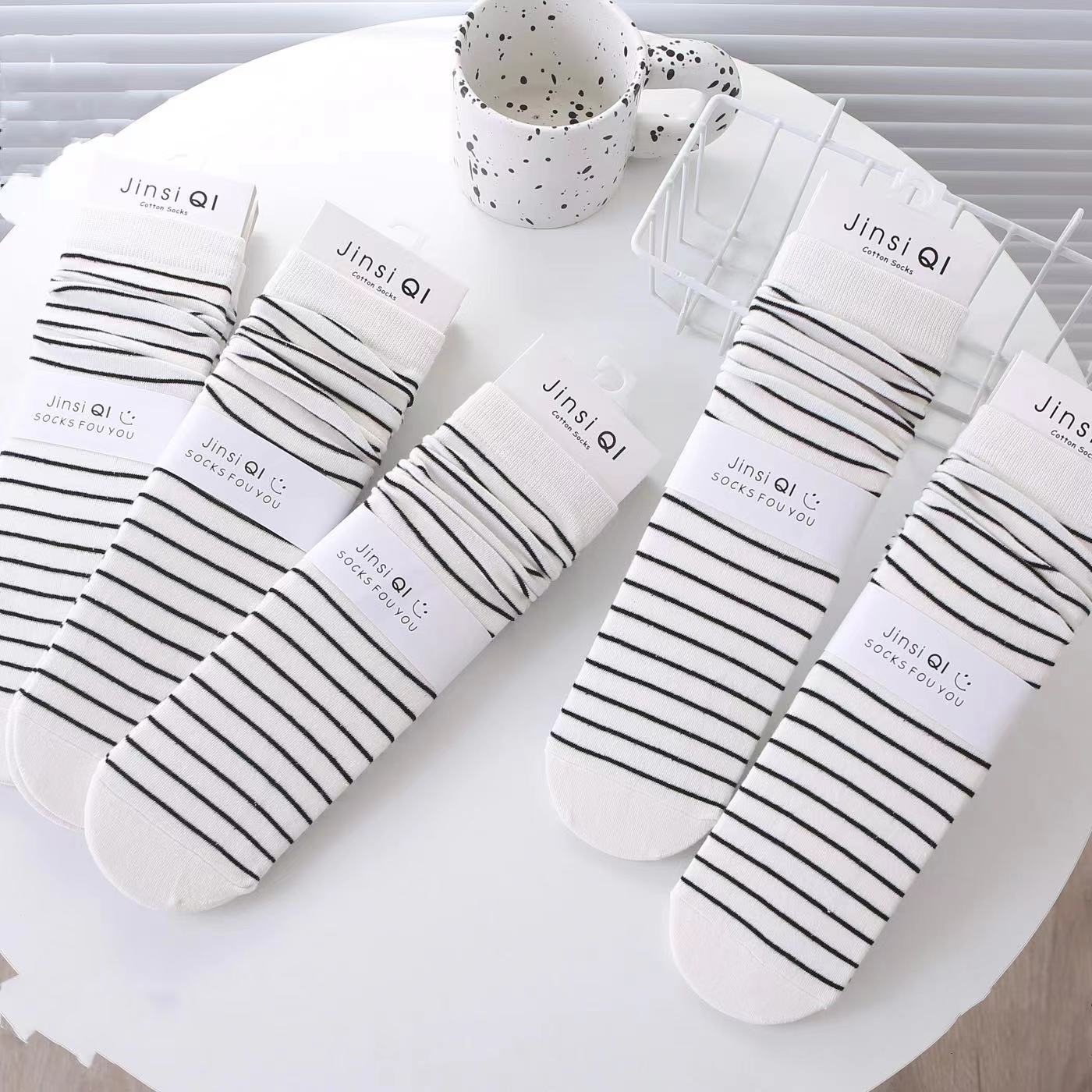 • 흰색 바탕에 검은색 가는 줄무늬