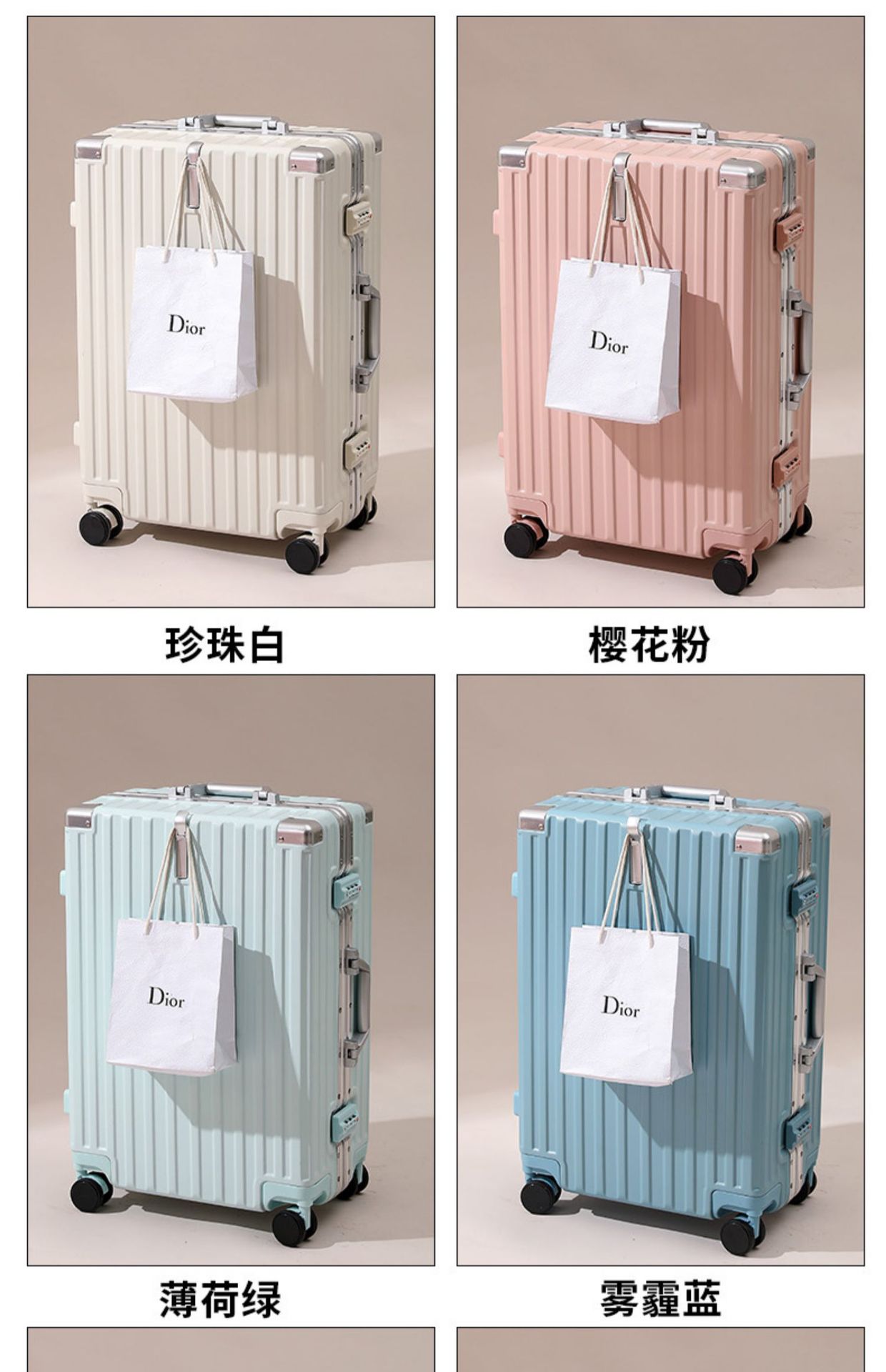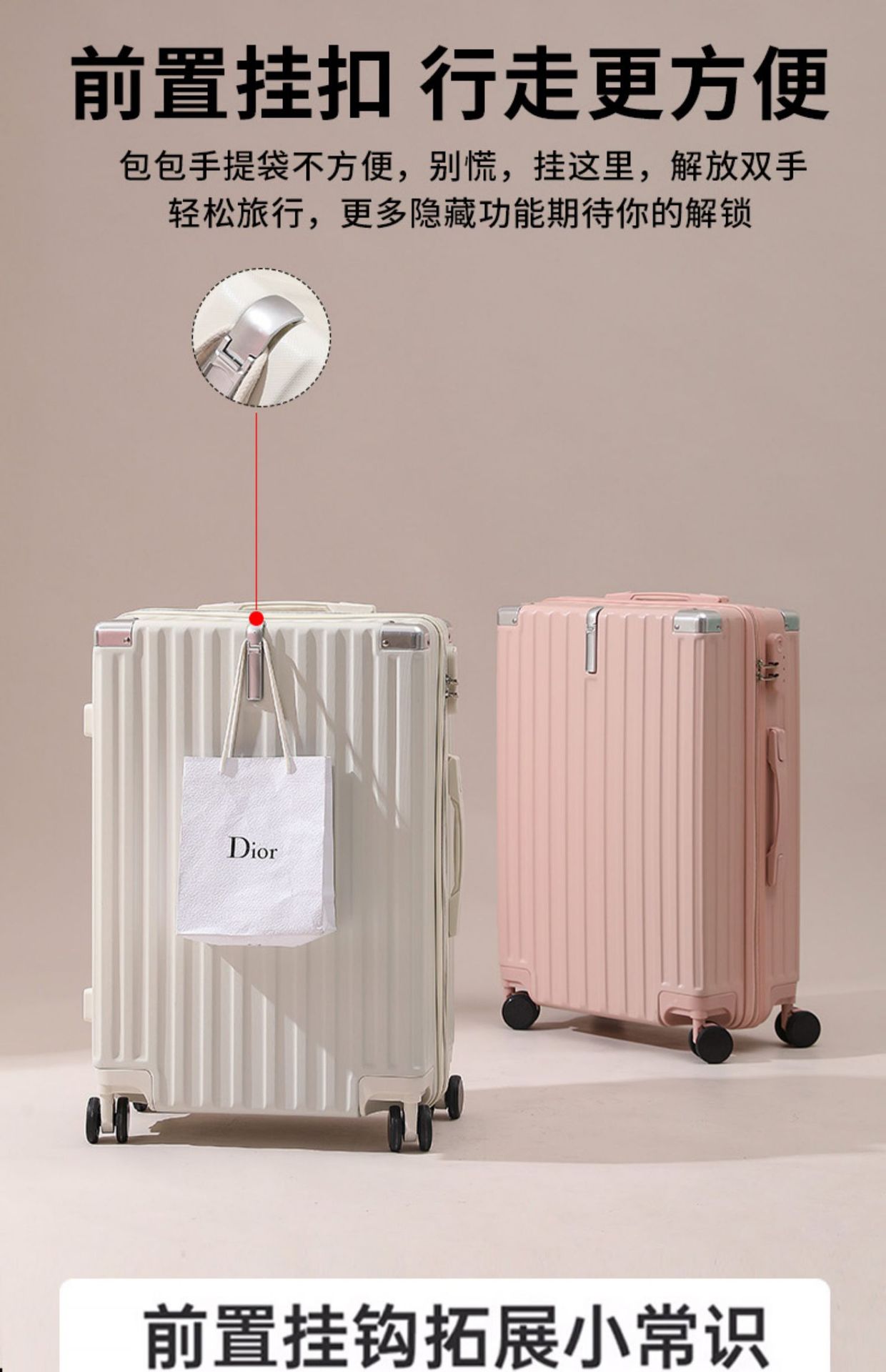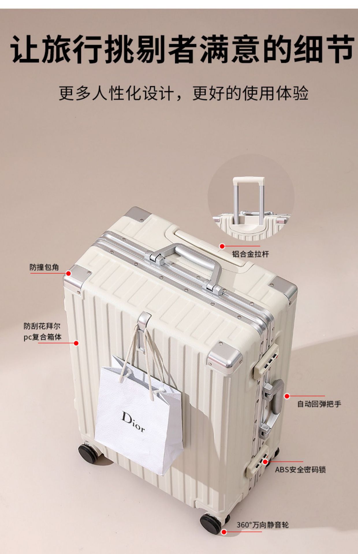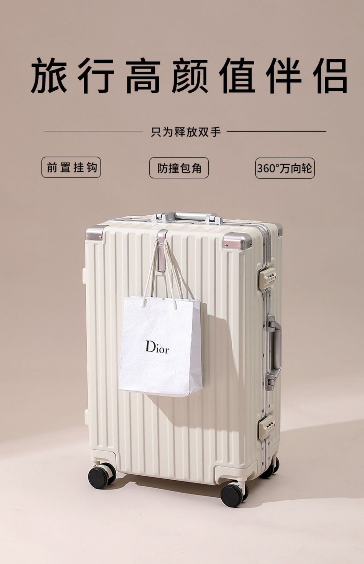 • 고급스러운 실버 [알루미늄 프레임 모델] (전면 후크 + 소음 감소 범용 휠)