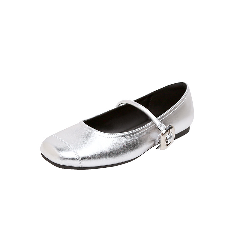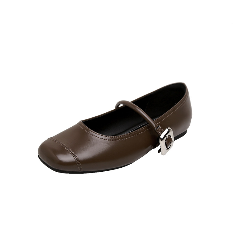 【포도엄마와 같은 스타일】35mm 키높이~초부드러운 프렌치 스퀘어 버클 플랫 발레 슈즈 여성용 메리제인 슈즈