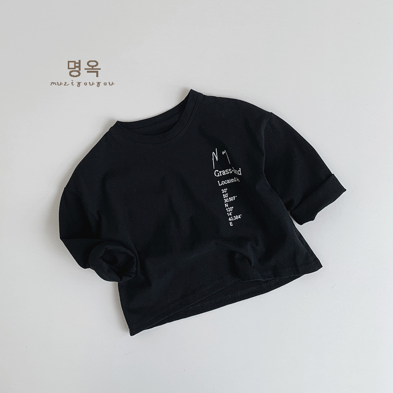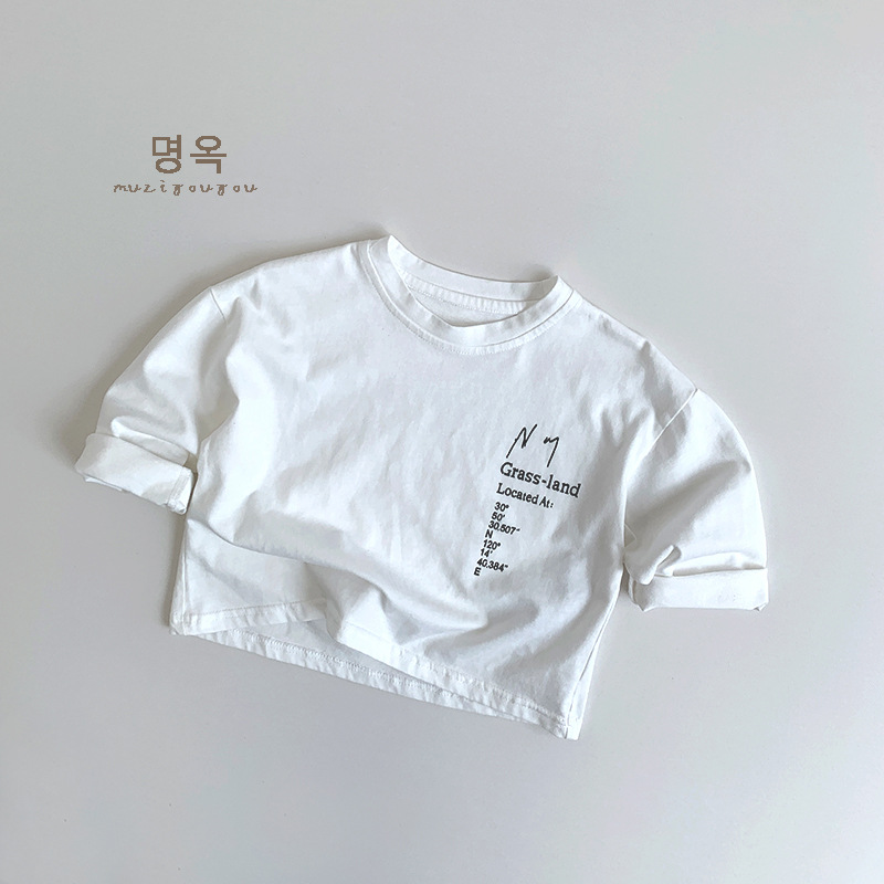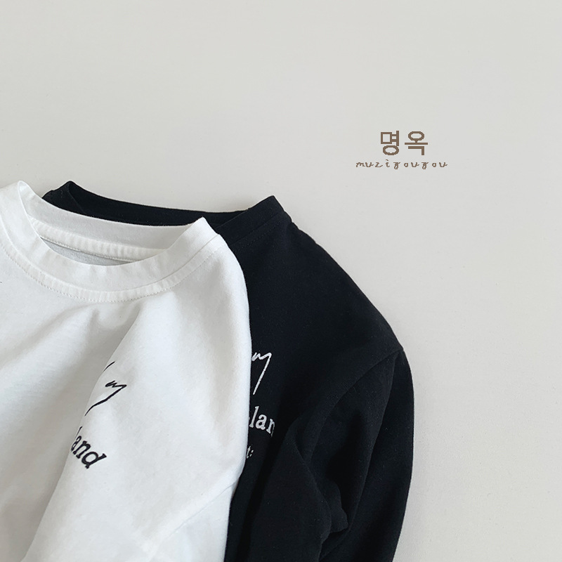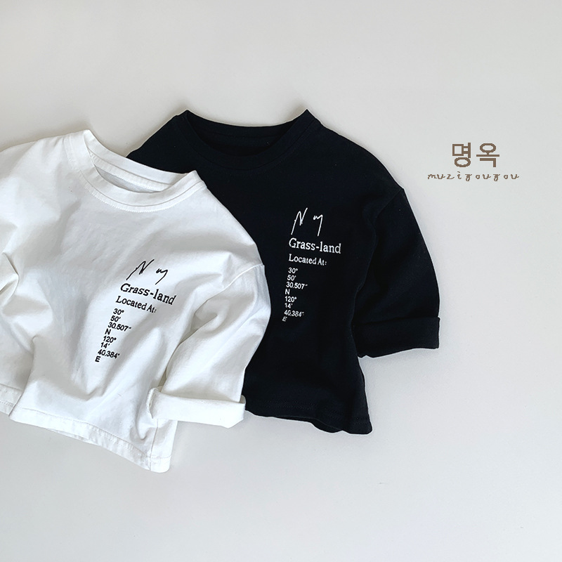 어린이 올 매치 흑백 긴팔 티셔츠 가을 새로운 남성과 여성의 아기 편지 인쇄 캐주얼 탑 Huzhou Zhili스토어 가기