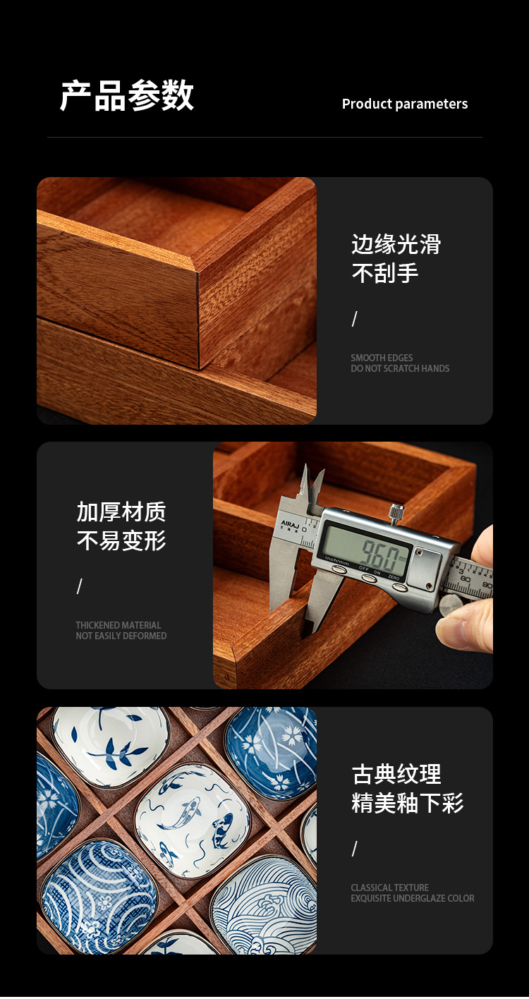 • 흑단 차 상자---9.4cm 세라믹이 포함된 9개의 수납공간