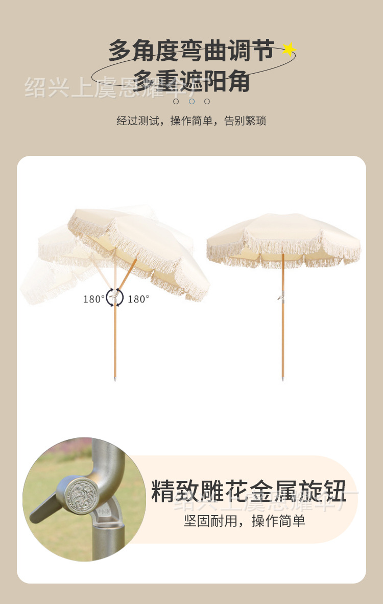 태슬 우산, 정원 안뜰 우산, 복고풍 방풍 우산, 야외 레저 명소 자외선 차단 우산, 회전식 해변 우산