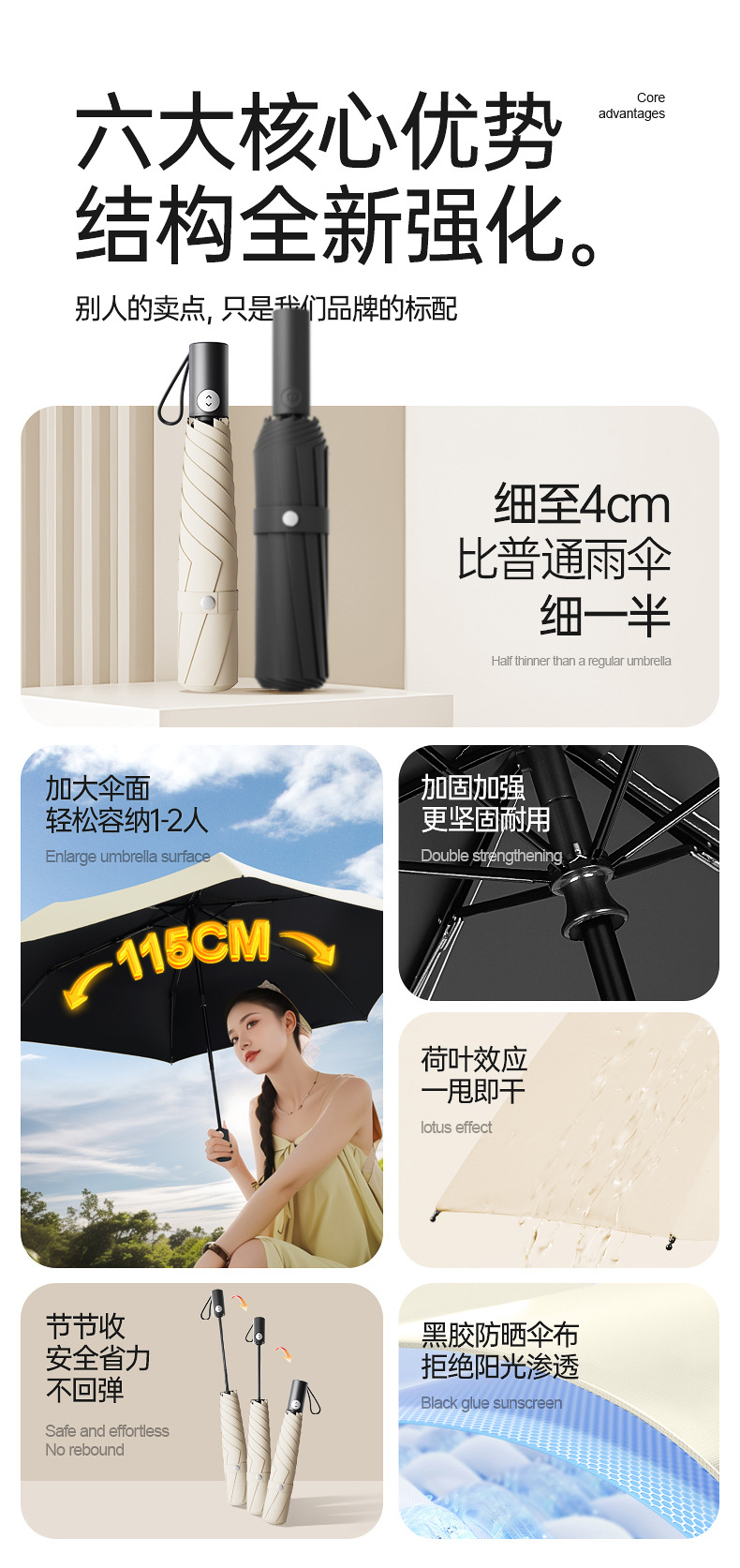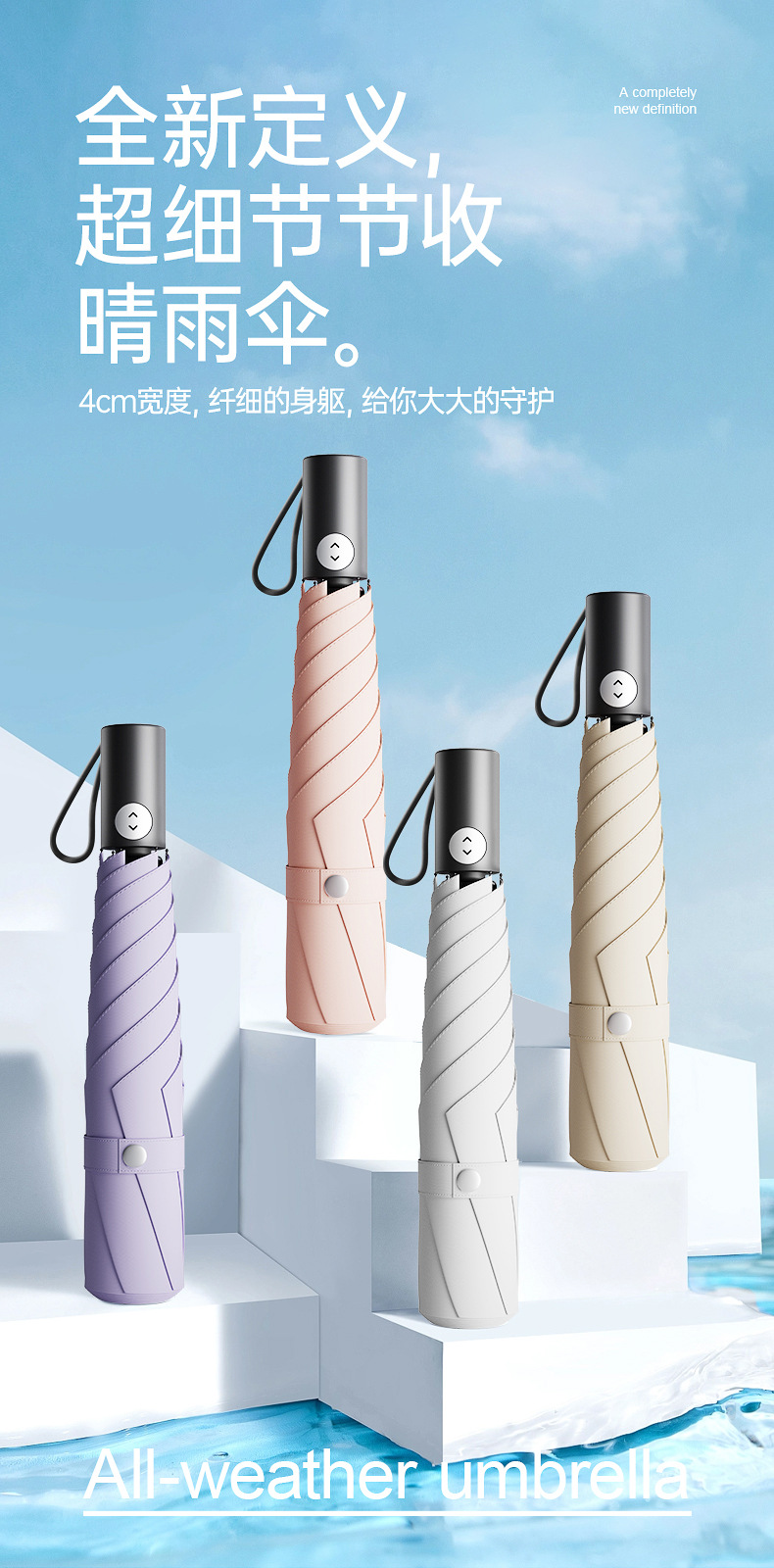 3 배 자동 우산 초경량 셀프 오프닝 우산 블랙 고무 안티 자외선 차양 이중 목적 초경량 태양 우산