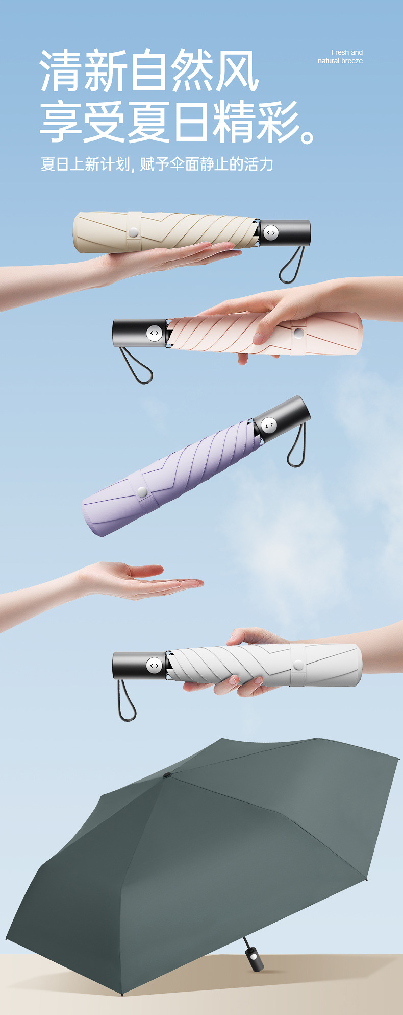 3 배 자동 우산 초경량 셀프 오프닝 우산 블랙 고무 안티 자외선 차양 이중 목적 초경량 태양 우산스토어 가기