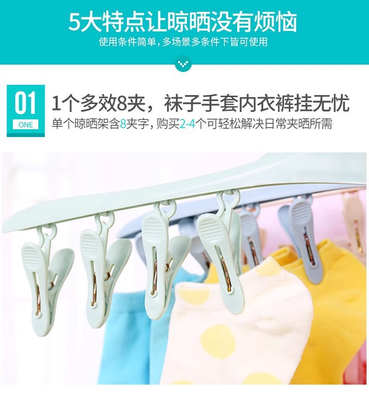 다기능 방풍 속옷 양말 클립 미끄럼 방지 클립 8 클립 건조 클립 가정용 보관 후크 원활한 옷 지원