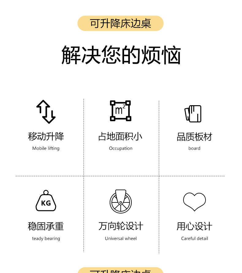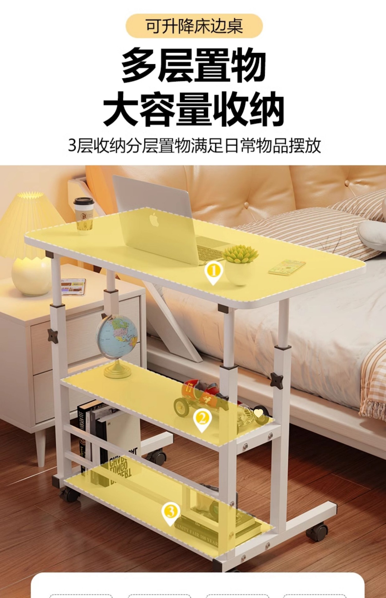 간단한 침대 옆 테이블 이동식 리프팅 테이블 다기능 리프팅 책상 침대 옆 작은 테이블 노트북 지원