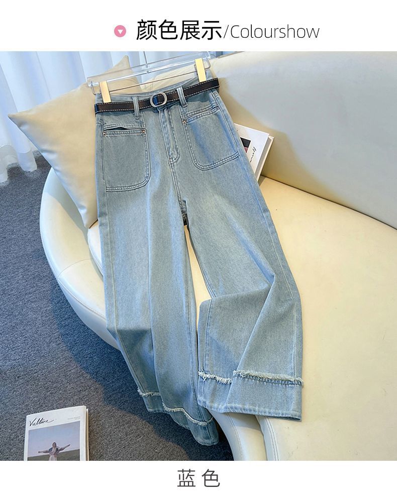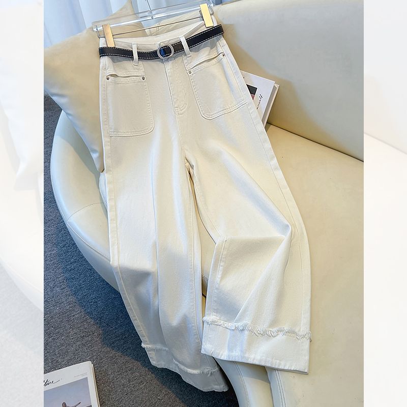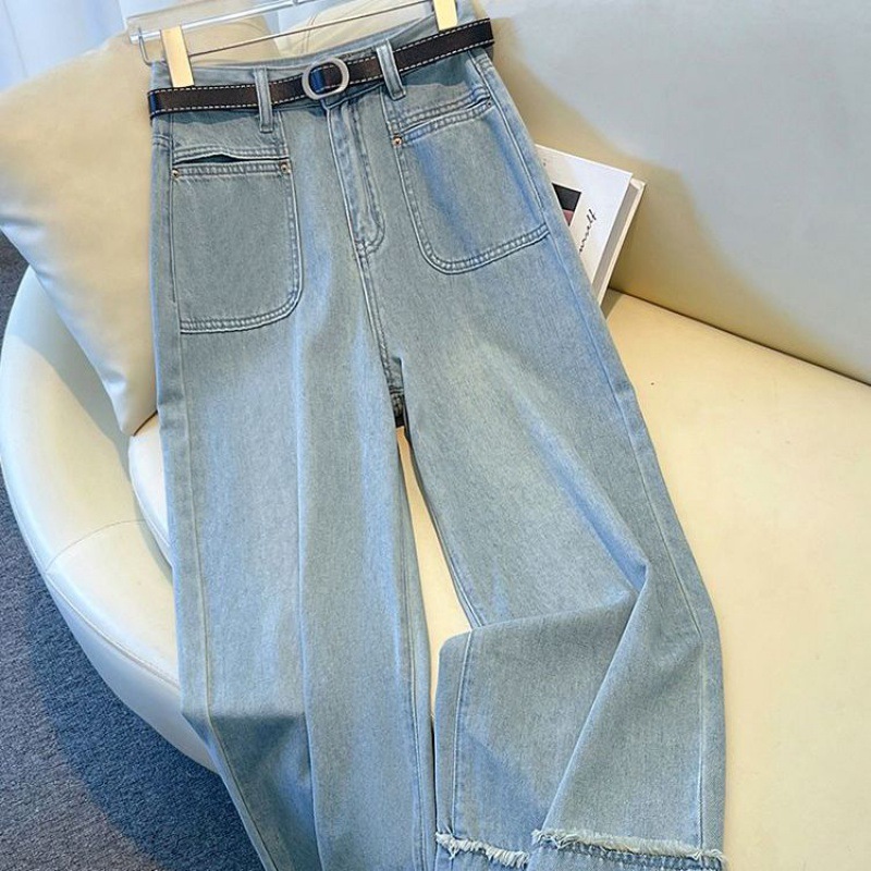 높은 허리 넓은 다리 청바지 여성 여름 얇은 2024 새로운 스타일 딥 느낌 루즈 루즈 루즈 느슨한 빈티지 팬츠 스트레이트 다리 바지스토어 가기