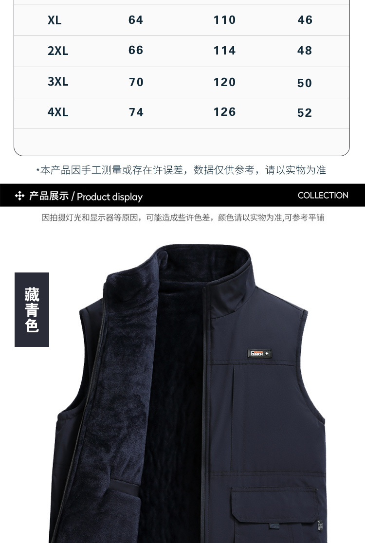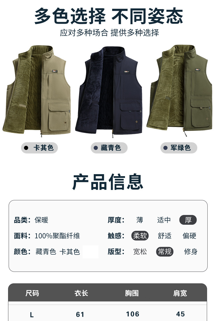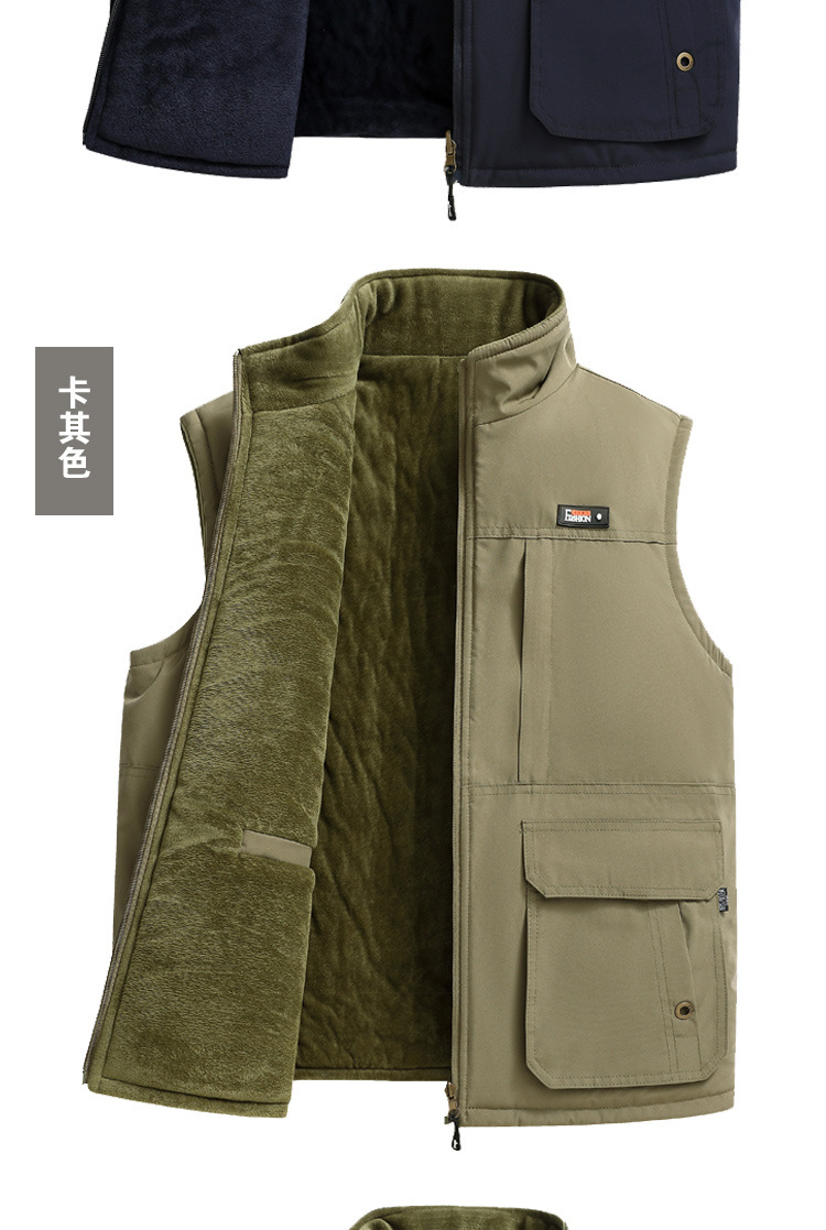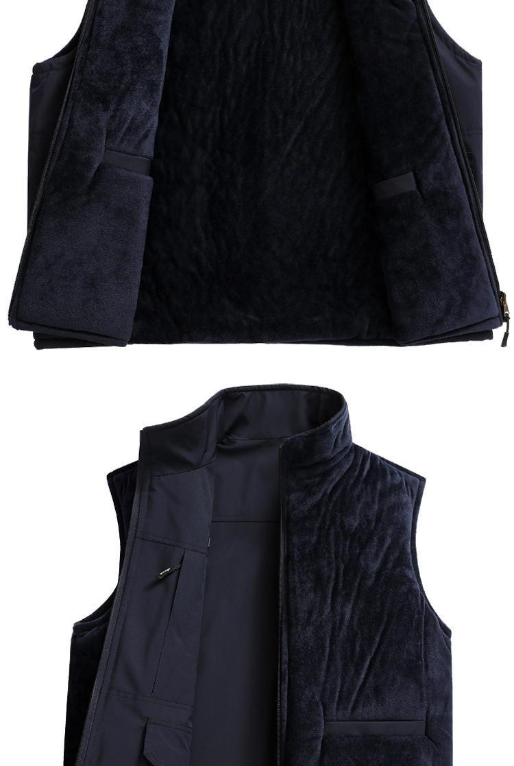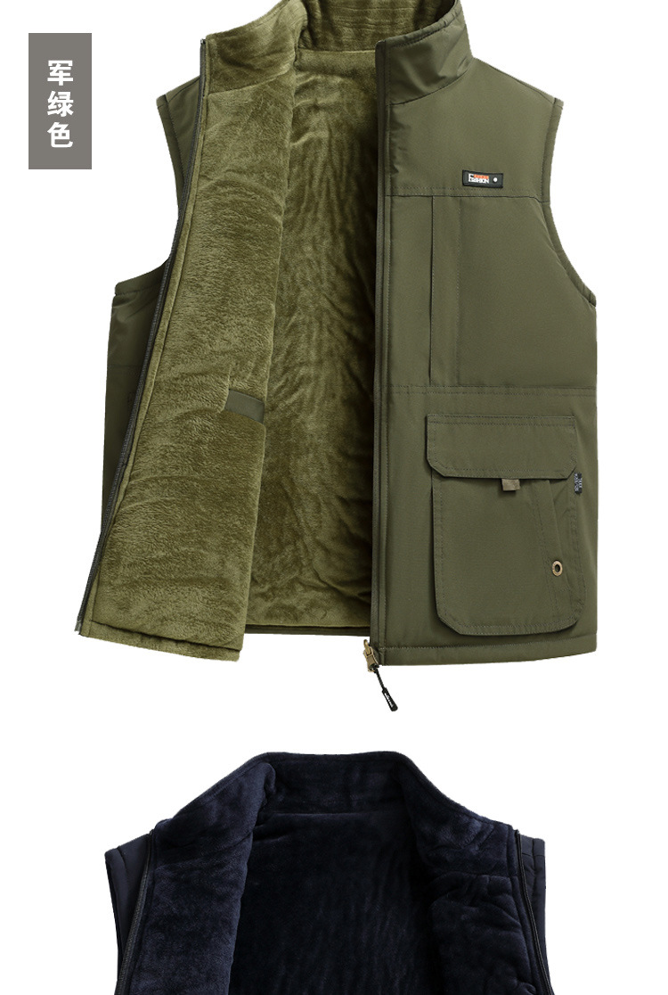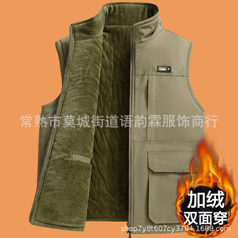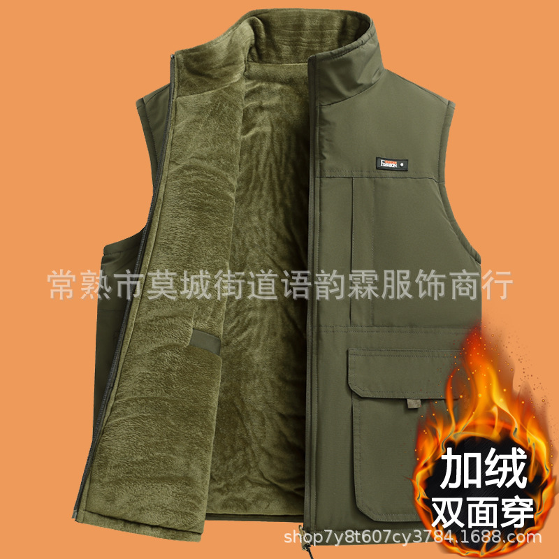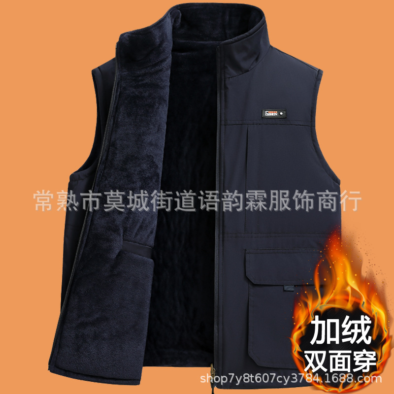 수직 칼라 조끼 남자의 가을과 겨울 따뜻한 조끼 중년 및 노인 캐시미어 기모 두꺼운 양면 착용 아빠의 느슨한 허리 코트스토어 가기