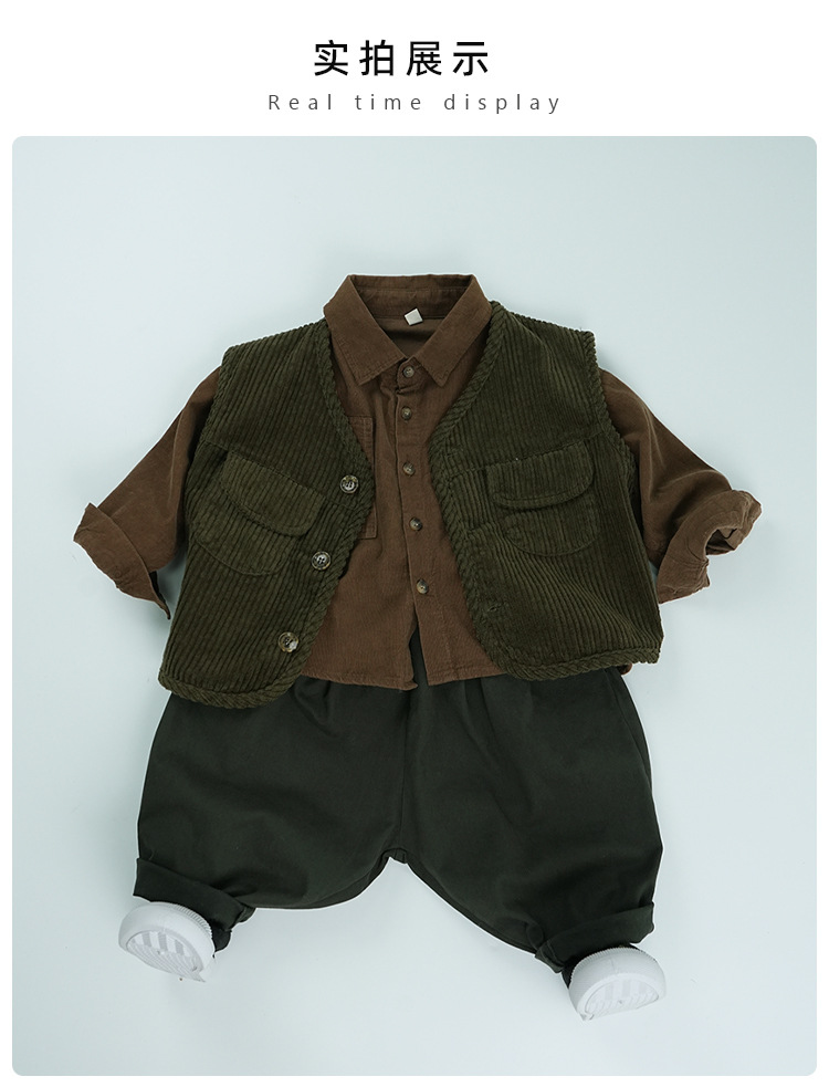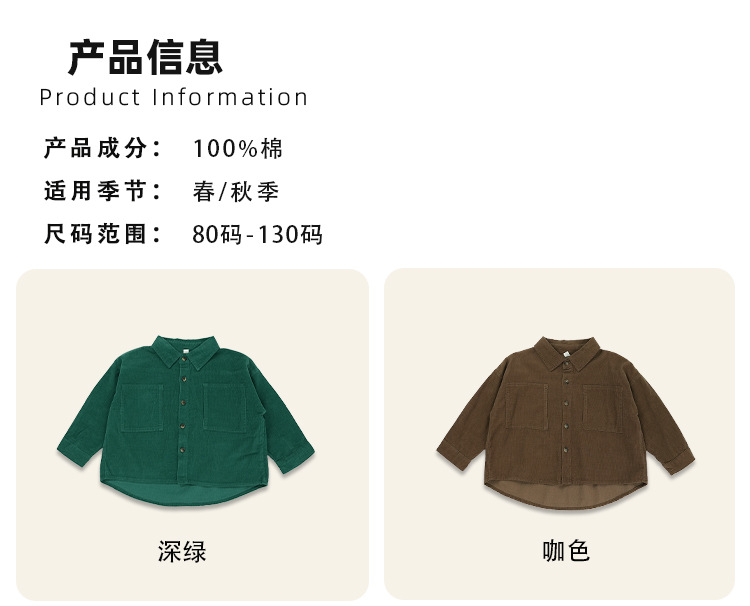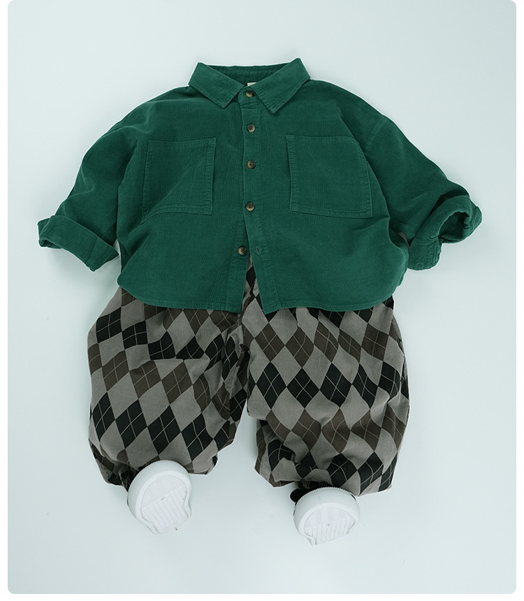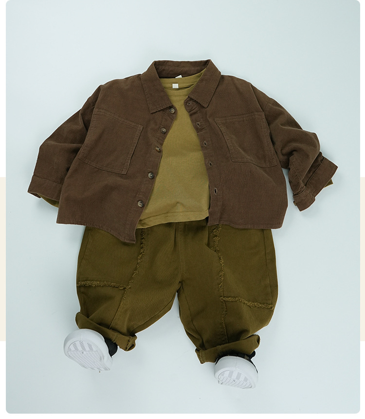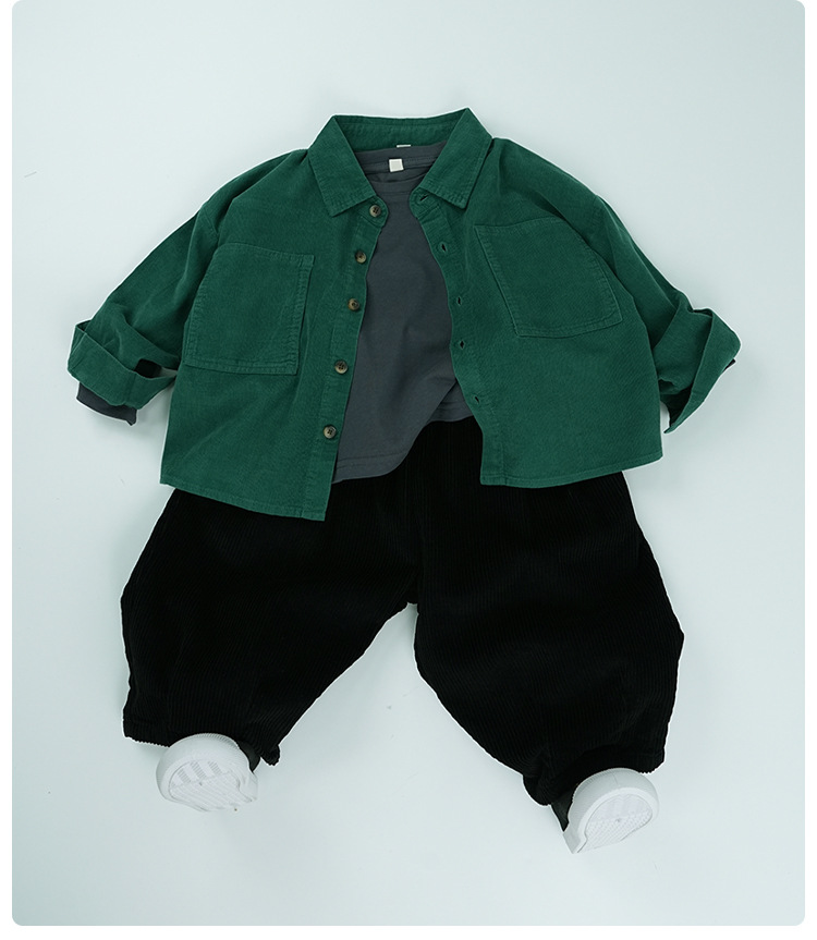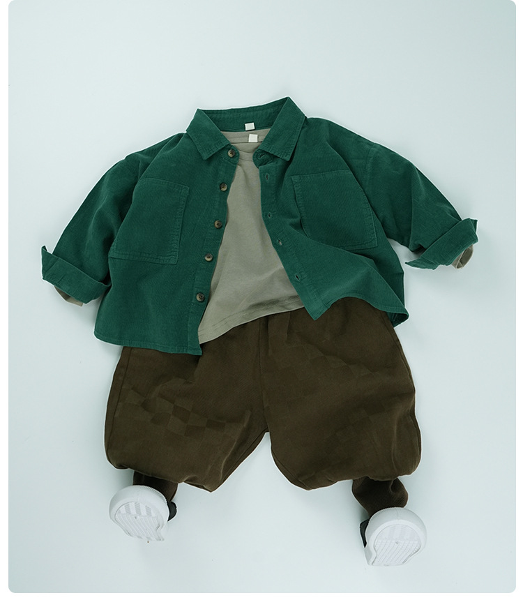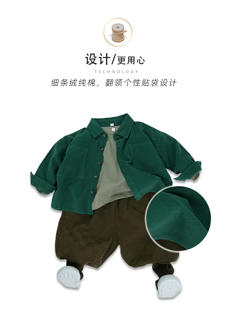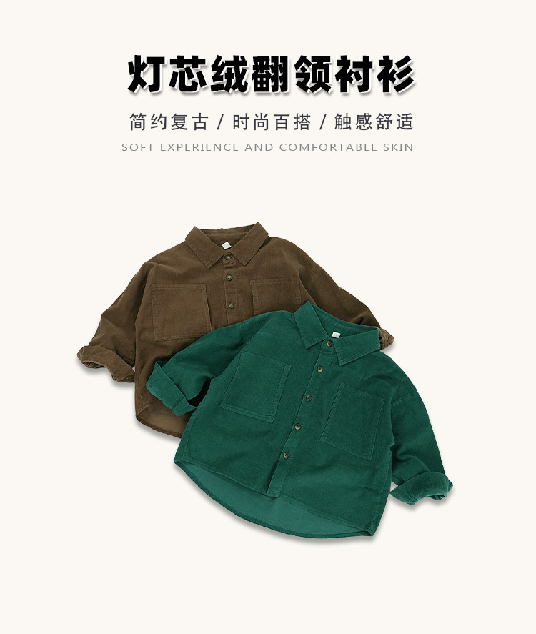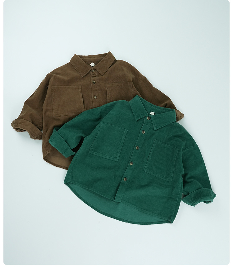 소년 셔츠 봄, 가을 2025 새로운 스타일 잘 생기고 세련된 어린이 코듀로이 캐주얼 셔츠 복고풍 가을상의스토어 가기