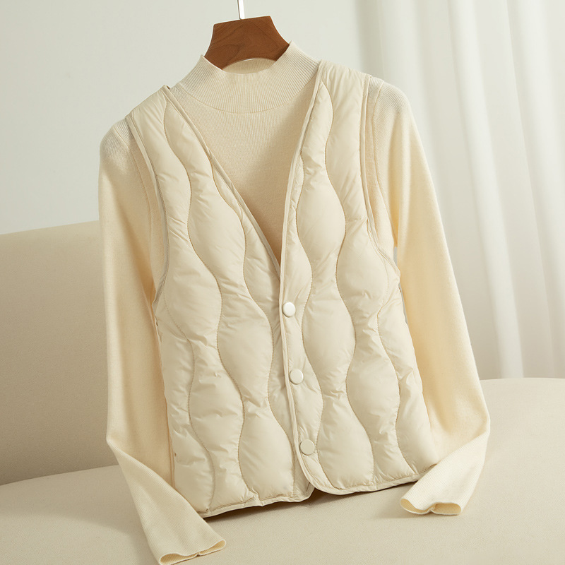가을 겨울 여성용 깃털 벨벳 조끼, 가볍고 따뜻한 깃털 벨벳 안감, 슬림핏 짧은 V넥 조끼스토어 가기