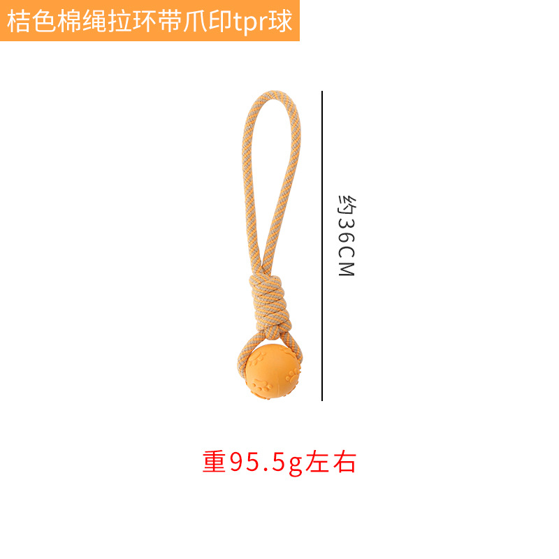 • 발 프린트 TPR 볼이 있는 주황색 면 로프 당김 탭