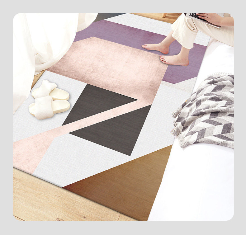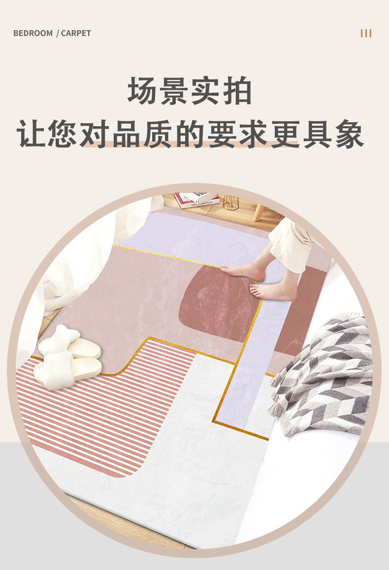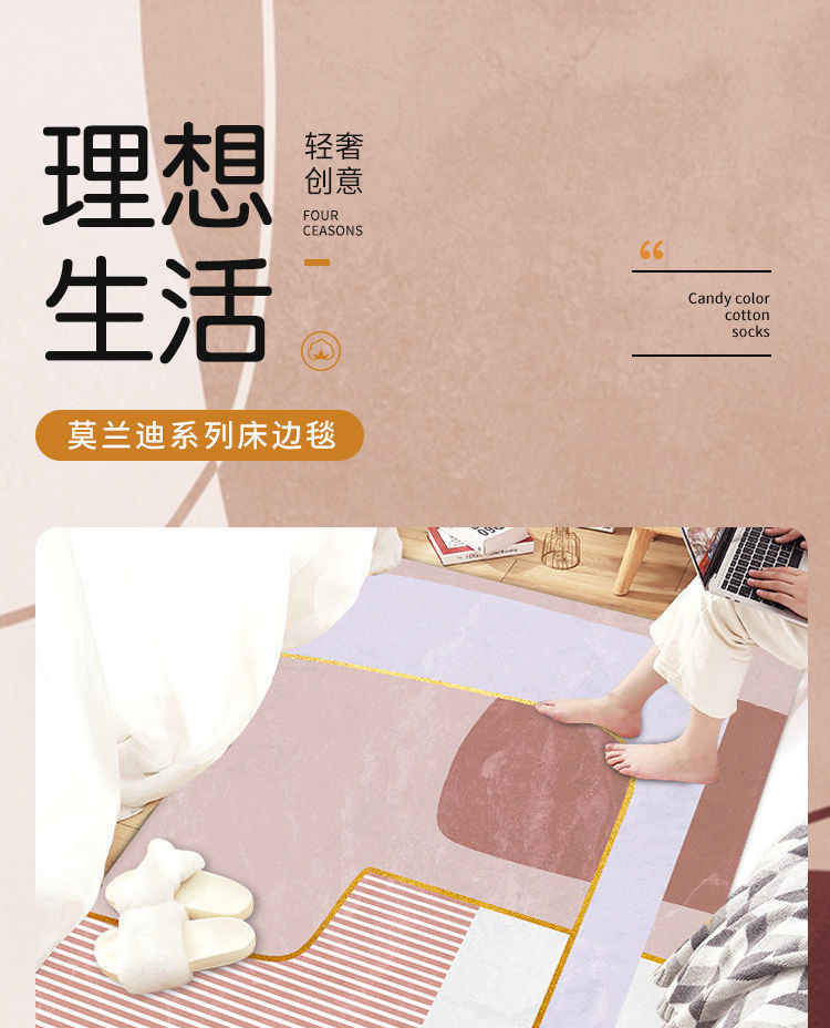 침실 카펫은 얼룩에 강하고 관리가 용이하며, 침대 옆 카펫은 긴형으로 룸 디바이더로 사용할 수 있으며, 냉각 및 미끄럼 방지 카펫, 심플한 스타일의 크리스탈 벨벳 카펫입니다.