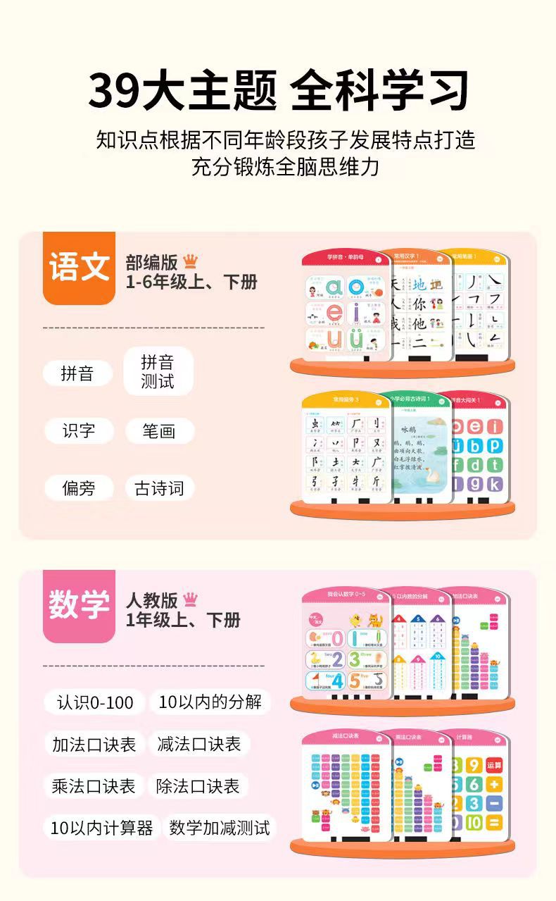 언어, 수학 및 영어 음성 유아 교육 지능형 학습 기계 포인트 읽기 기계 향상 사고 능력 계몽 카드 퍼즐
