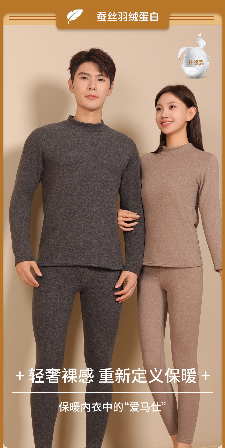 겨울 커플의 모의 칼라 따뜻한 옷 실크 아래로 기모 두꺼운 남녀 부부의 미드 칼라 열 속옷 세트