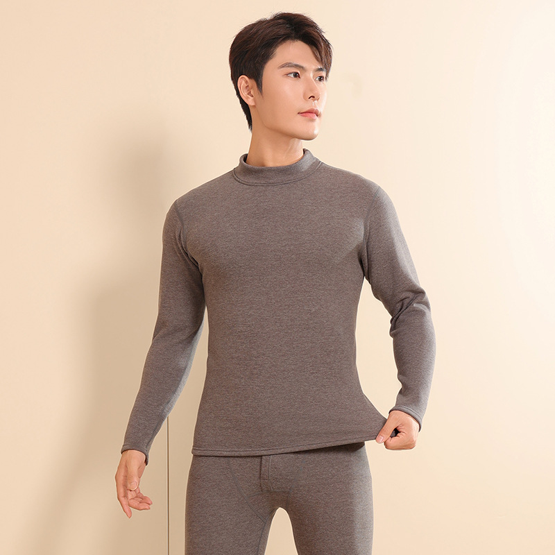 겨울 커플의 모의 칼라 따뜻한 옷 실크 아래로 기모 두꺼운 남녀 부부의 미드 칼라 열 속옷 세트스토어 가기