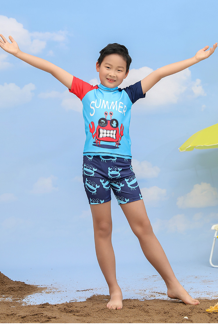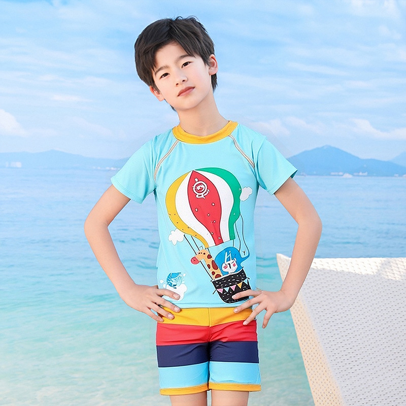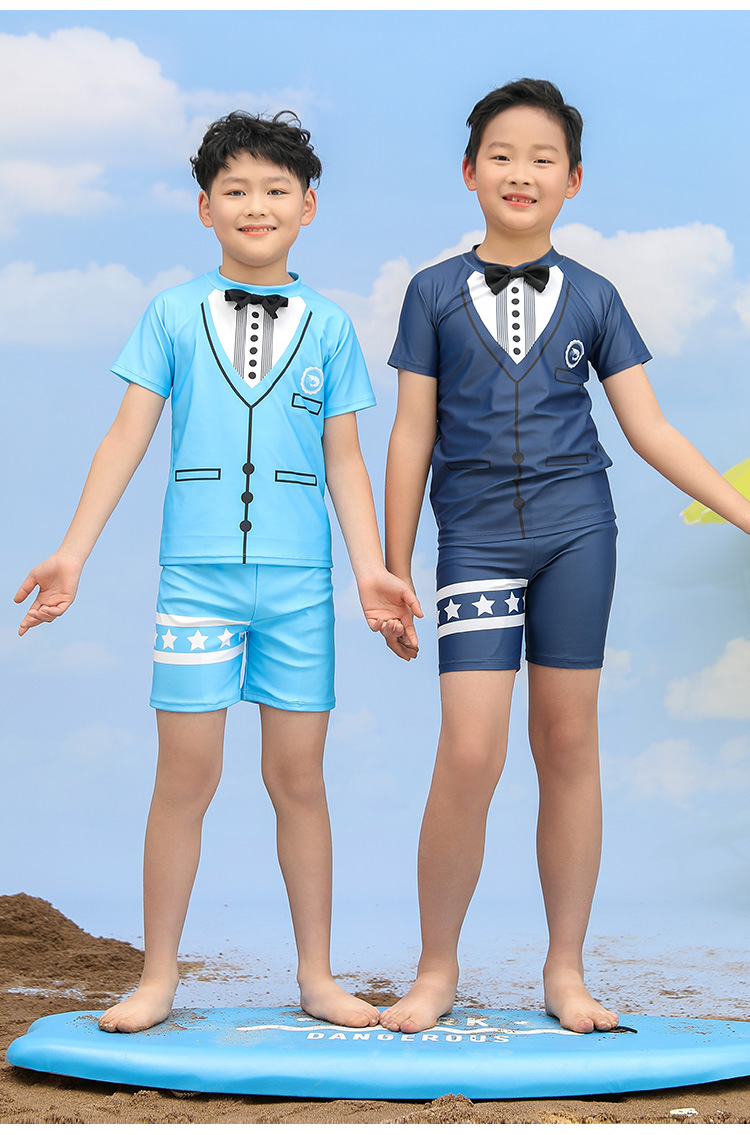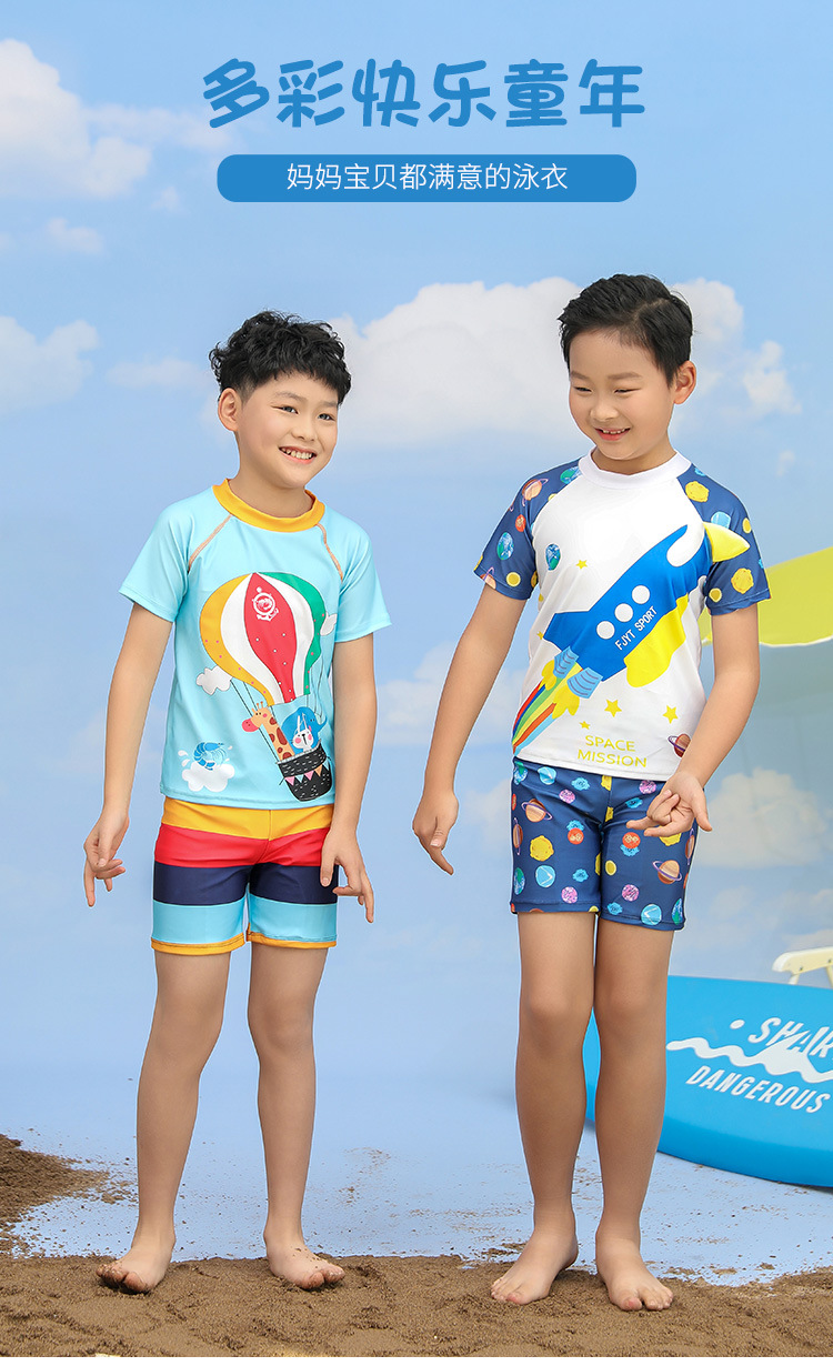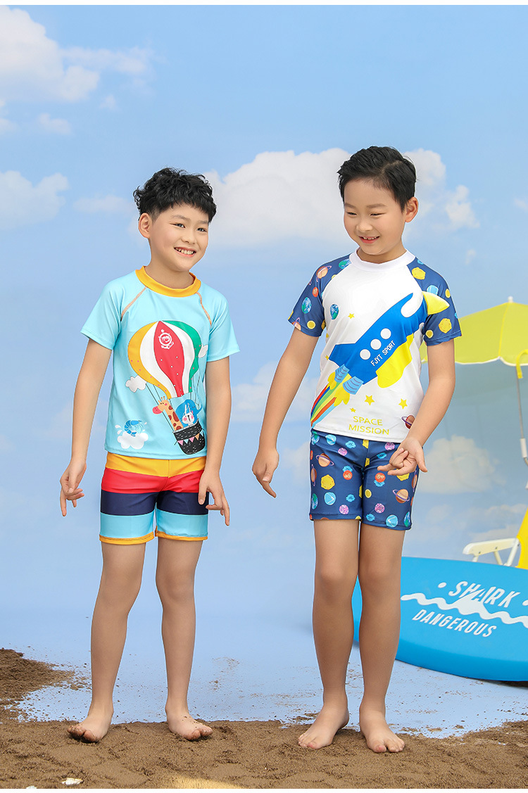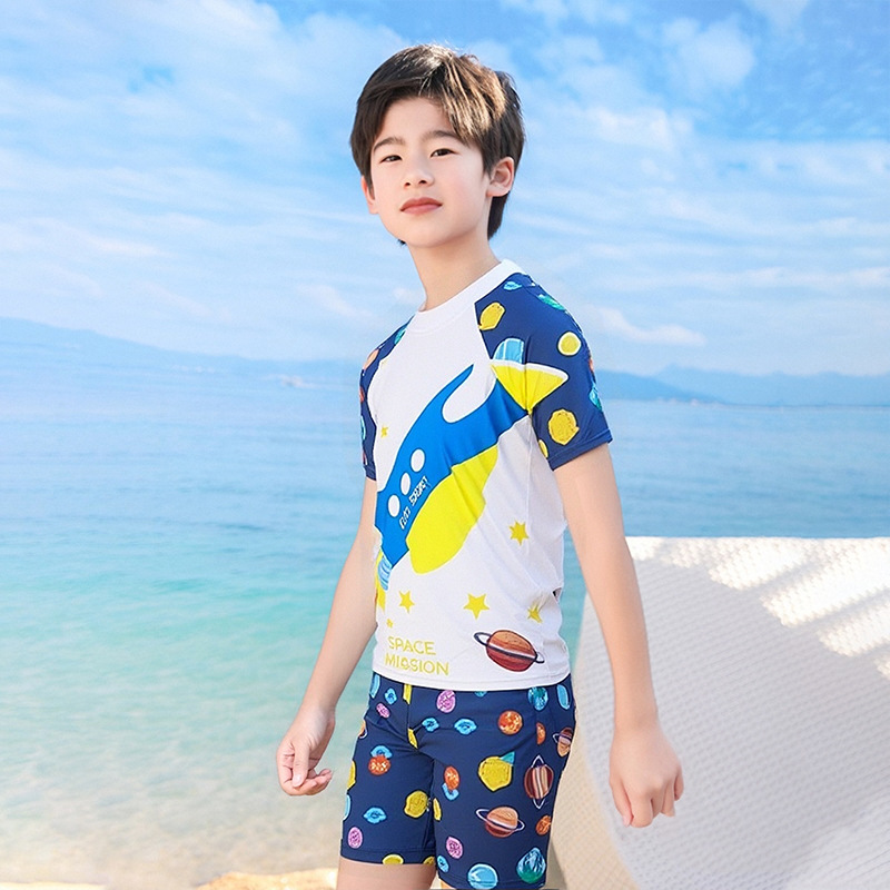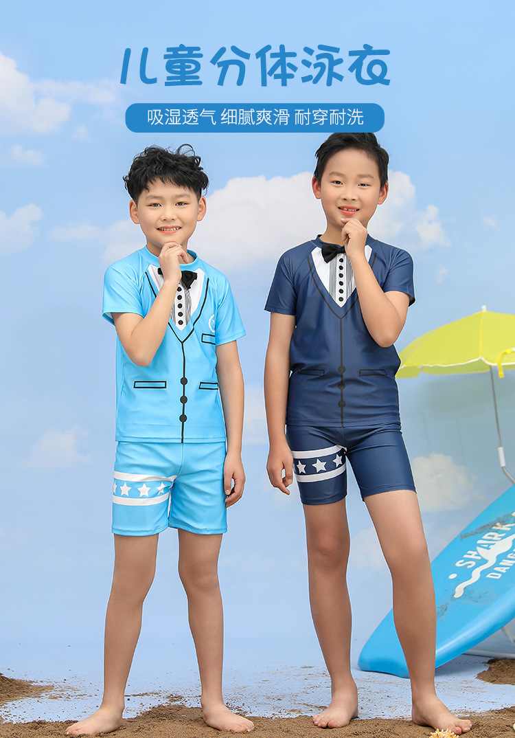 어린이 수영복 소년 분할 투피스 세트 소형, 중형 및 대형 어린이 태양 보호 빠른 건조 수영복 바지 귀여운 아기의 온천 수영복