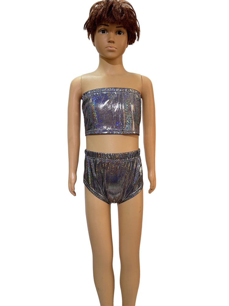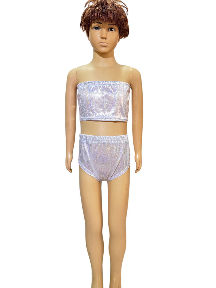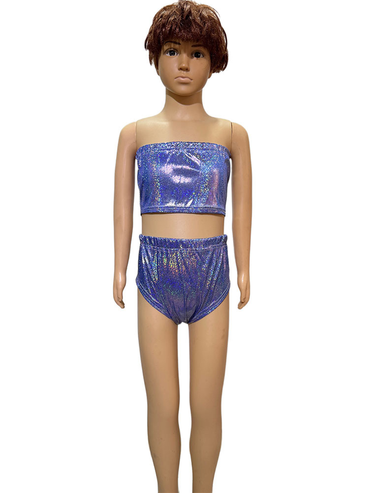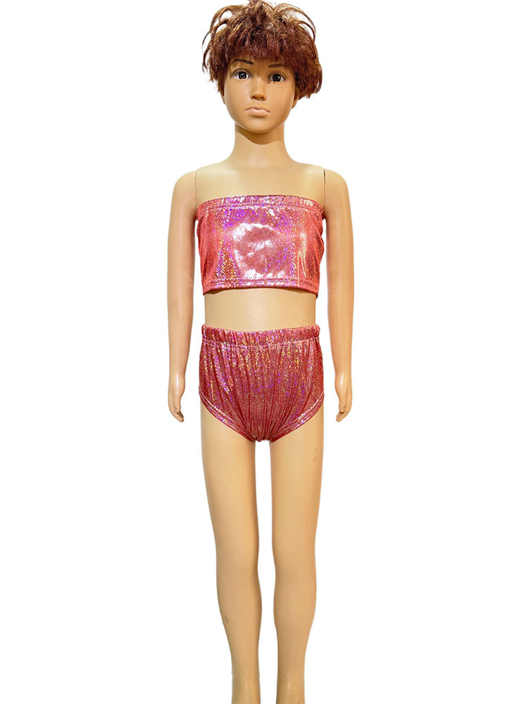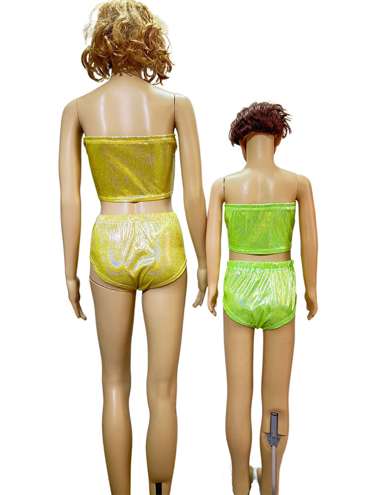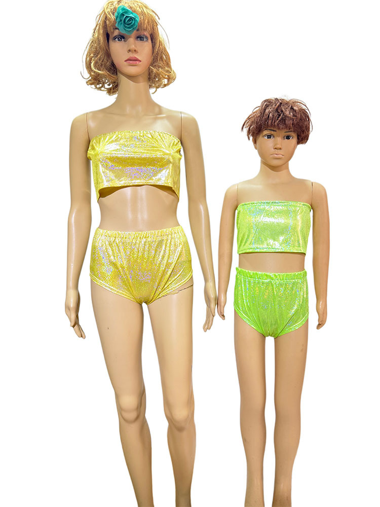 국경 간 성능 세트 레이저 파인 도트 Sequins Chest 래핑 치어 리더 팀 스트랩리스 탄성 성인 및 어린이 사진 세트 짧은 가슴
