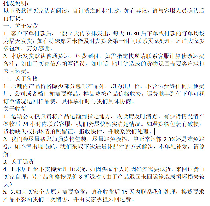 1688온라인 사이트에서 검색된 상품입니다. 알리타플에서는 상품검색/현지구매(구매대행)/국제배송 업무만 제공해드립니다. 해당 상품의 품질 및 상태에 대해서는 확인해 드릴 수 없고 해당 물건이 입고가 된 후에 검수과정을 거쳐야 확인이 가능합니다.