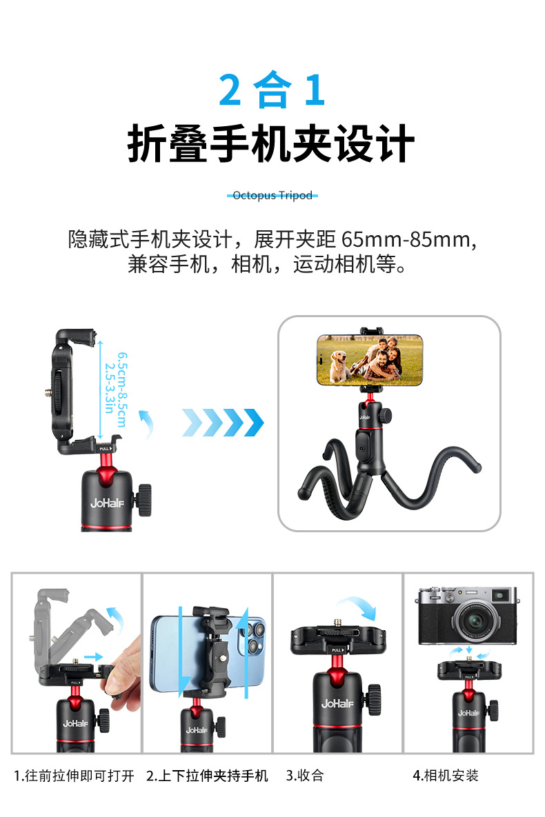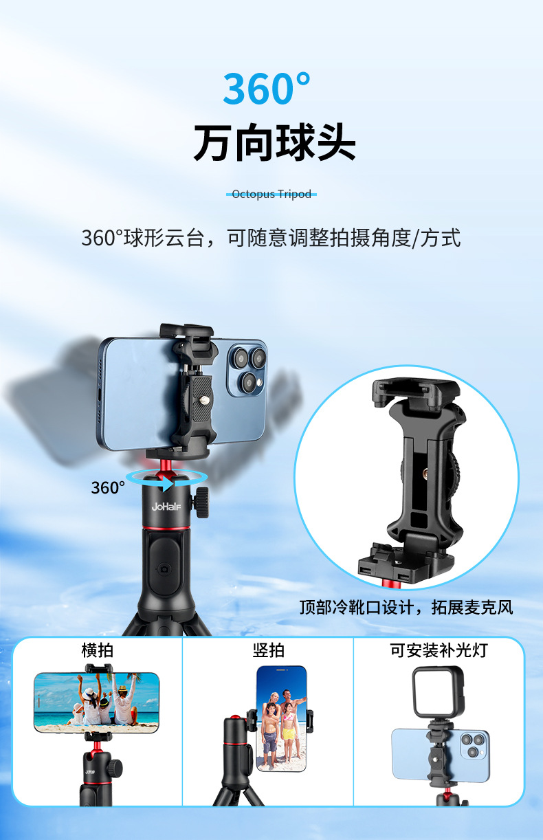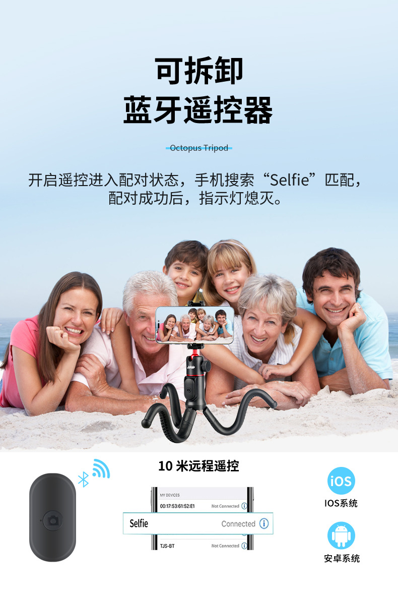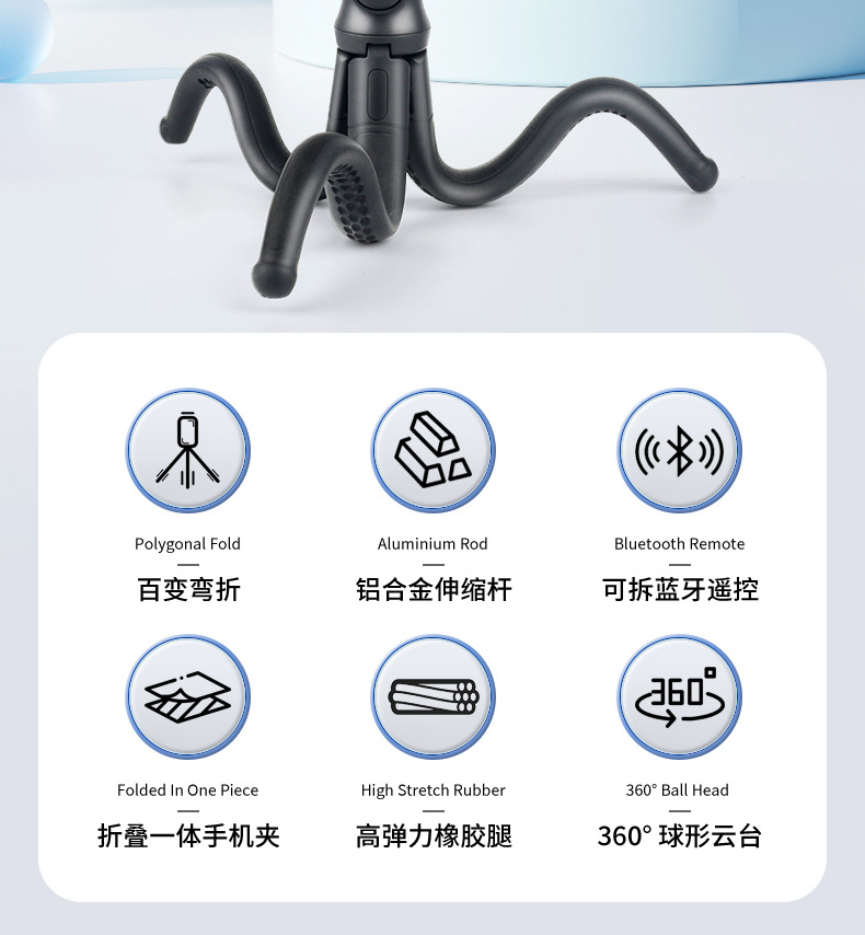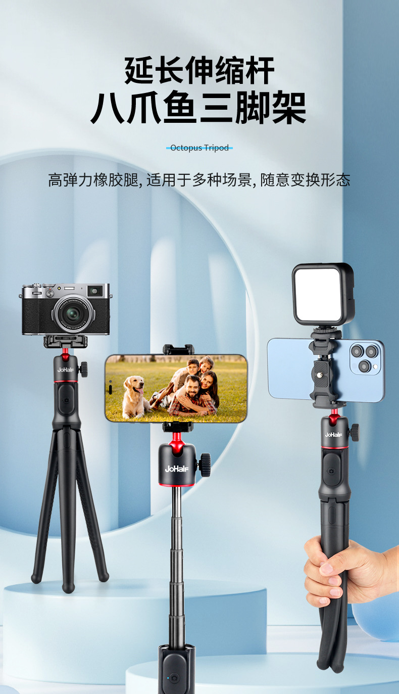 휴대폰 카메라 옥토퍼스 스탠드 리모컨 포함 셀카봉 텔레스코픽 삼각대 라이브 방송 브이로그 영상 촬영