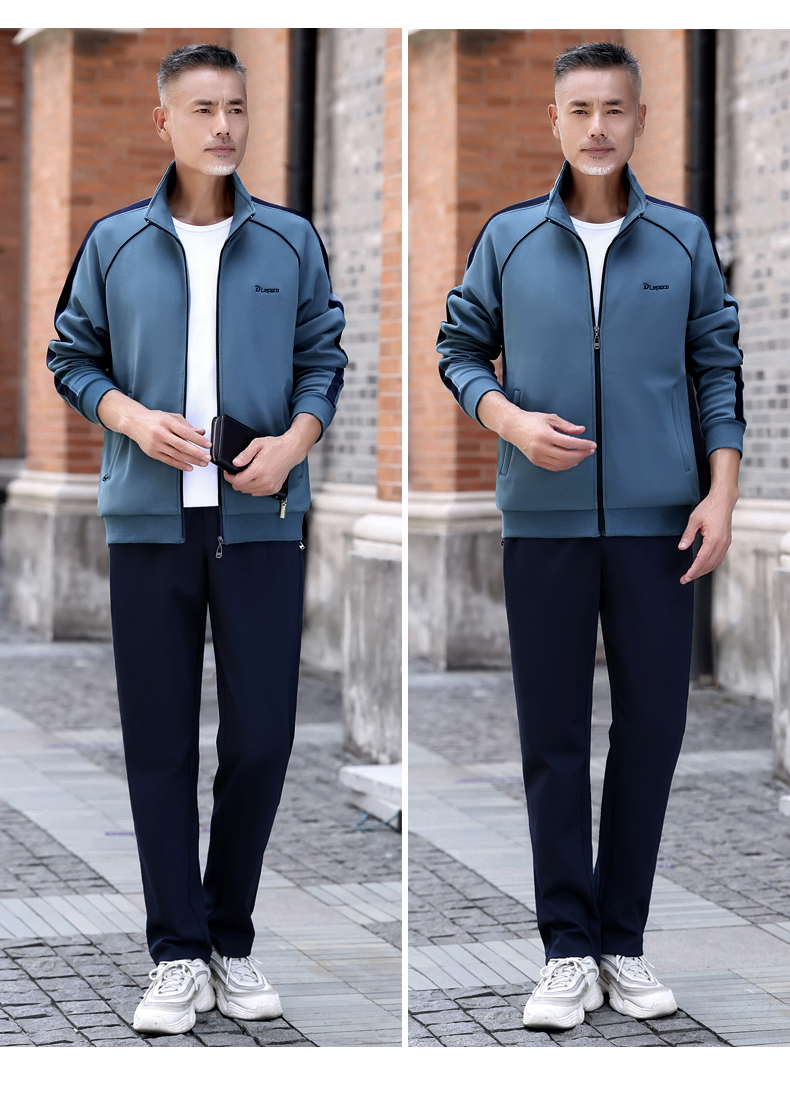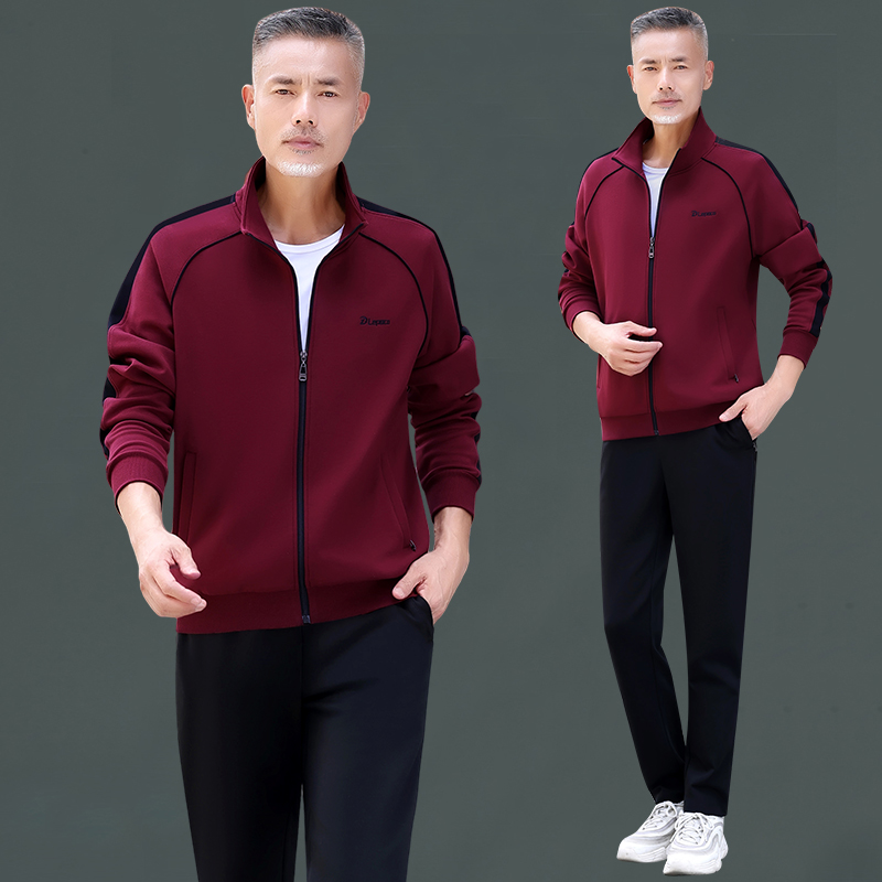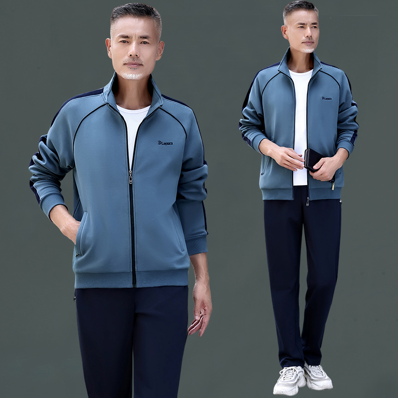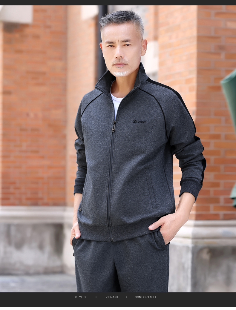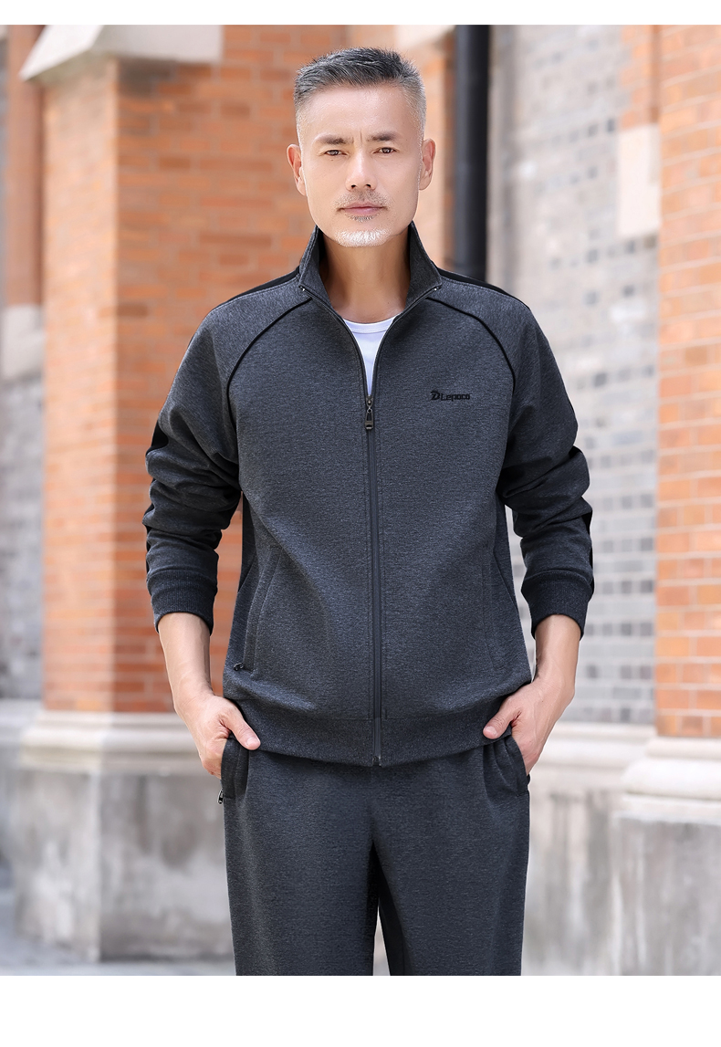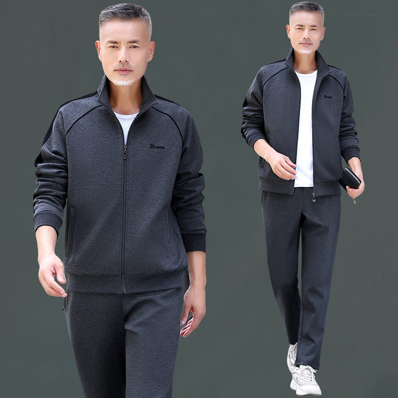 양면 면 아빠 봄과 가을 세트 2024 새로운 카디건 긴 소매 달리기 중년 노인 남성 캐주얼 스포츠 의류스토어 가기