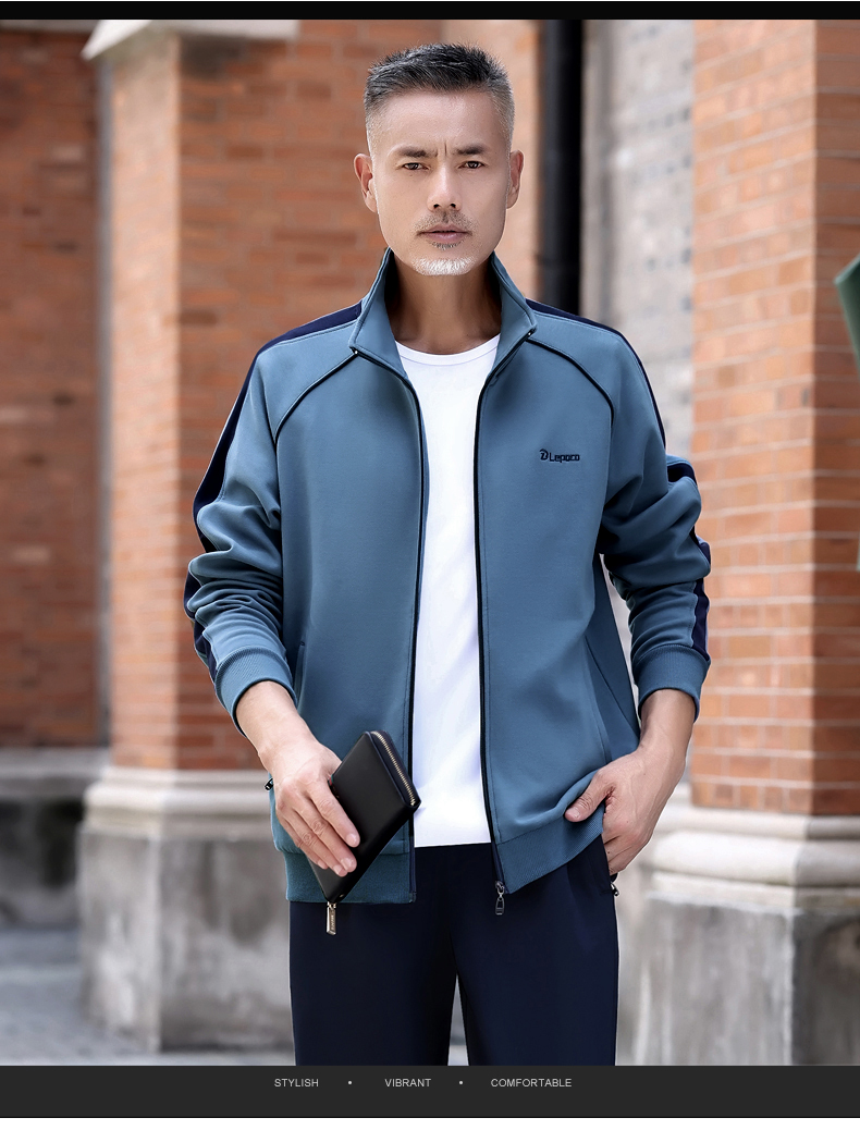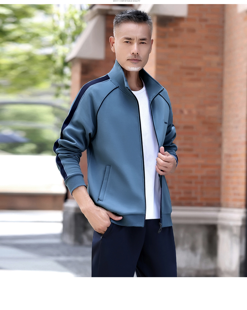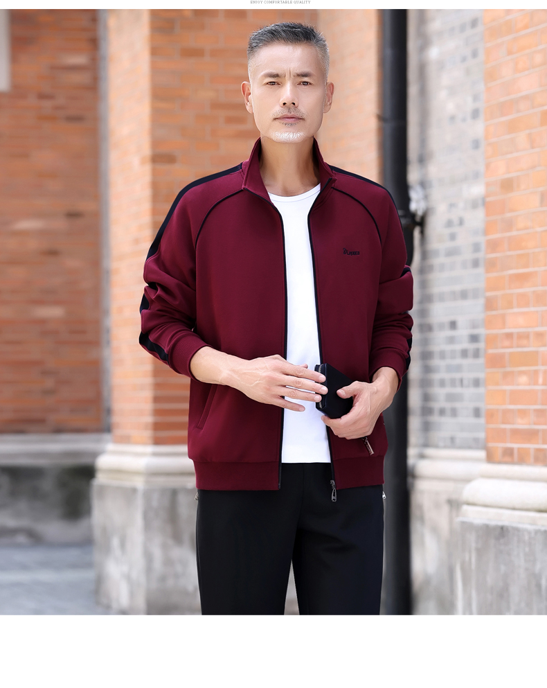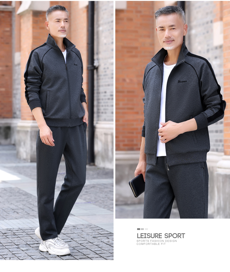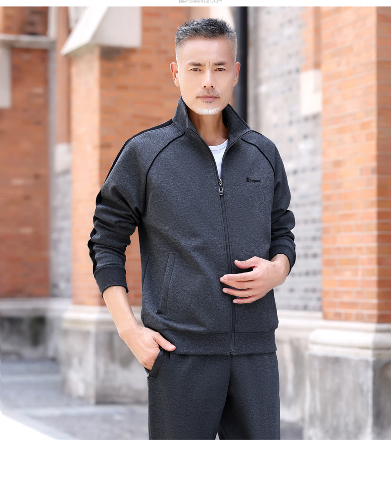 양면 면 아빠 봄과 가을 세트 2024 새로운 카디건 긴 소매 달리기 중년 노인 남성 캐주얼 스포츠 의류스토어 가기